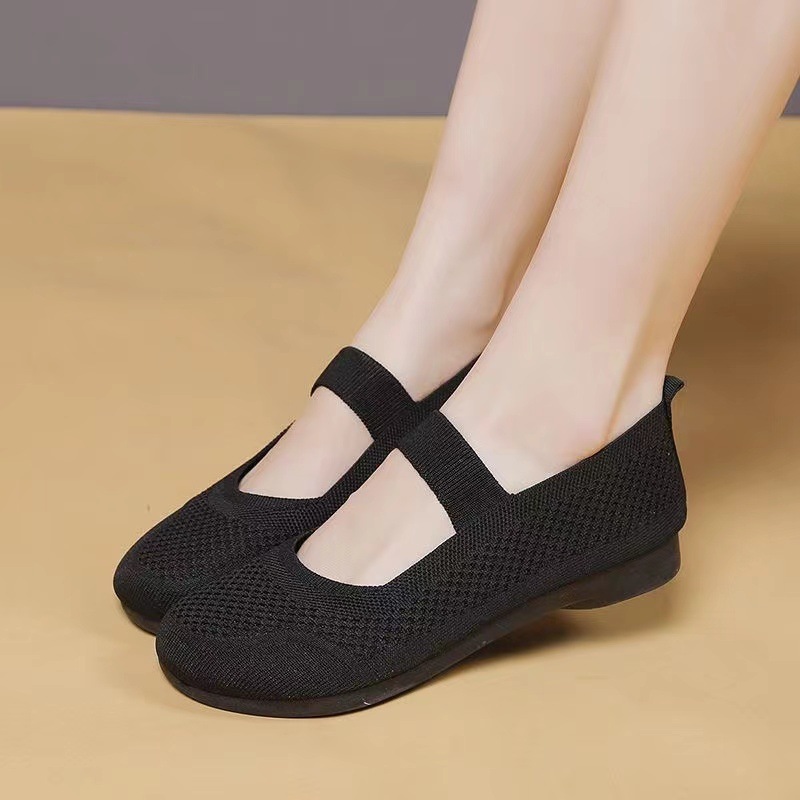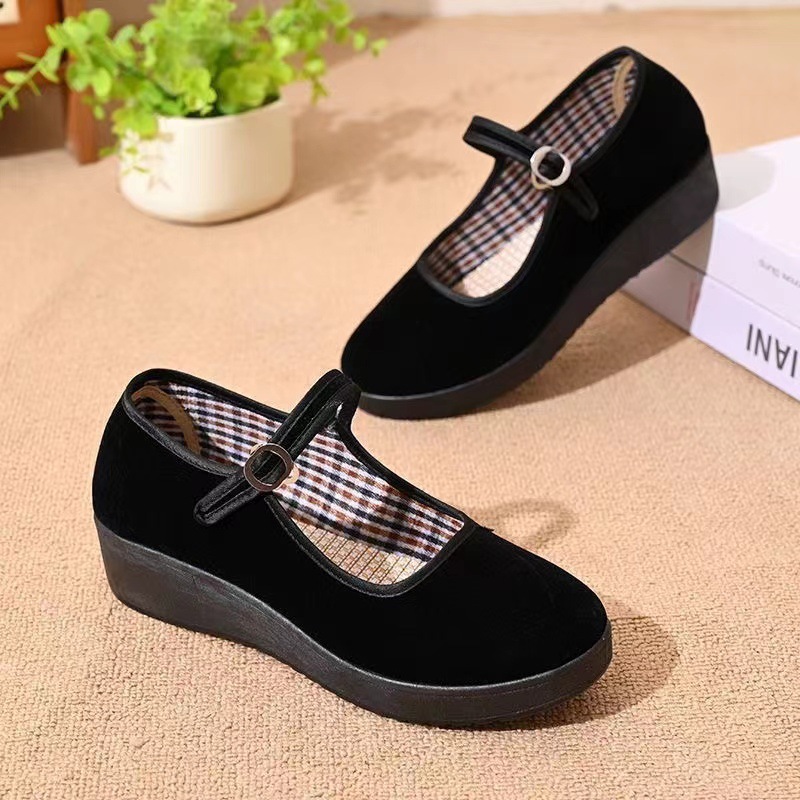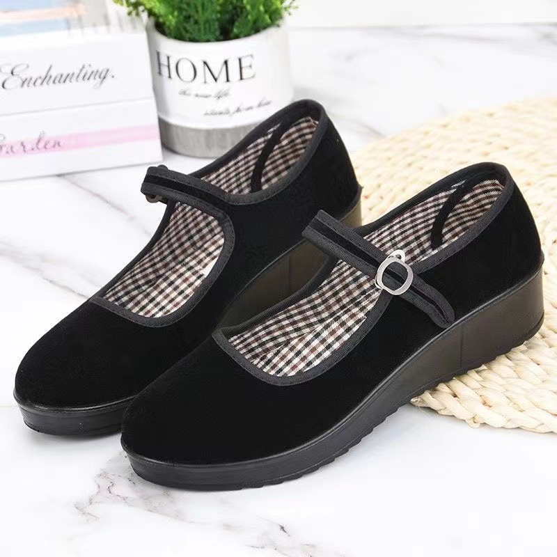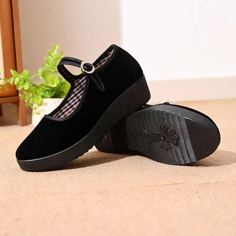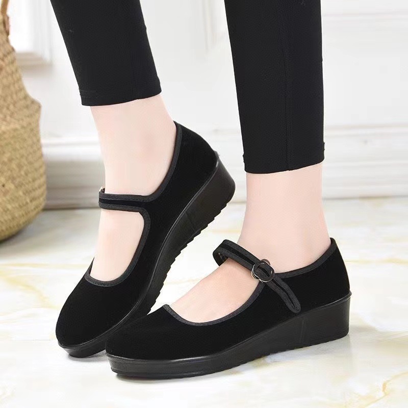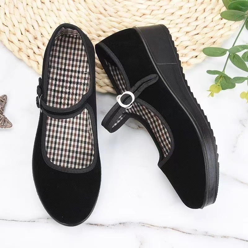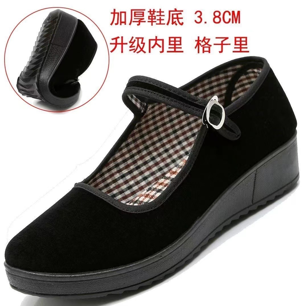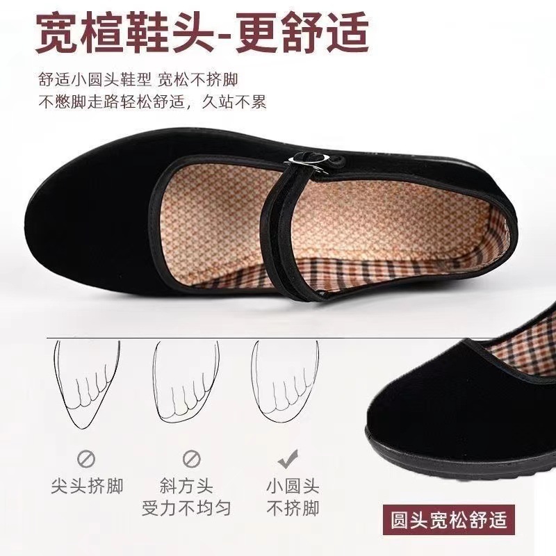 夏秋季单鞋老北京布鞋透气厚底一字扣黑色跳舞酒店工作鞋舒适凉鞋