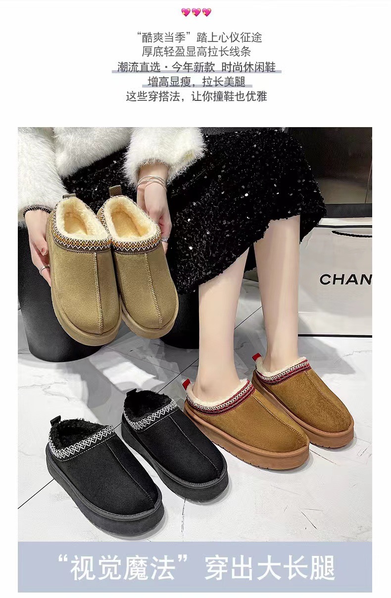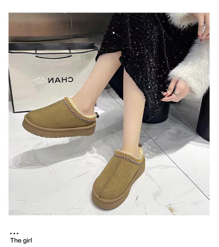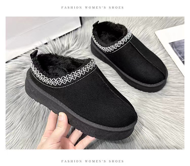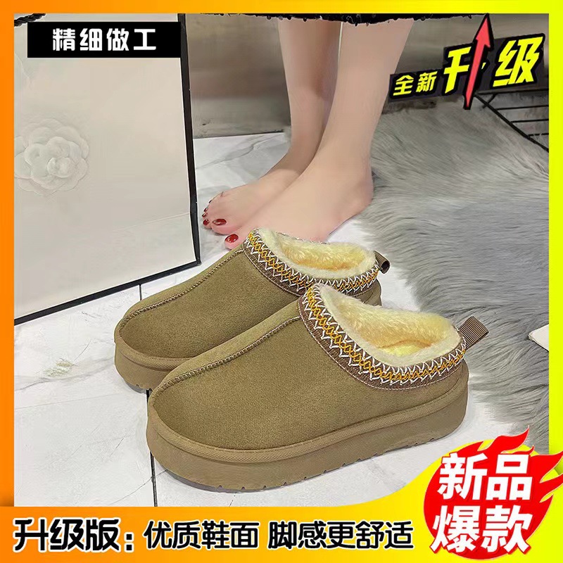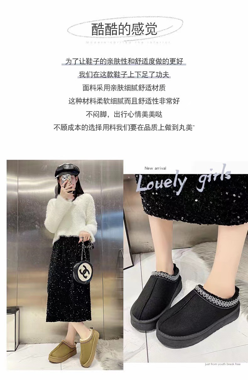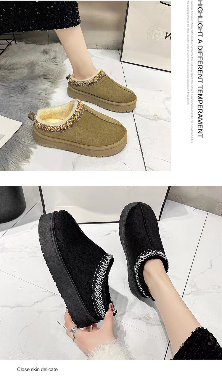 2024新款加绒加厚半拖雪地靴女款冬天厚底保暖雪地棉女士冬季鞋