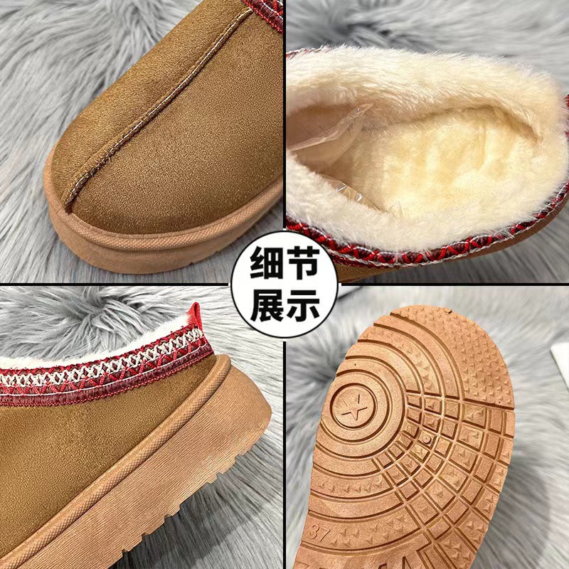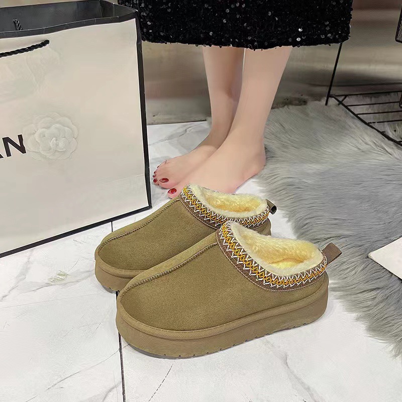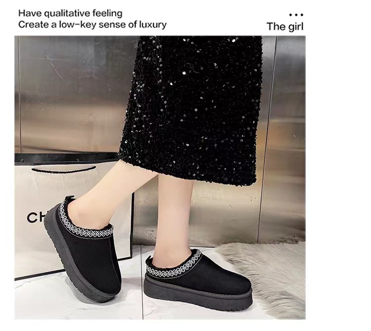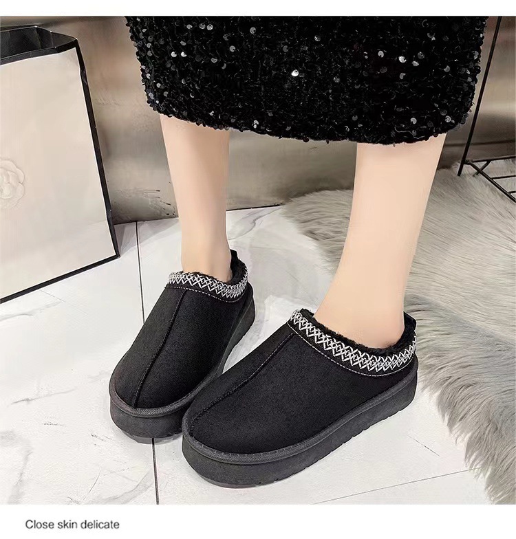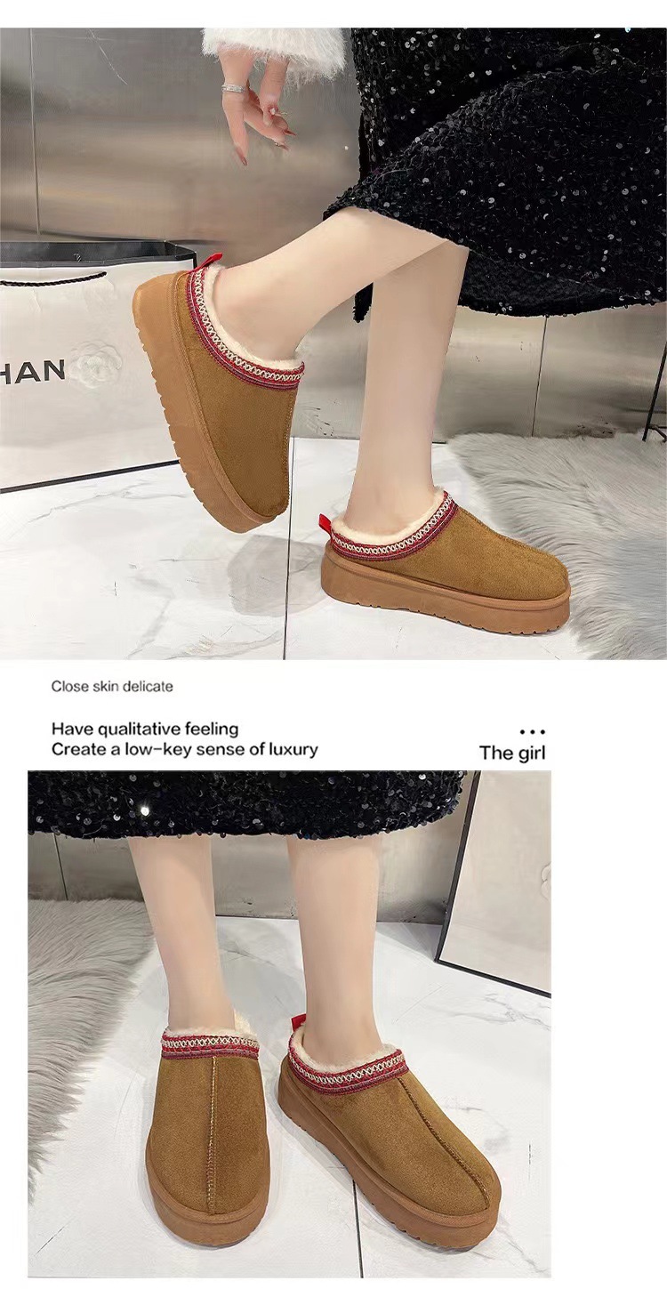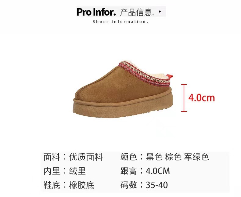 2024新款加绒加厚半拖雪地靴女款冬天厚底保暖雪地棉女士冬季鞋