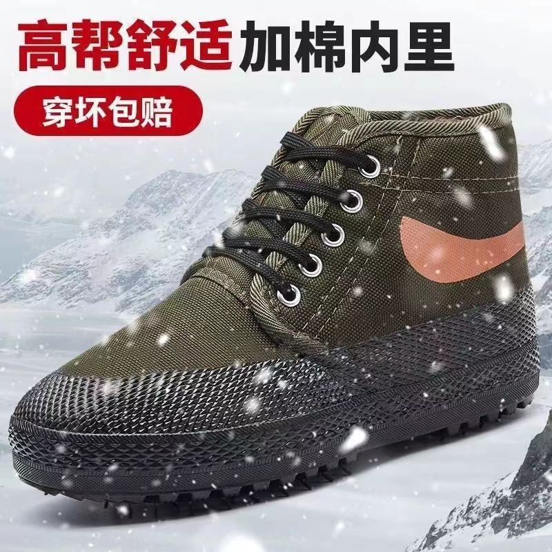 男棉鞋冬季解放鞋加厚加绒防寒保暖高帮民工劳保迷彩防滑耐磨鞋子