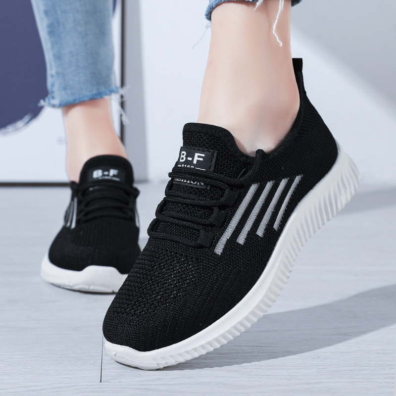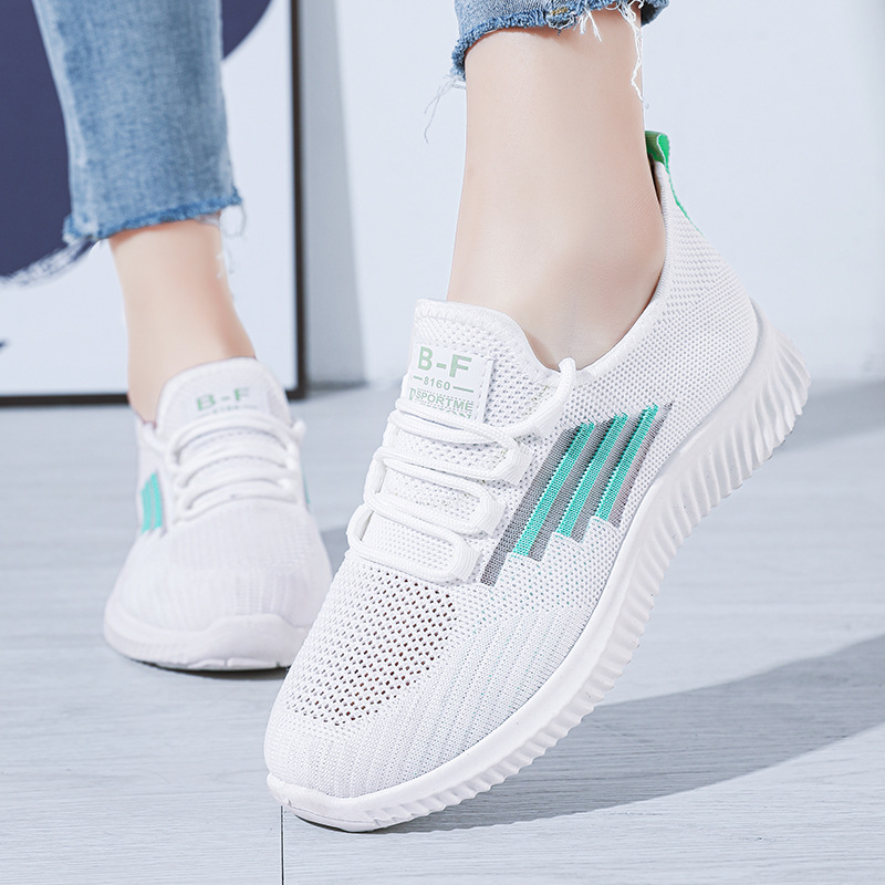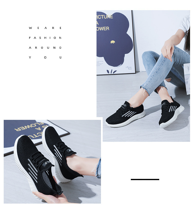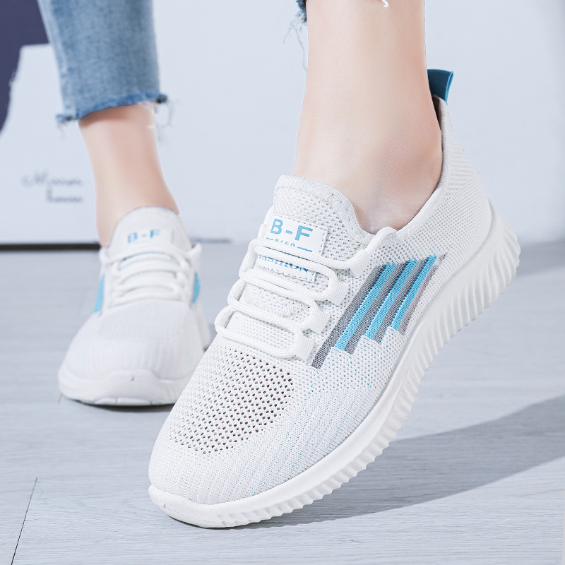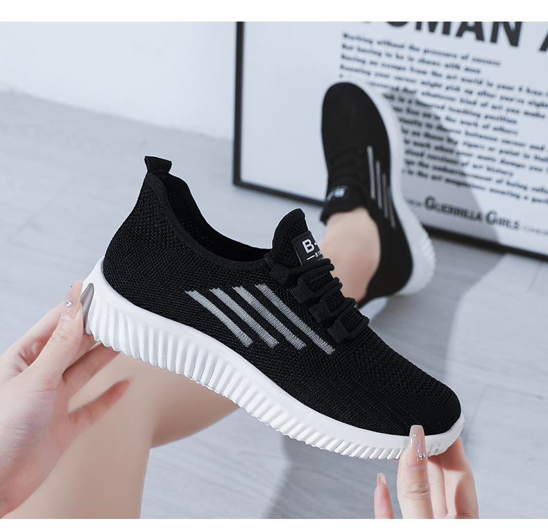 2023春夏新款网面女鞋透气运动鞋软底旅游鞋飞织小白鞋平底休闲鞋