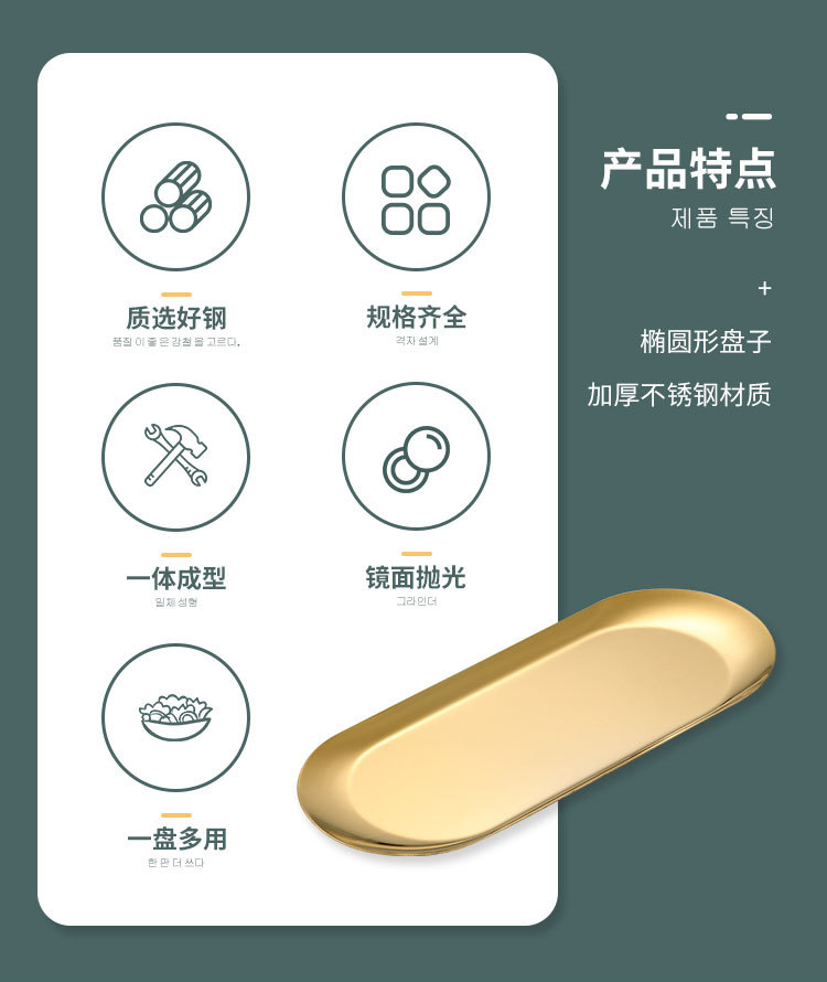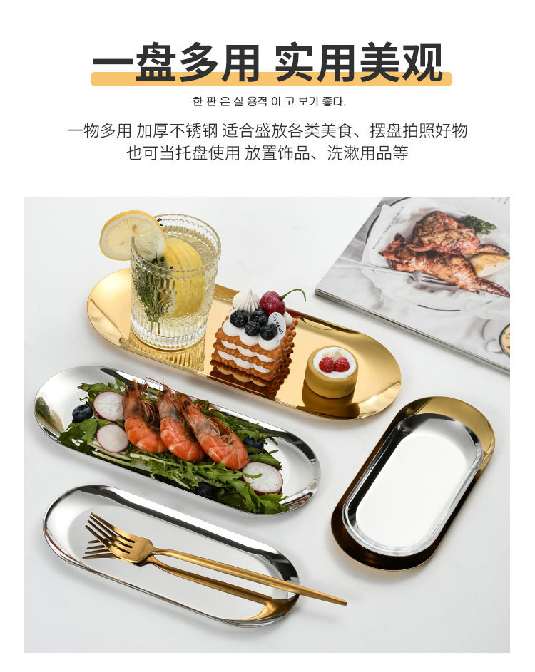 椭圆形韩式不锈钢碟烤肉碟菜碟小吃盘托盘甜品点心碟韩国料理餐具