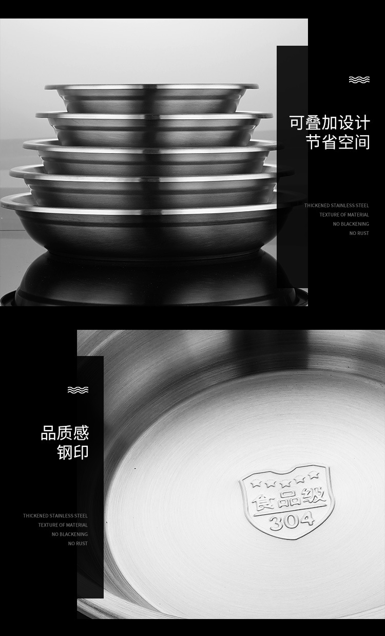 304韩式深盘加厚宽边防烫加深多用餐盘平盘不锈钢碟圆盘套装批发