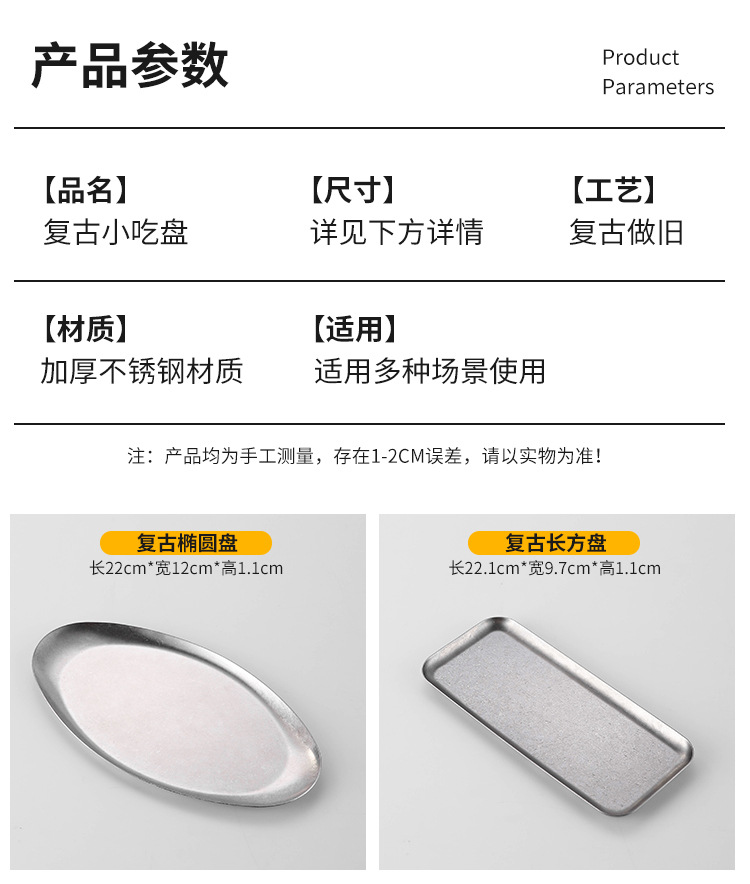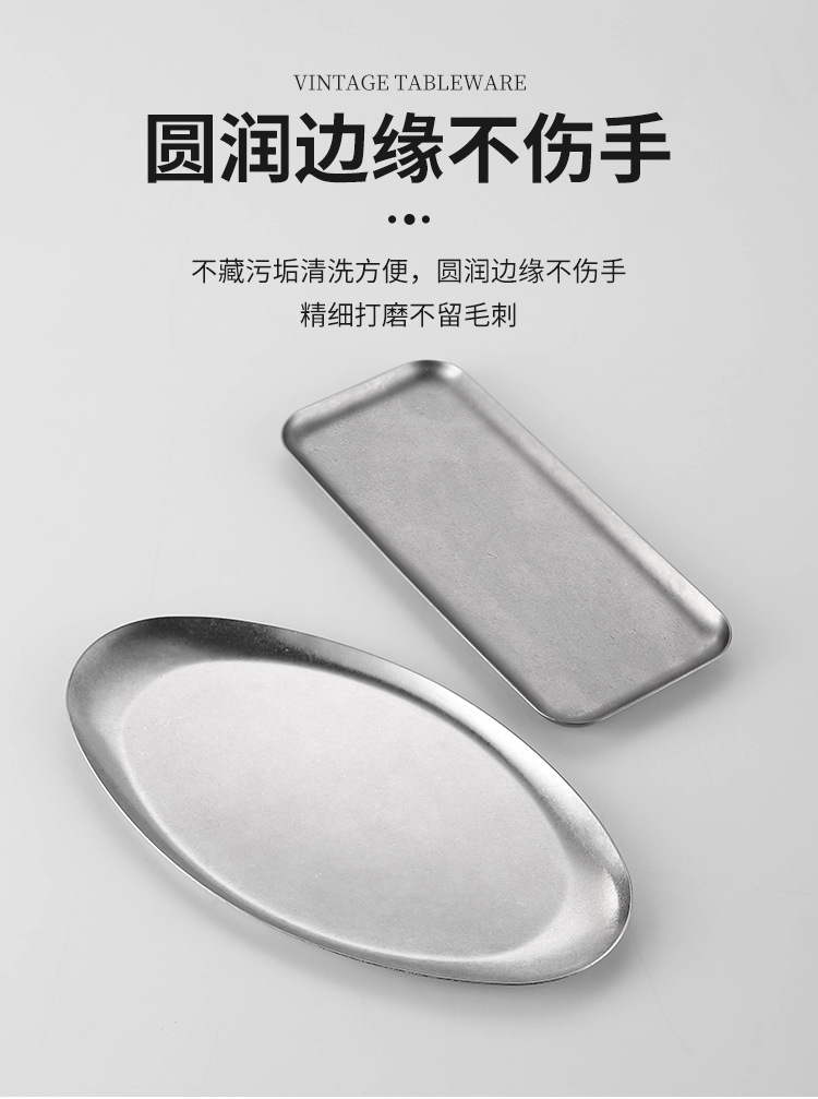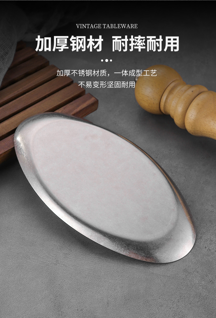 复古风做旧小吃盘不锈钢碟子咖喱盘凉菜碟甜品点心盘鱼盘骨碟