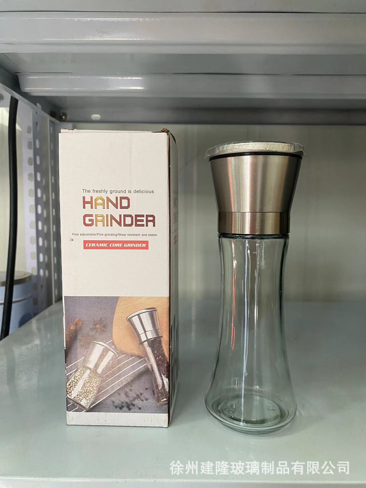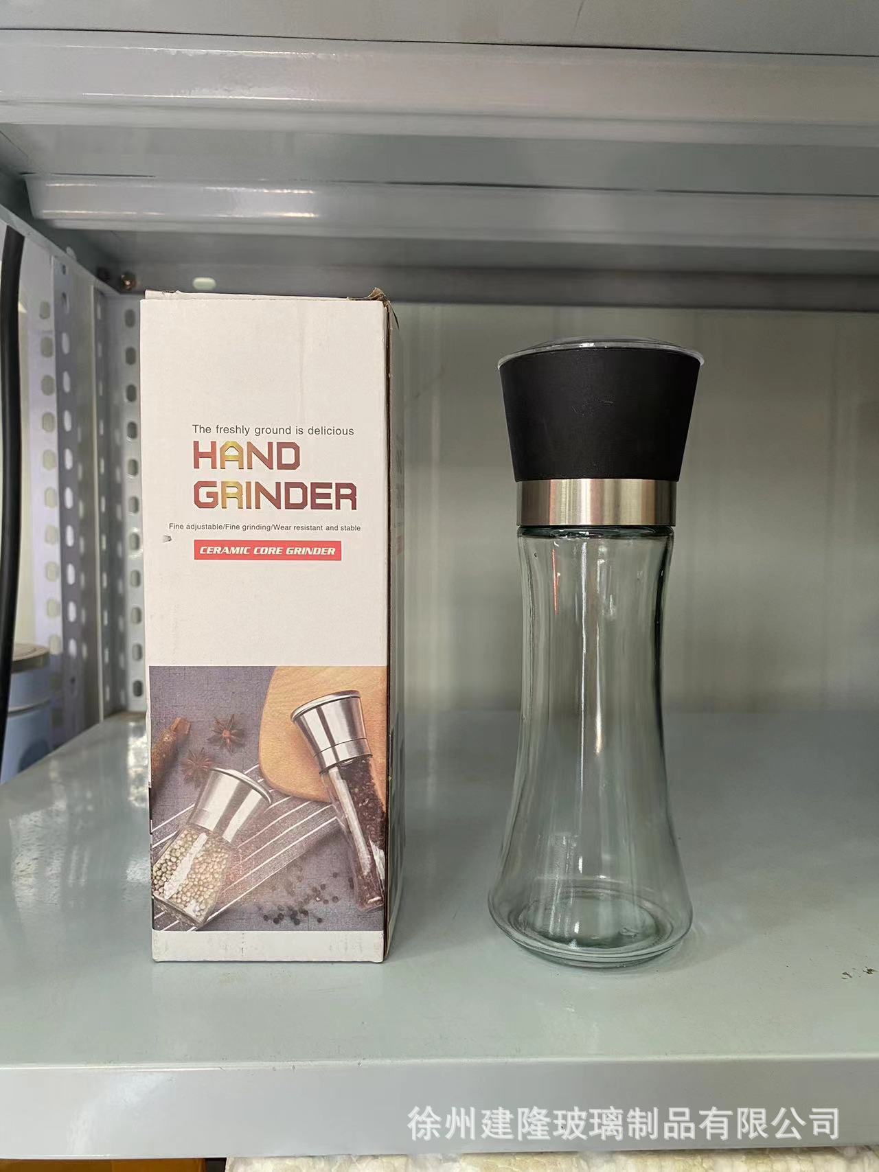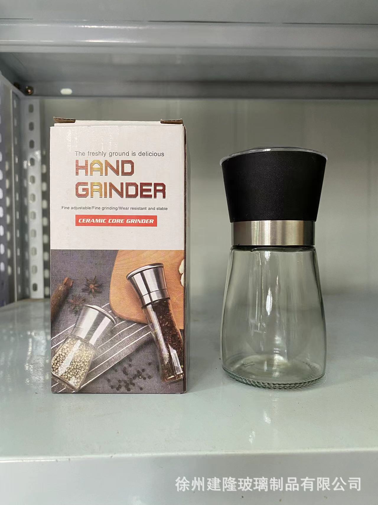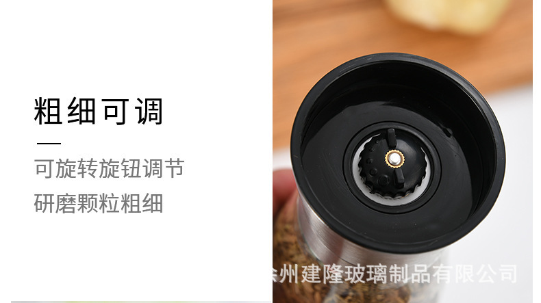 2PCS跨境厨房胡椒研磨器旋转手动玻璃调料瓶磨粉器不锈钢海盐套装
