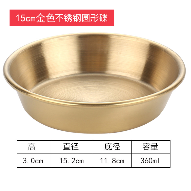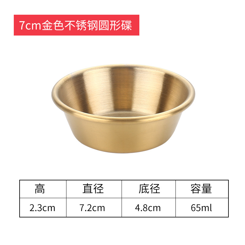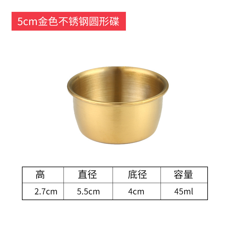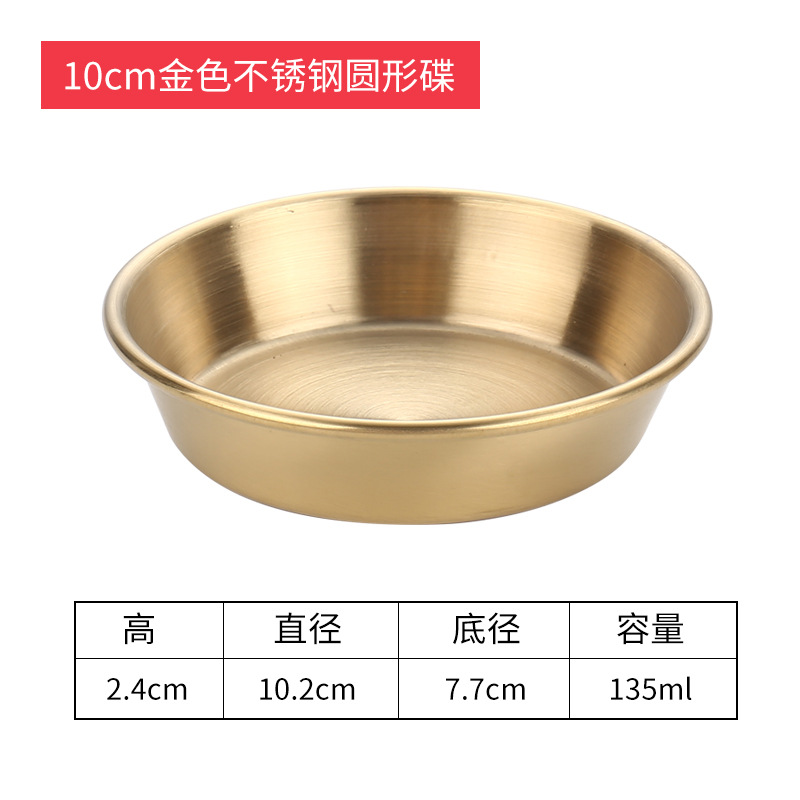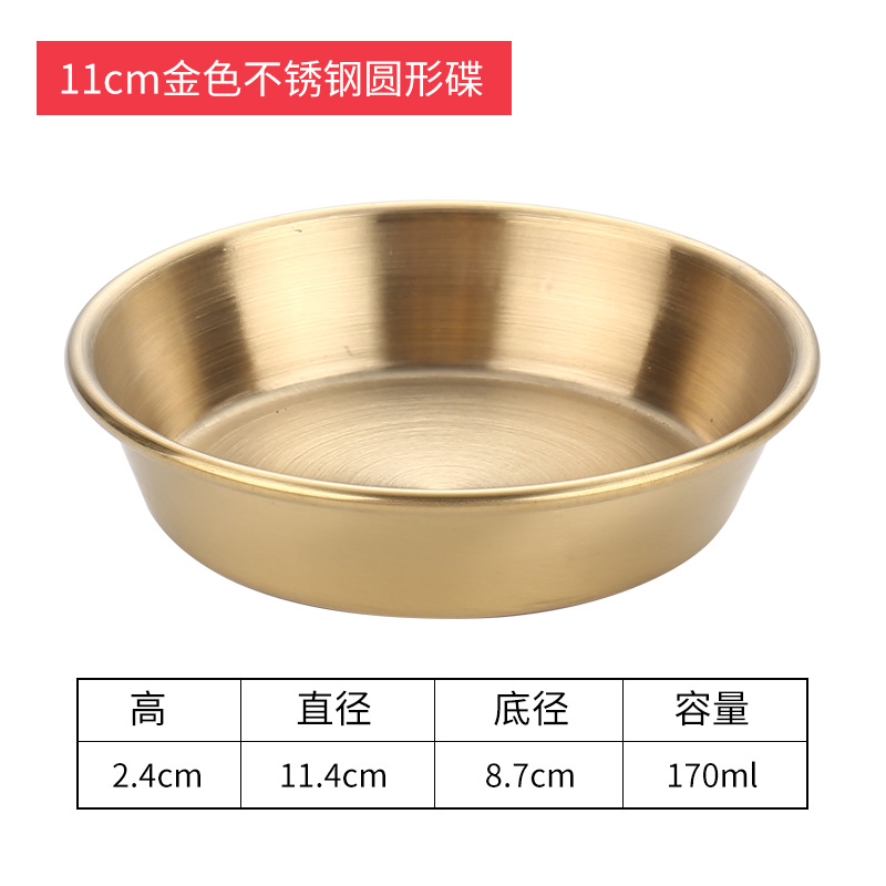 韩式烤肉店泡菜碟火锅西餐味碟金色调料圆碟户外304不锈钢酱料碟