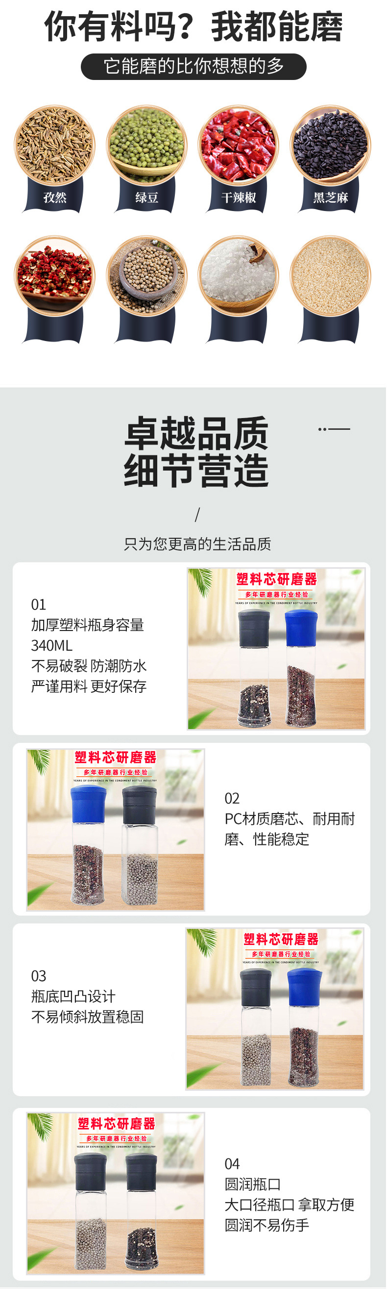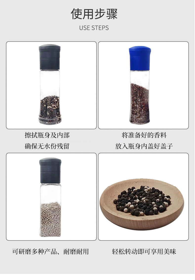 现货批发PET胡椒研磨器手动家用现磨胡椒粉碎海盐花椒白黑胡椒粒