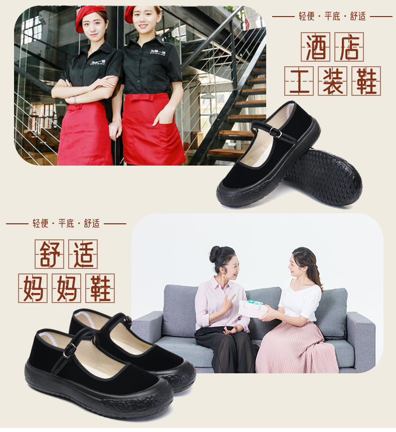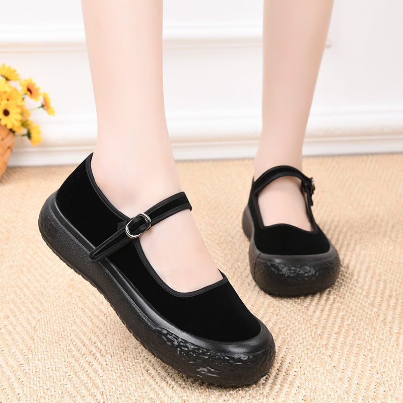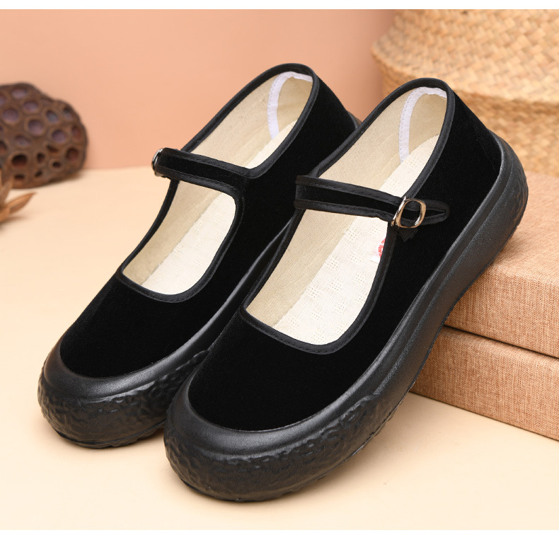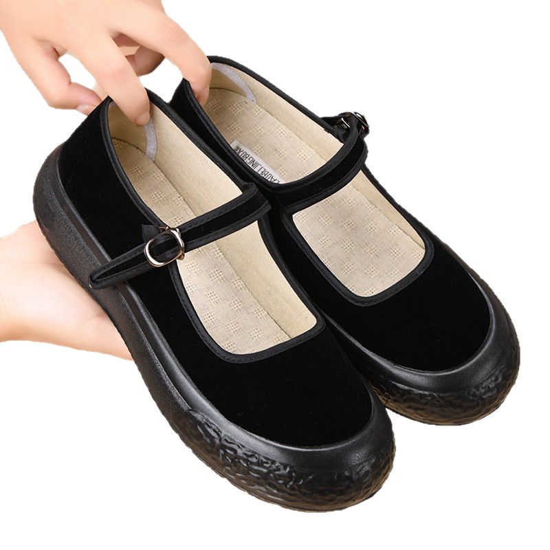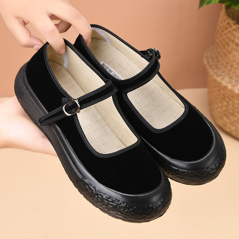 老北京布鞋女厚底工作鞋轻便软底上班黑布鞋酒店礼仪舞蹈鞋妈妈鞋