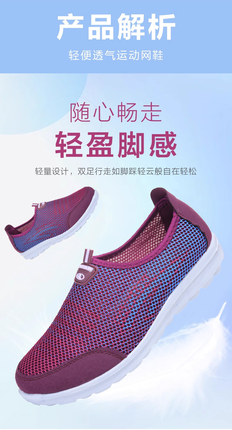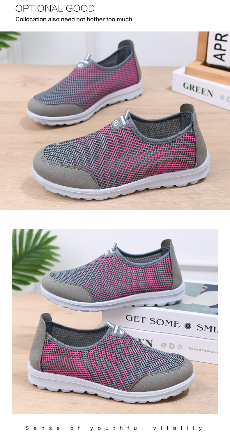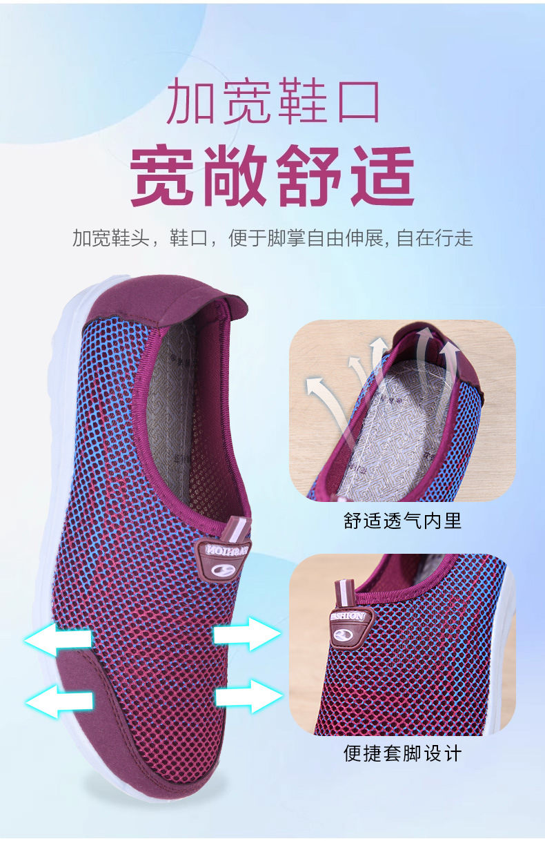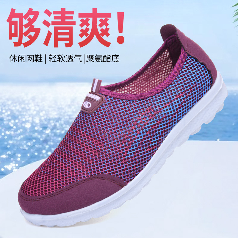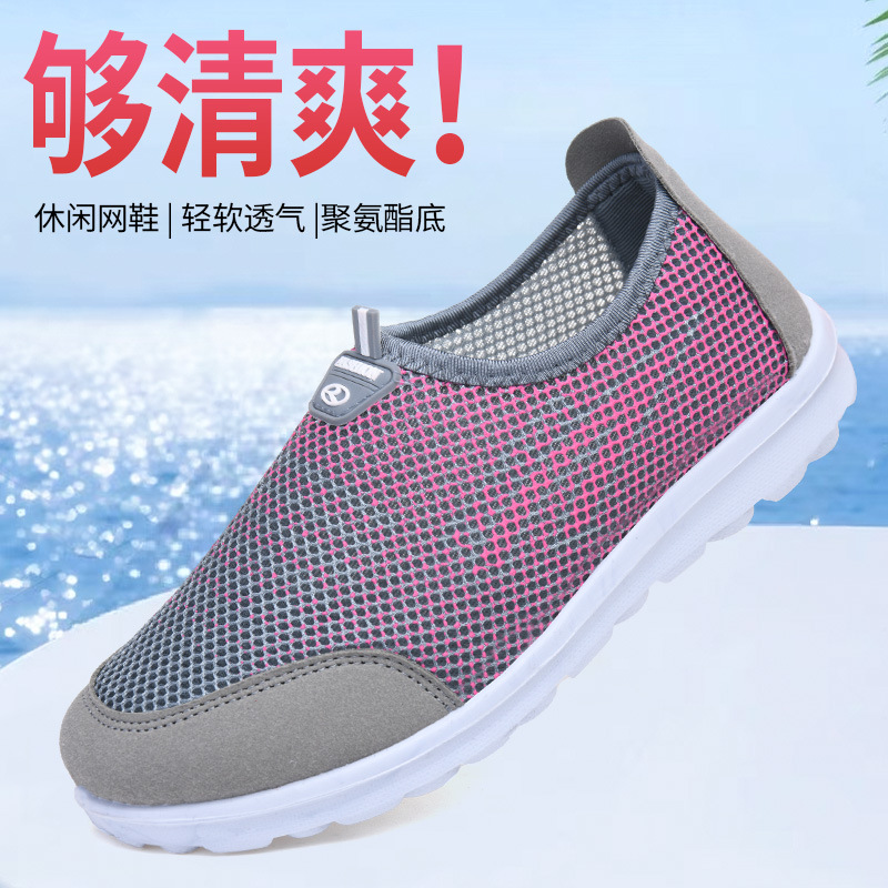 女鞋夏季软底不闷脚妈妈鞋休闲透气镂空网面一脚蹬运动健步单鞋