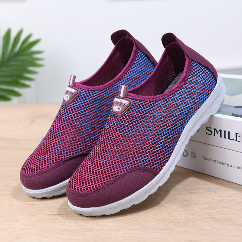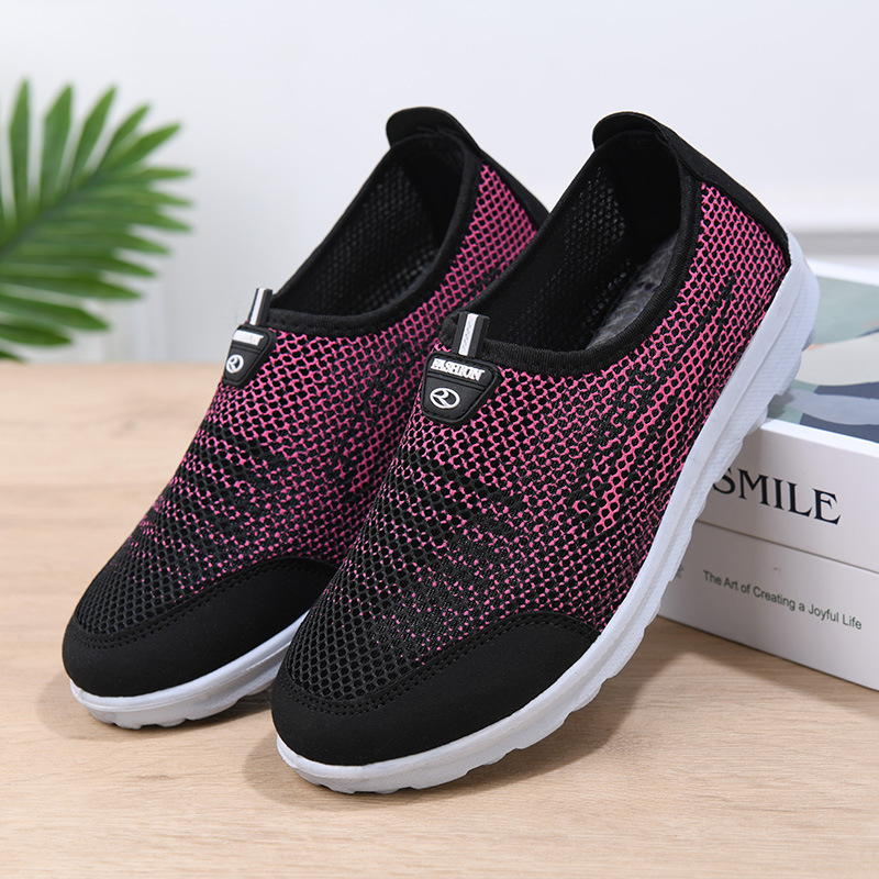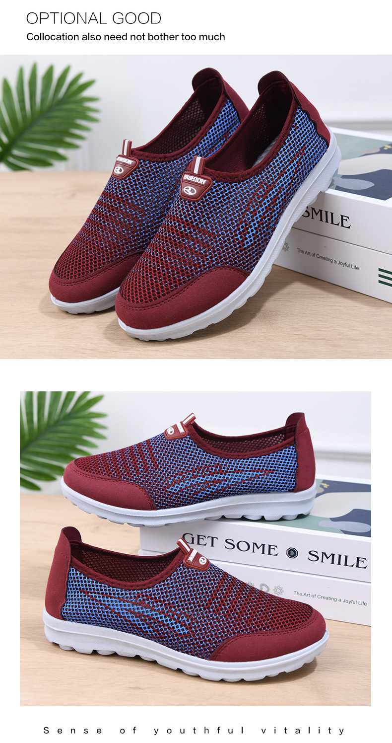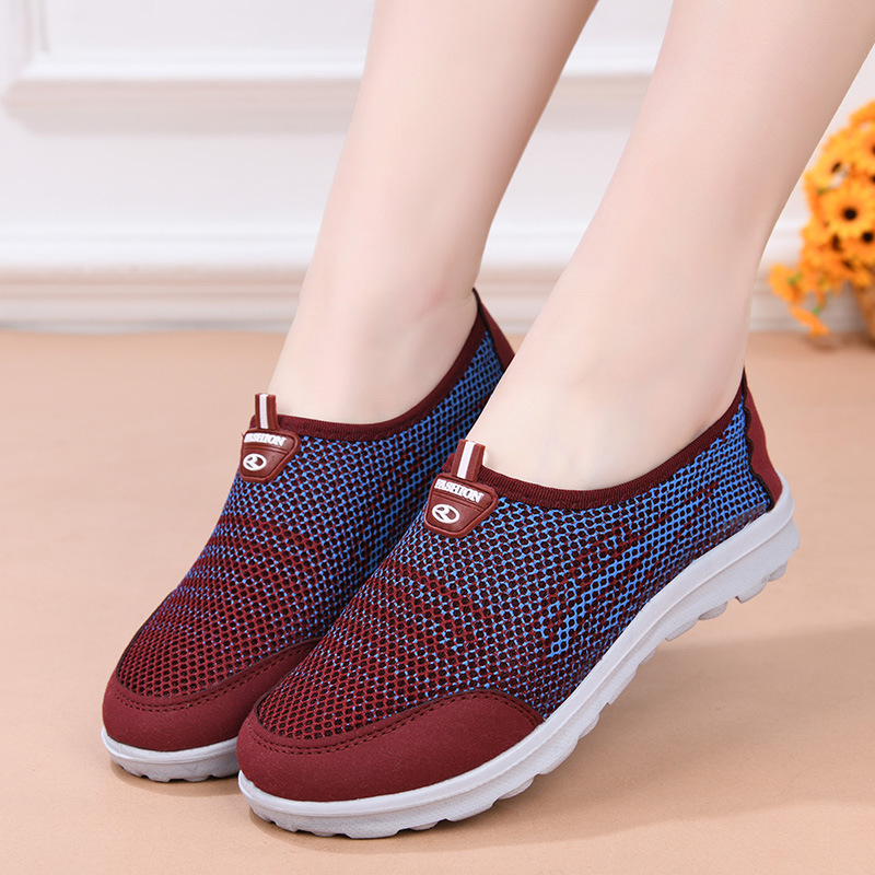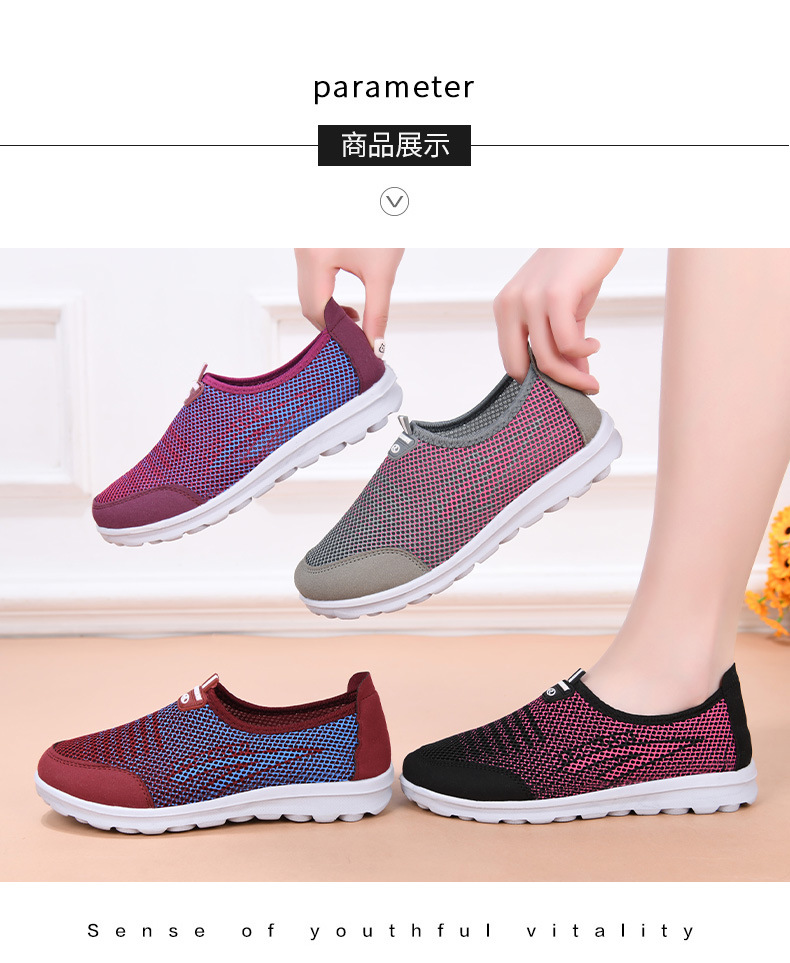 女鞋夏季软底不闷脚妈妈鞋休闲透气镂空网面一脚蹬运动健步单鞋