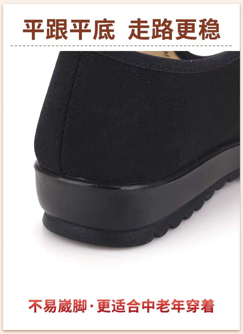 黑色格子鞋圆头软底布鞋舞蹈防滑上班中老年平底舒适妈妈鞋防滑鞋