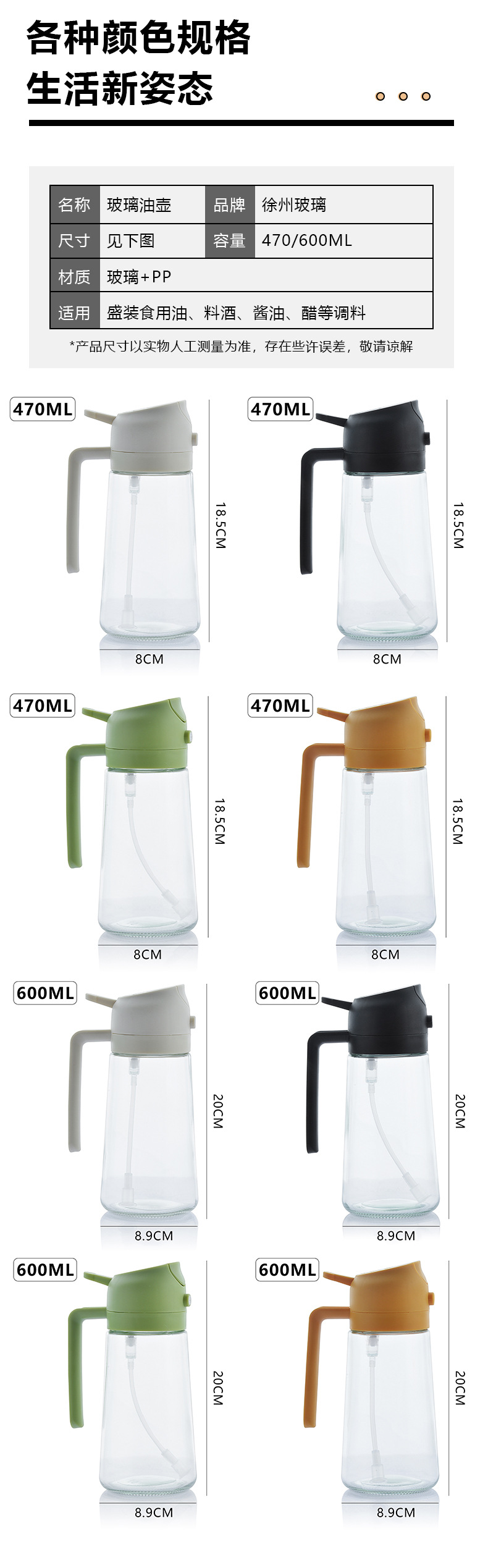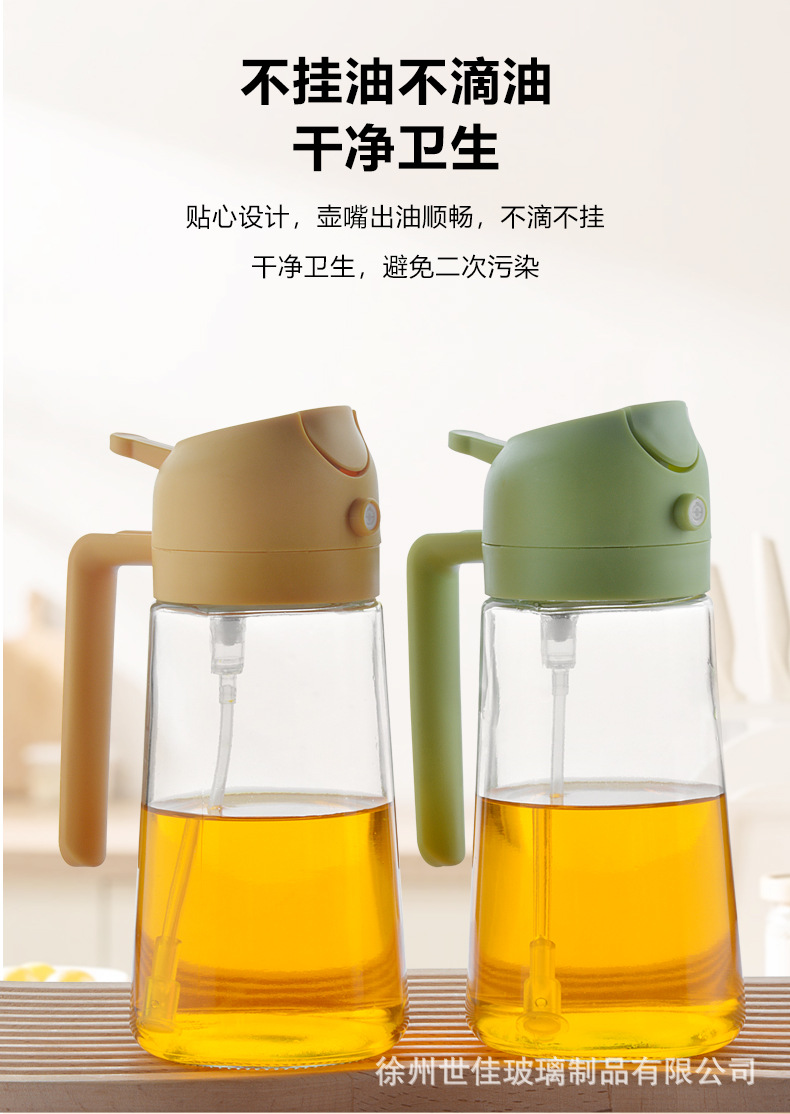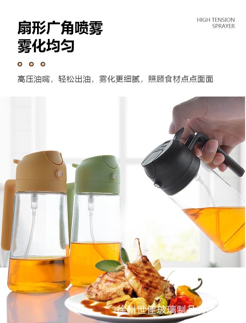 470ml玻璃喷倒两用油壶家用厨房大容量按压式喷雾油瓶开合喷油壶