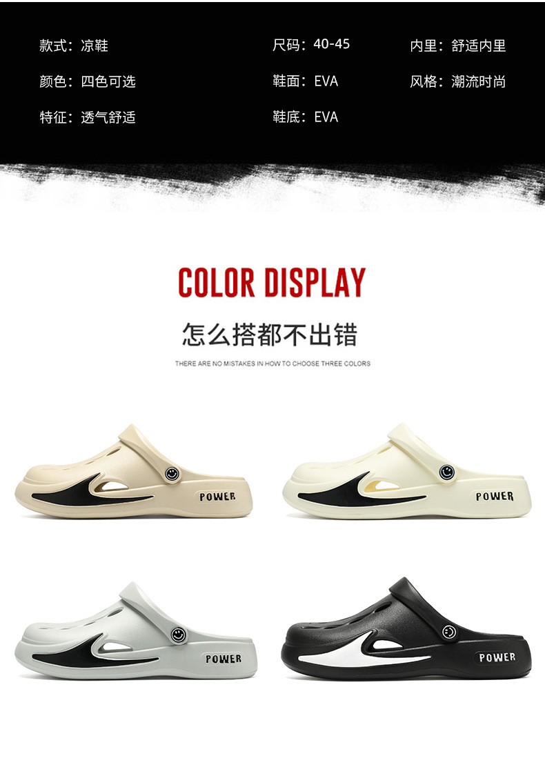 男鞋EVA新款夏季洞洞鞋男透气涉水拖鞋男士户外沙滩凉鞋男一脚蹬