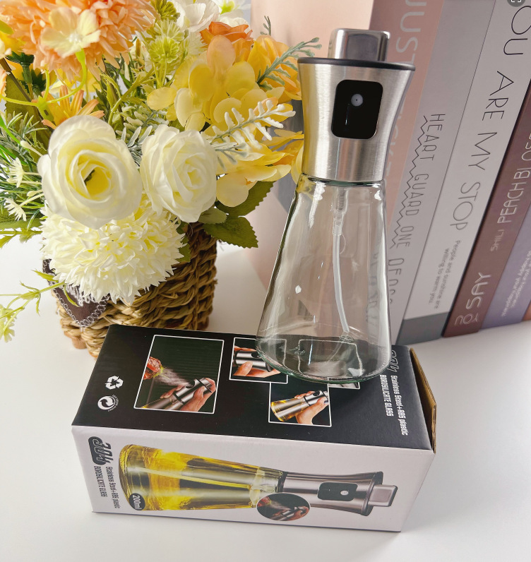 304不锈钢200ml喷油壶多功能空气炸锅油瓶玻璃高压烘焙油壶控油瓶