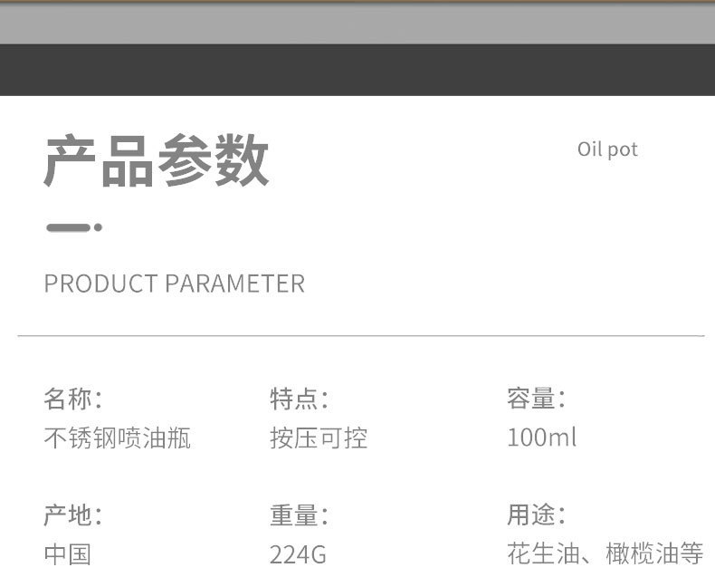 不锈钢喷油壶喷油瓶按压式雾化喷油瓶橄榄油瓶厨房家用烧烤喷油壶