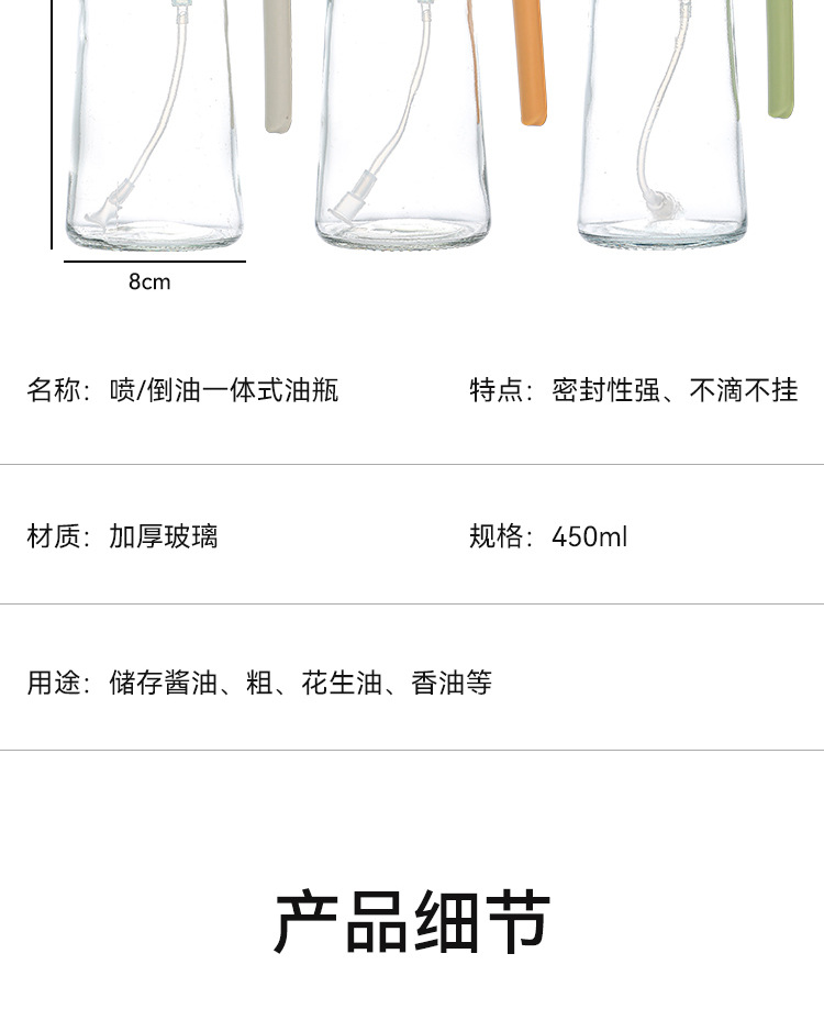 喷油壶厨房防漏调料罐酱油醋瓶香油瓶喷雾玻璃油壶喷倒一体油瓶