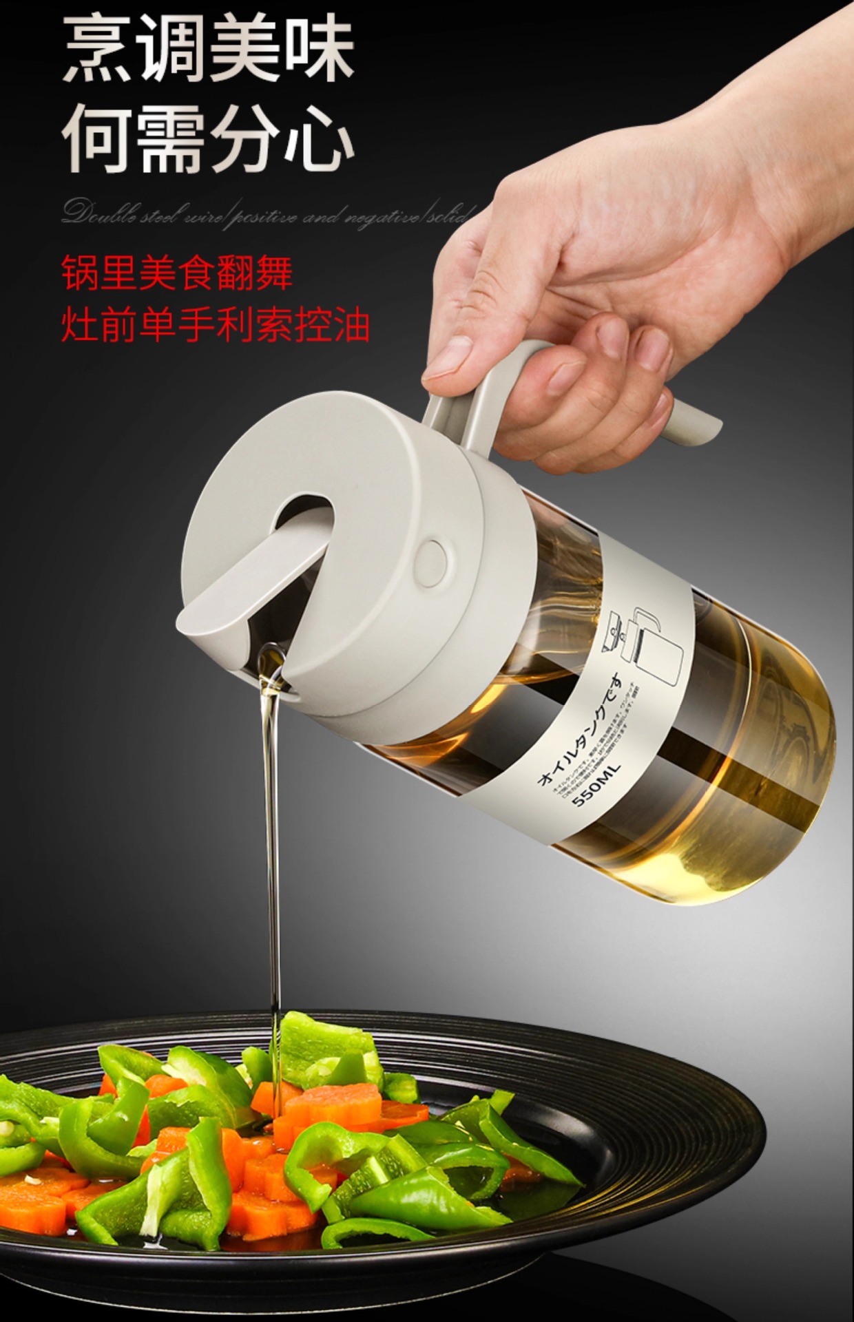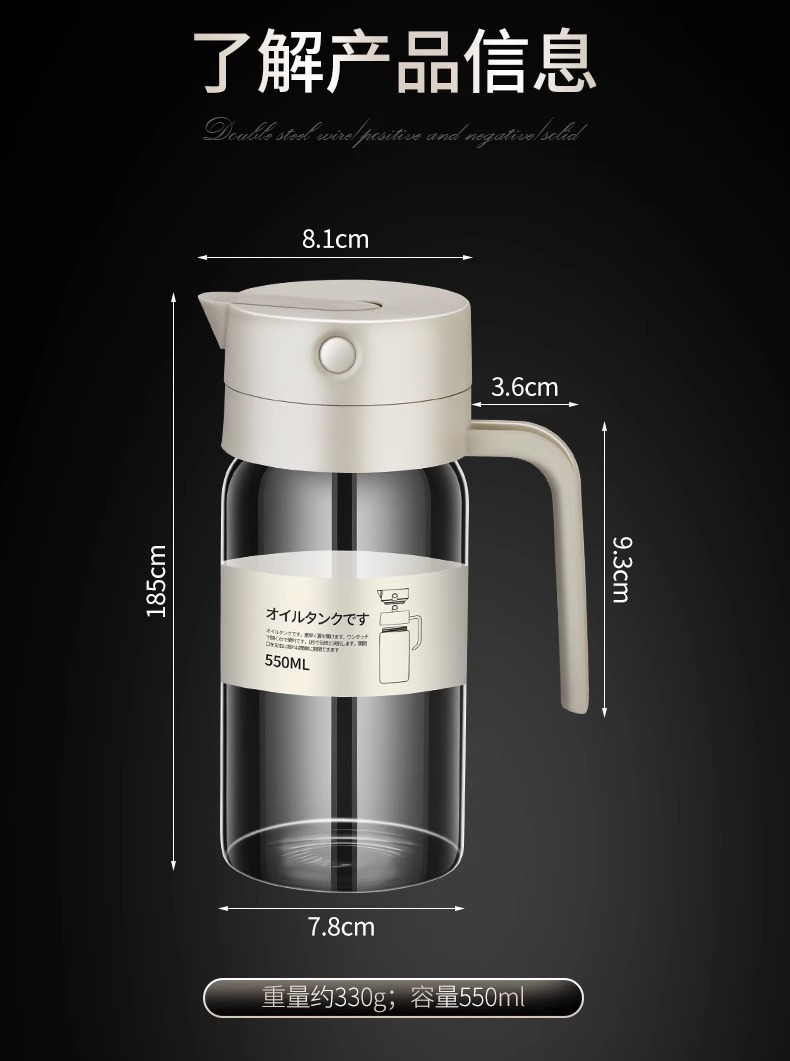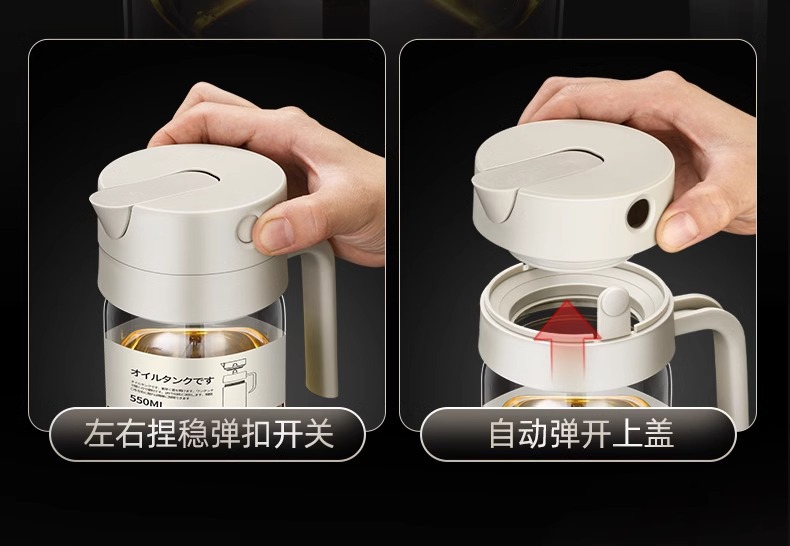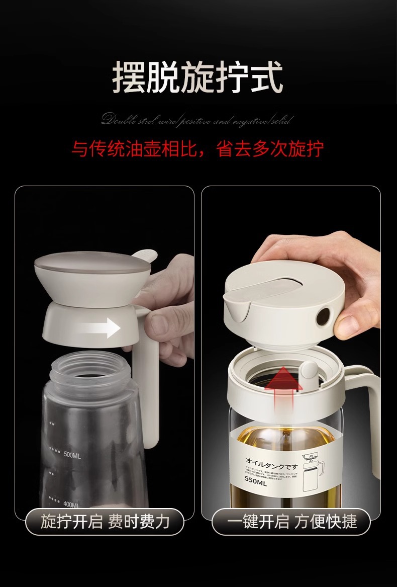 高颜值厨房油壶不挂油玻璃自动开合重力油瓶防漏家用酱油醋调料瓶