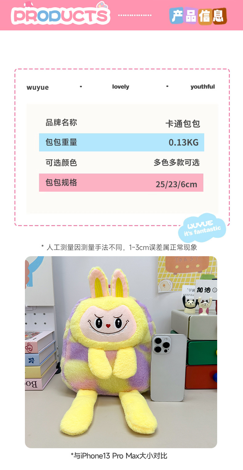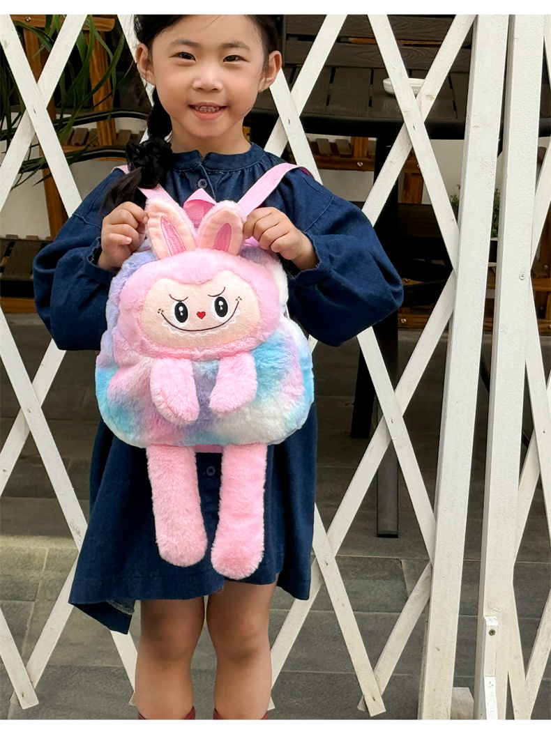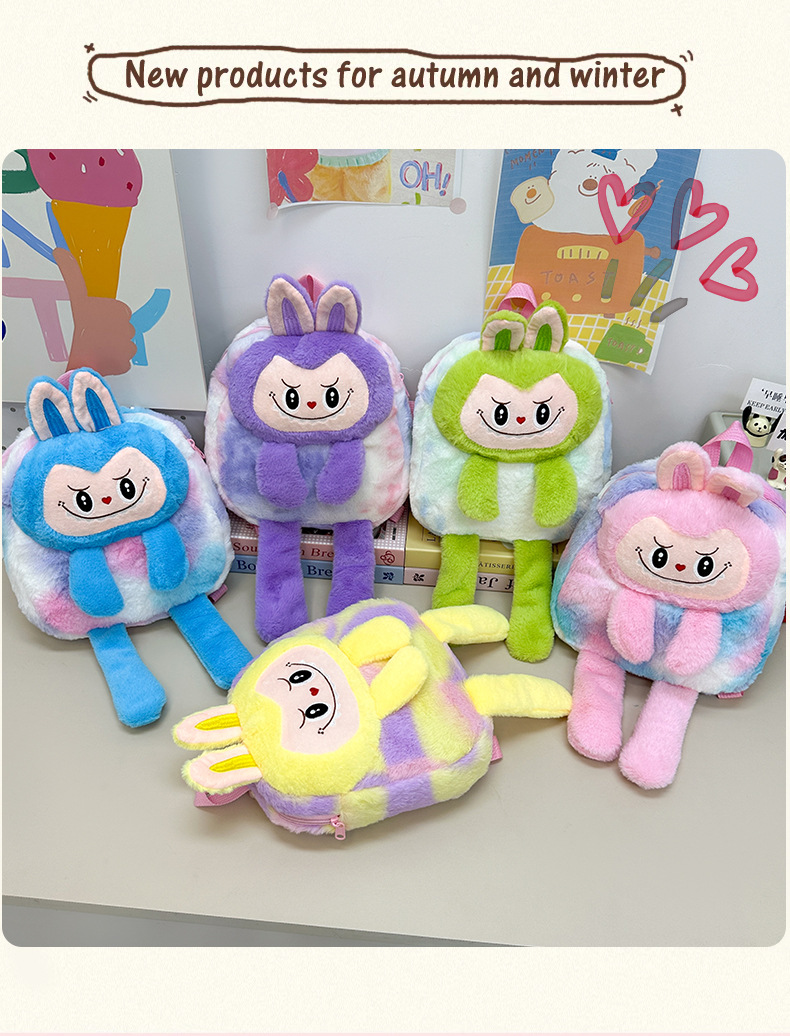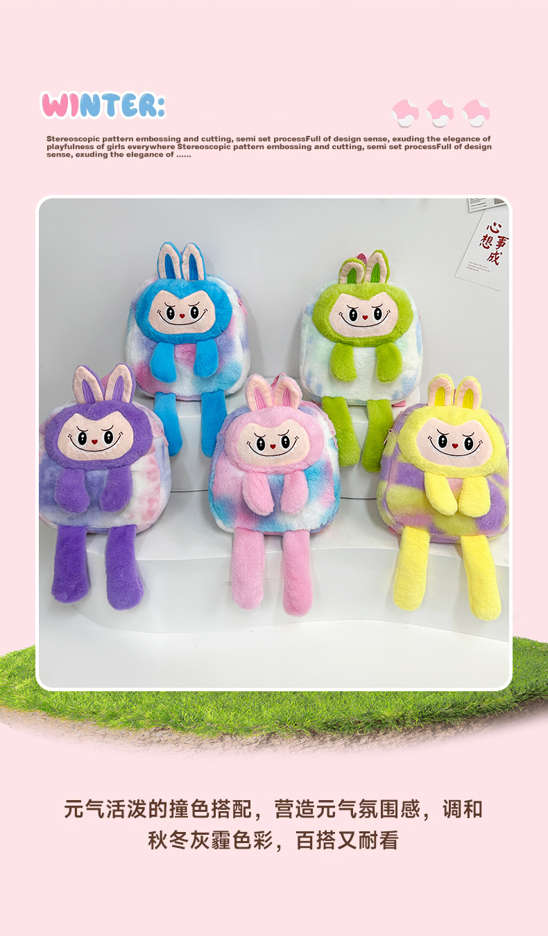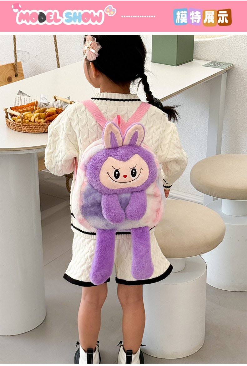 跨境新款拉布布毛绒玩具紫色黄色双肩包公仔玩偶儿童卡通可爱毛绒