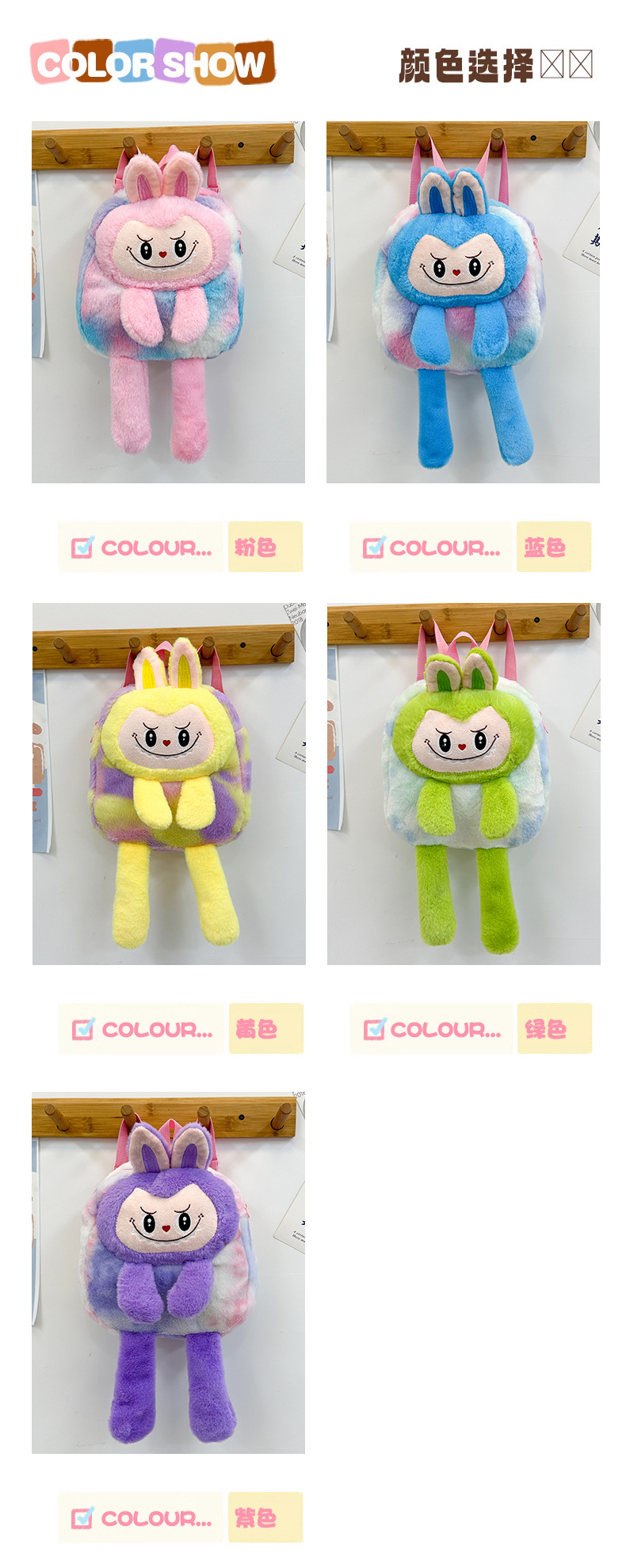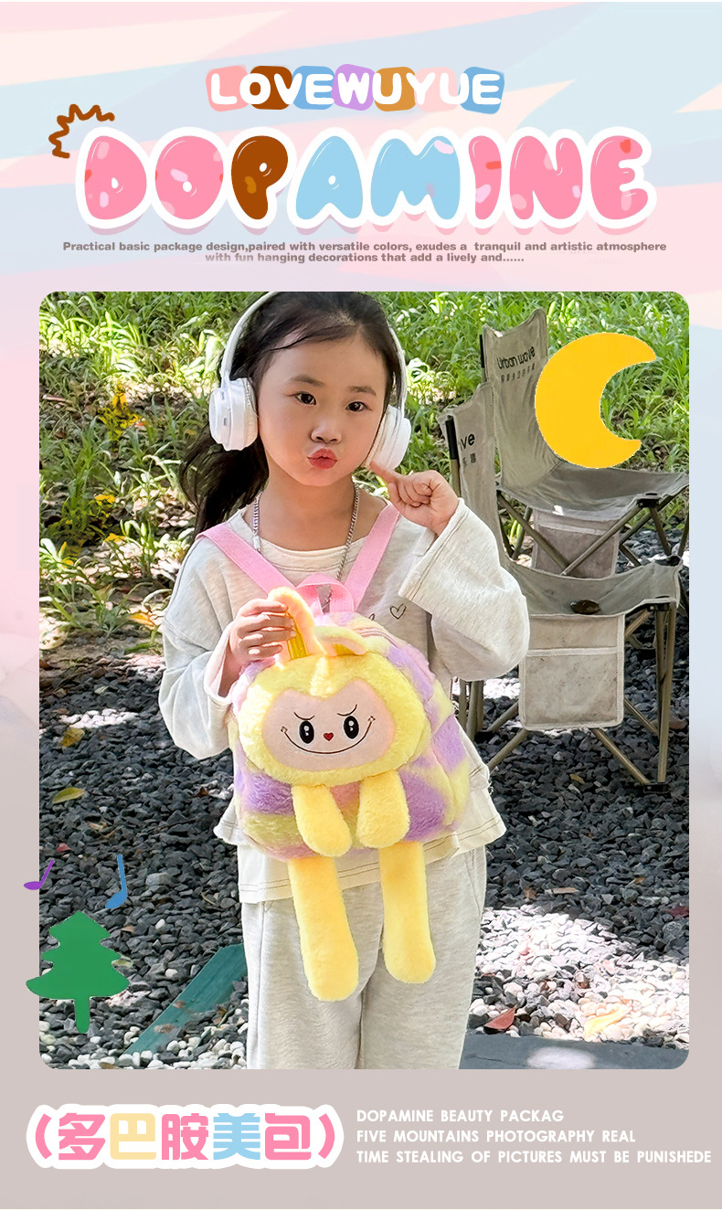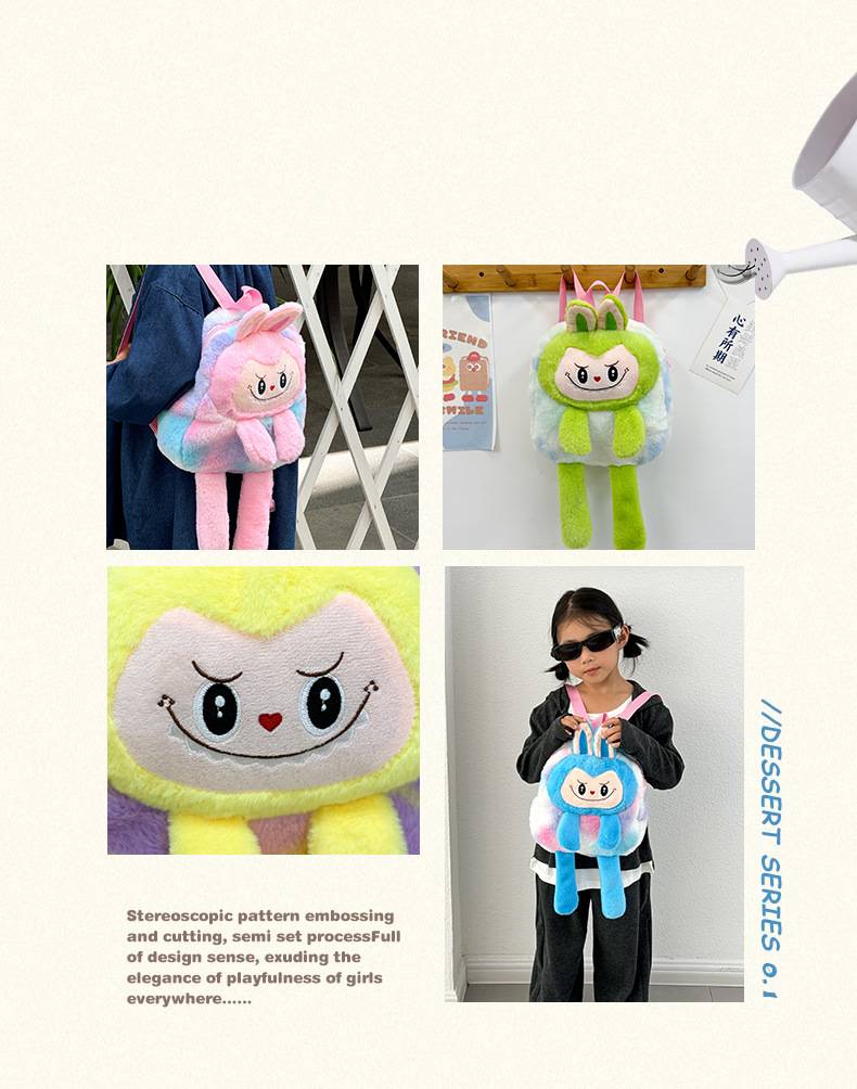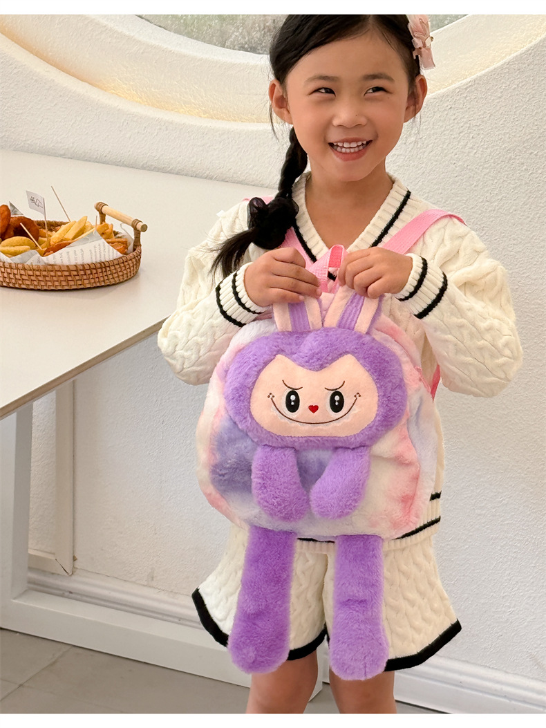 跨境新款拉布布毛绒玩具紫色黄色双肩包公仔玩偶儿童卡通可爱毛绒