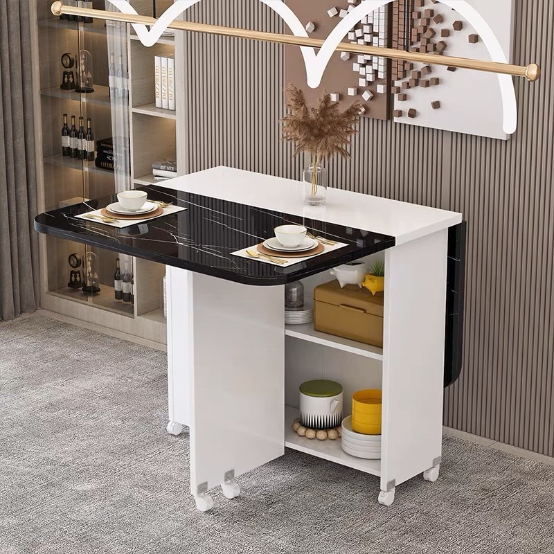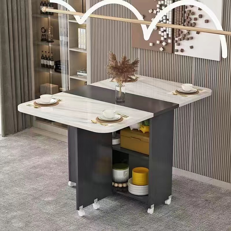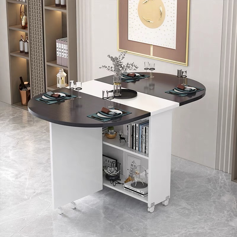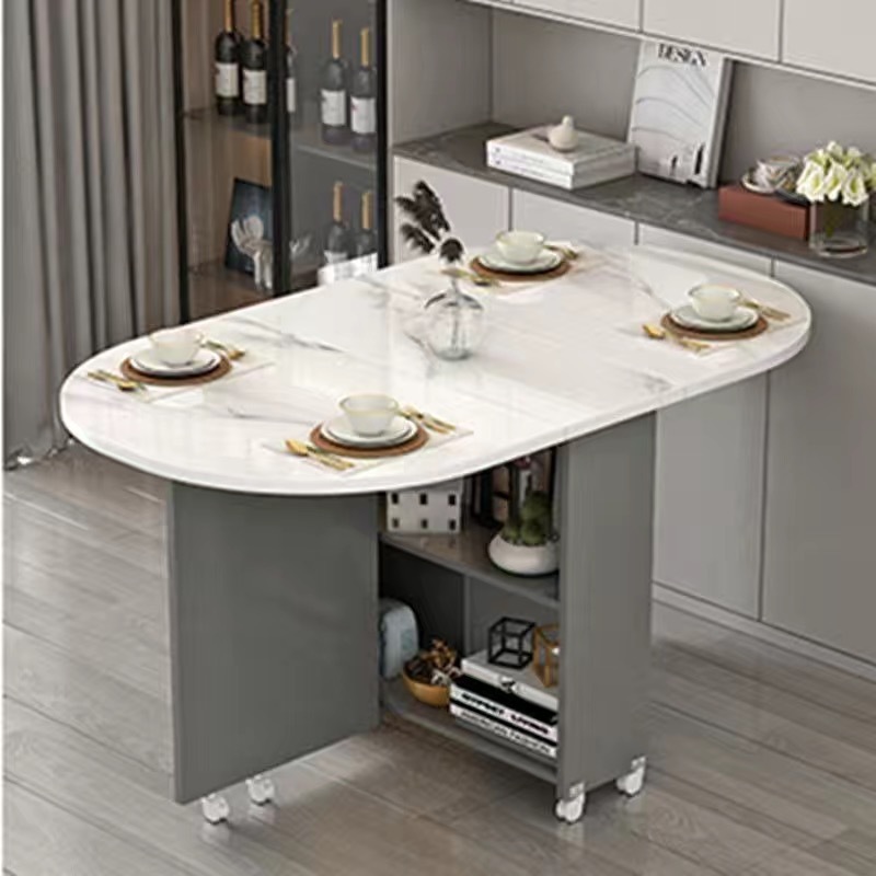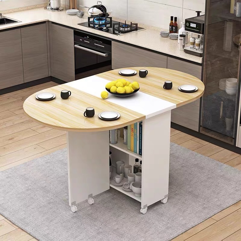 简易圆形折叠餐桌小户型家用可移动带轮长方形简约多功能吃饭桌子
