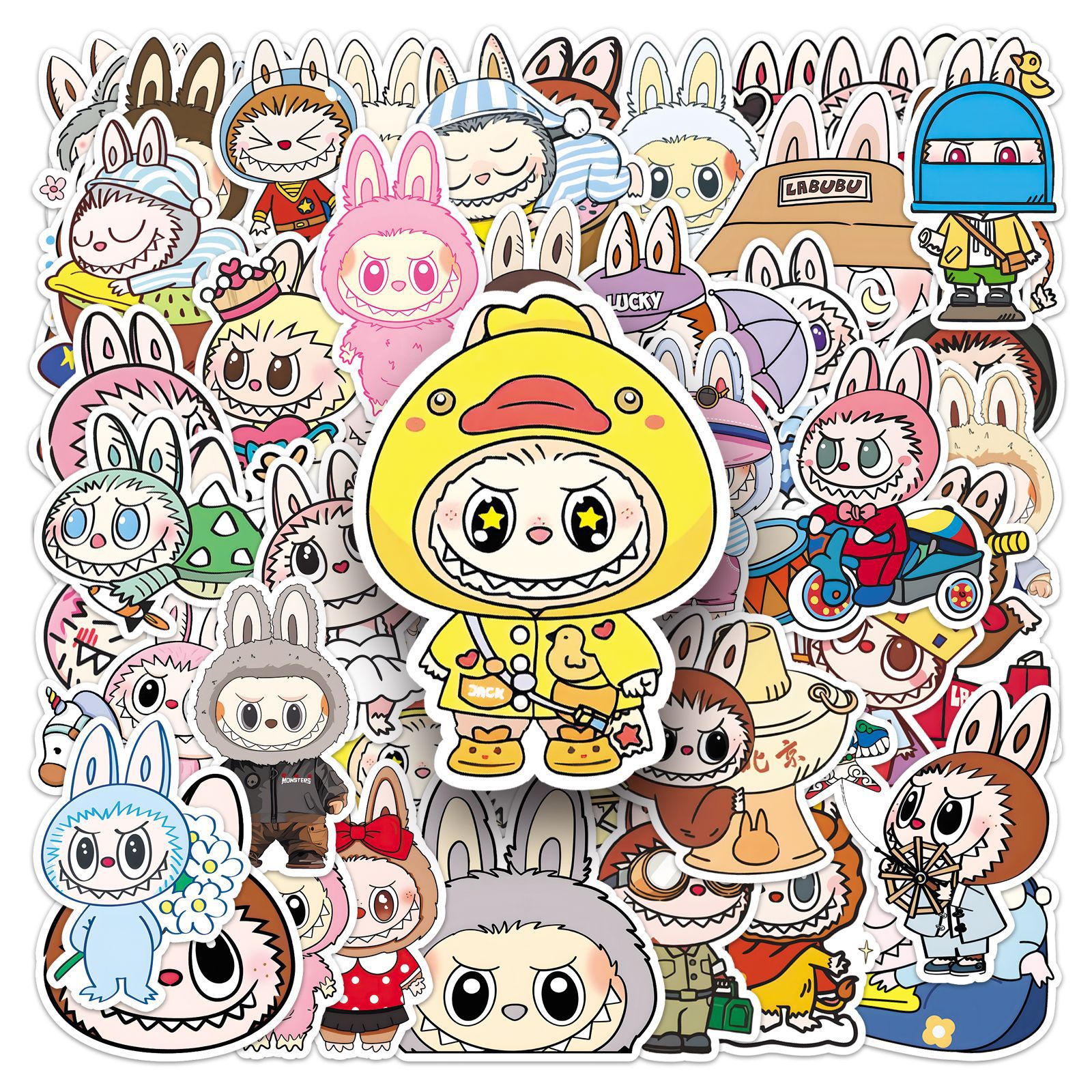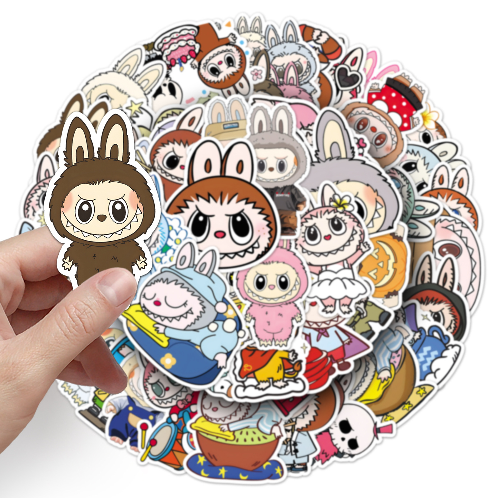 50张卡通拉布布周边贴纸labubu手账手机壳装饰可爱玩偶奶茶杯贴纸