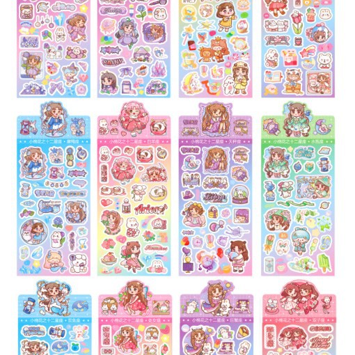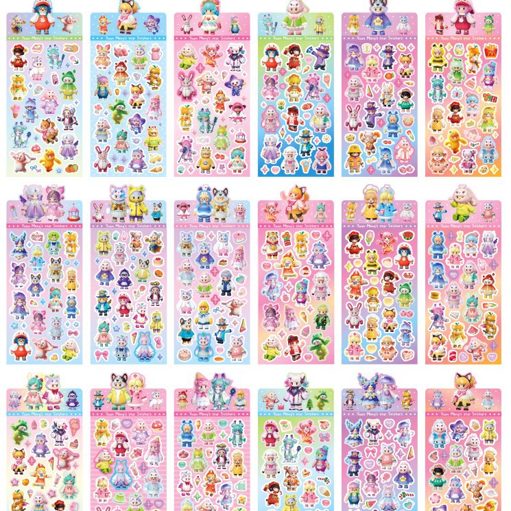 韩系镭射咕卡贴纸三丽鸥手账贴小麻萌萌可爱女孩贴画批发卡通素材
