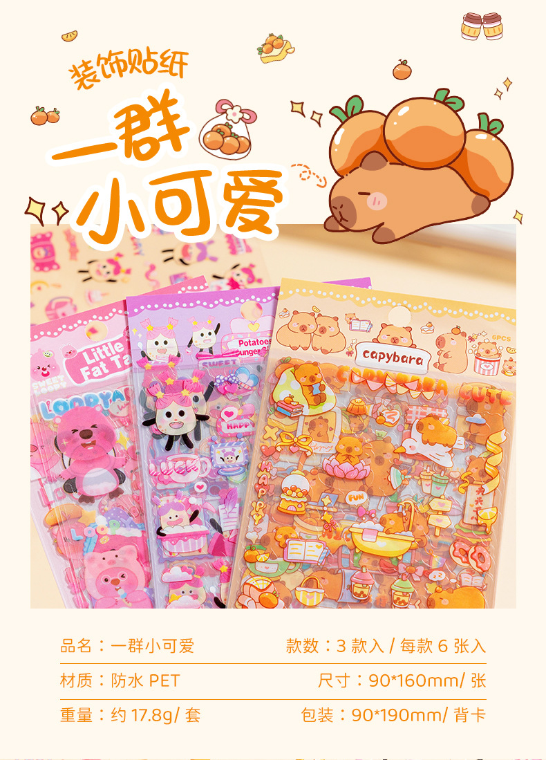 一群小可爱防水pet手账贴纸卡通贴画 手帐贴纸儿童女可爱贴纸包
