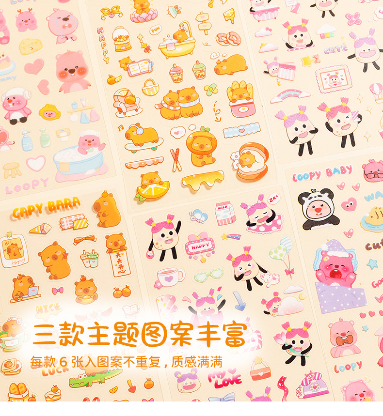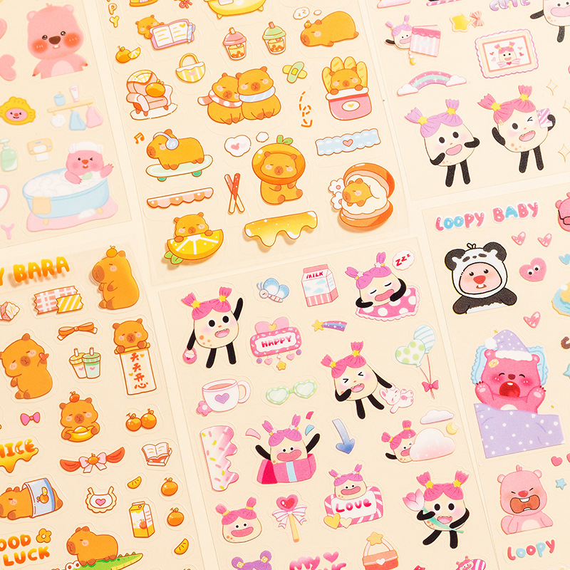 卡皮巴拉透明防水pet贴纸diy手账日记装饰文具贴小胖达土豆妹贴纸