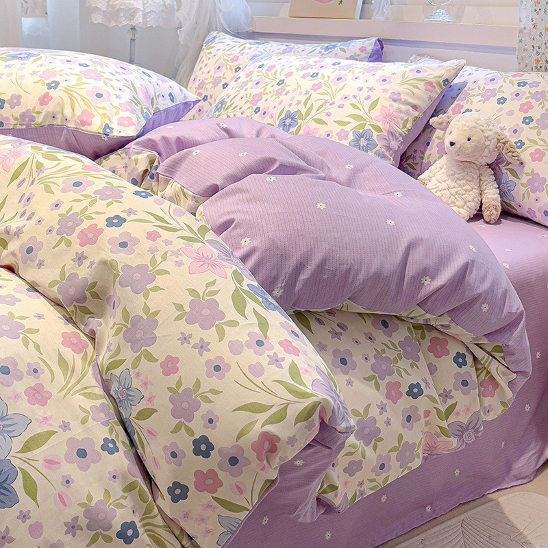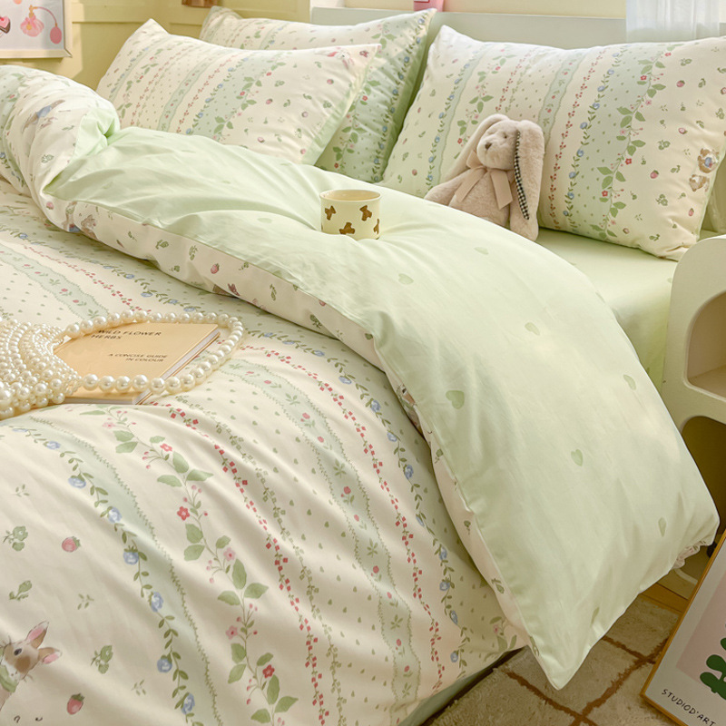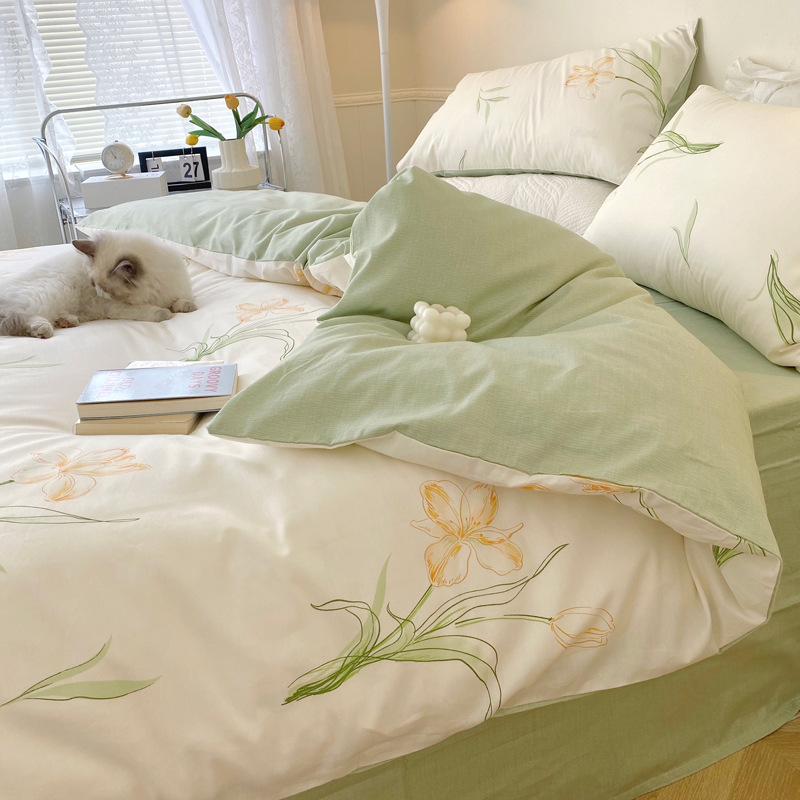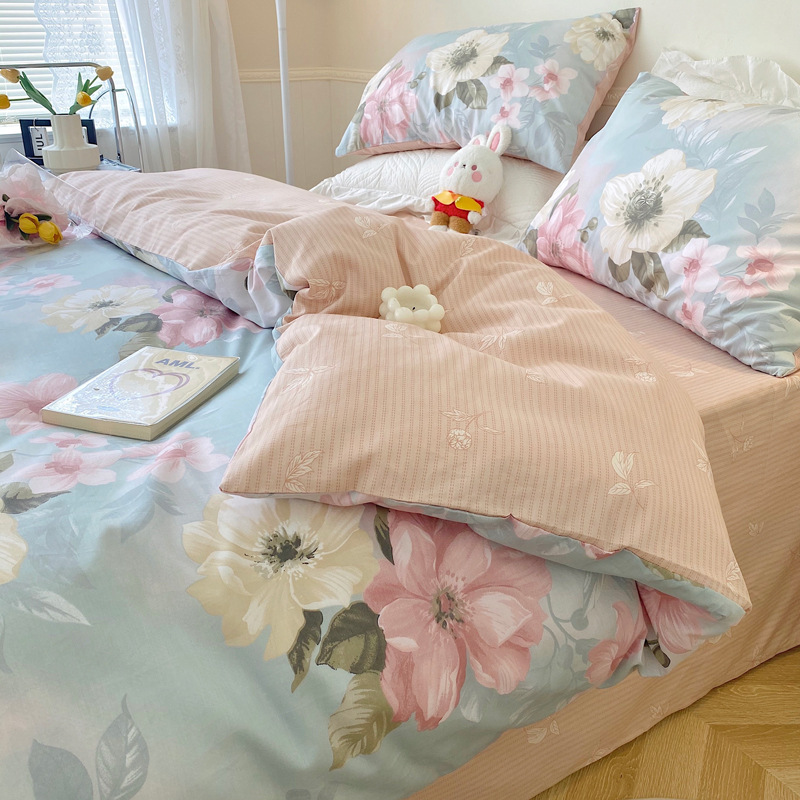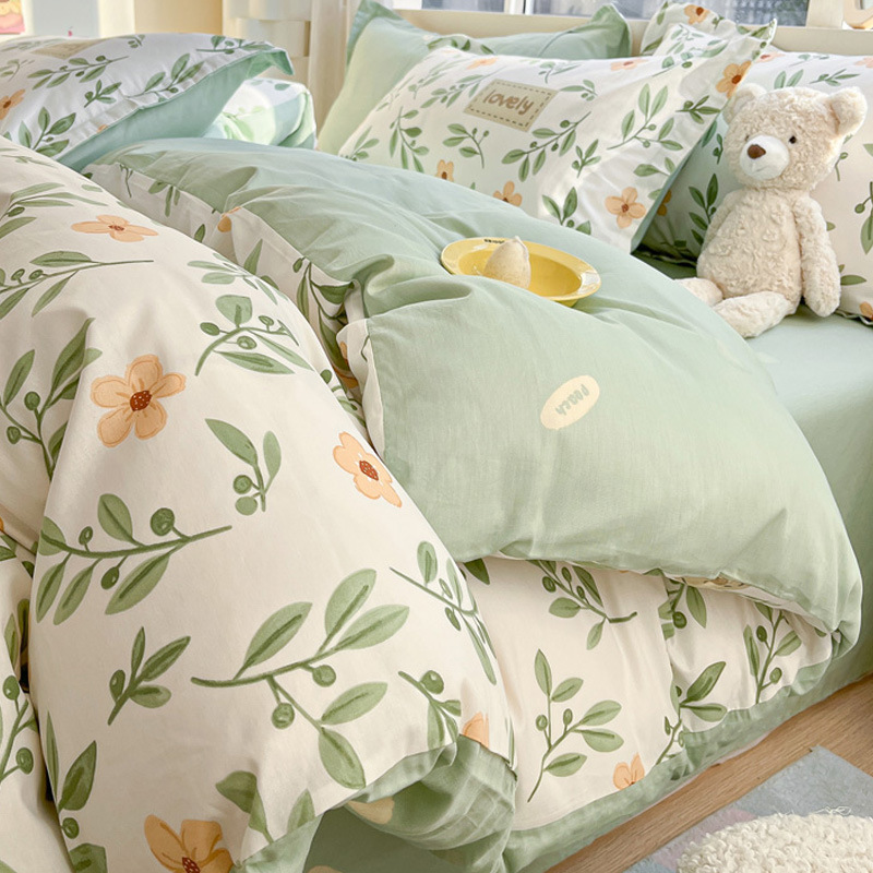 全棉100%纯棉床品四件套夏天被套床上用品宿舍床单三件套床笠罩款