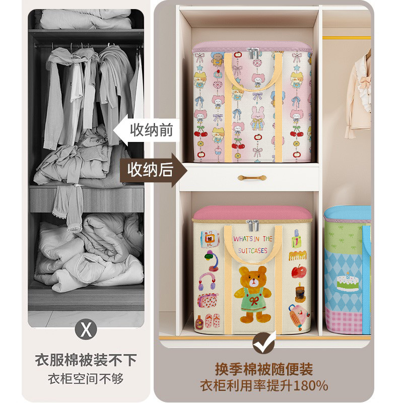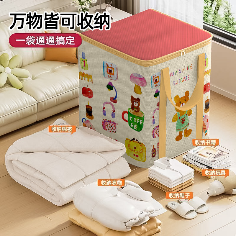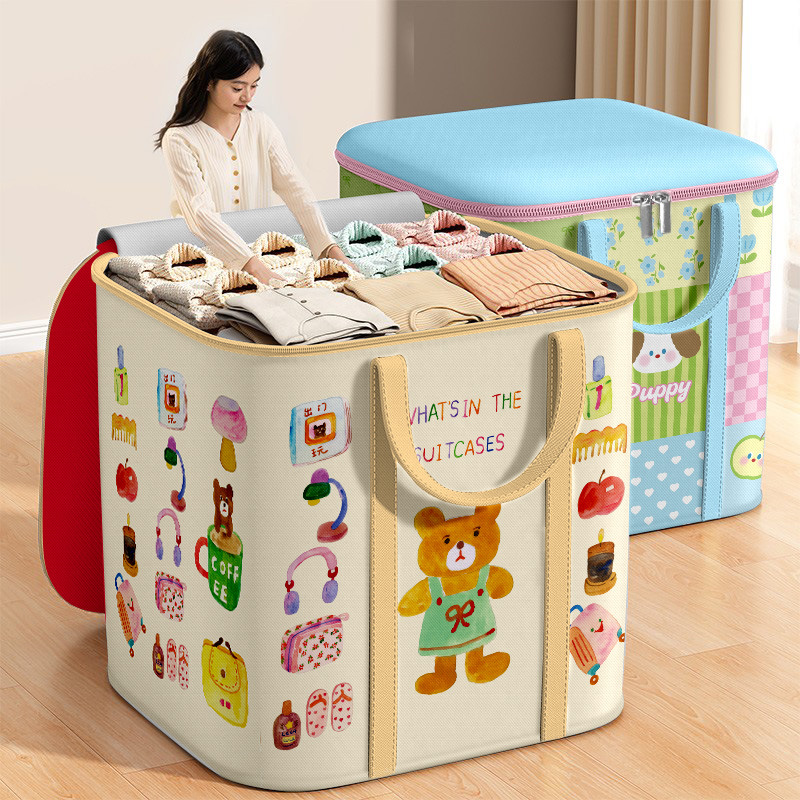 家用整理收纳袋卡通可爱印花拉链款牛津布打包袋大容量衣物被子收