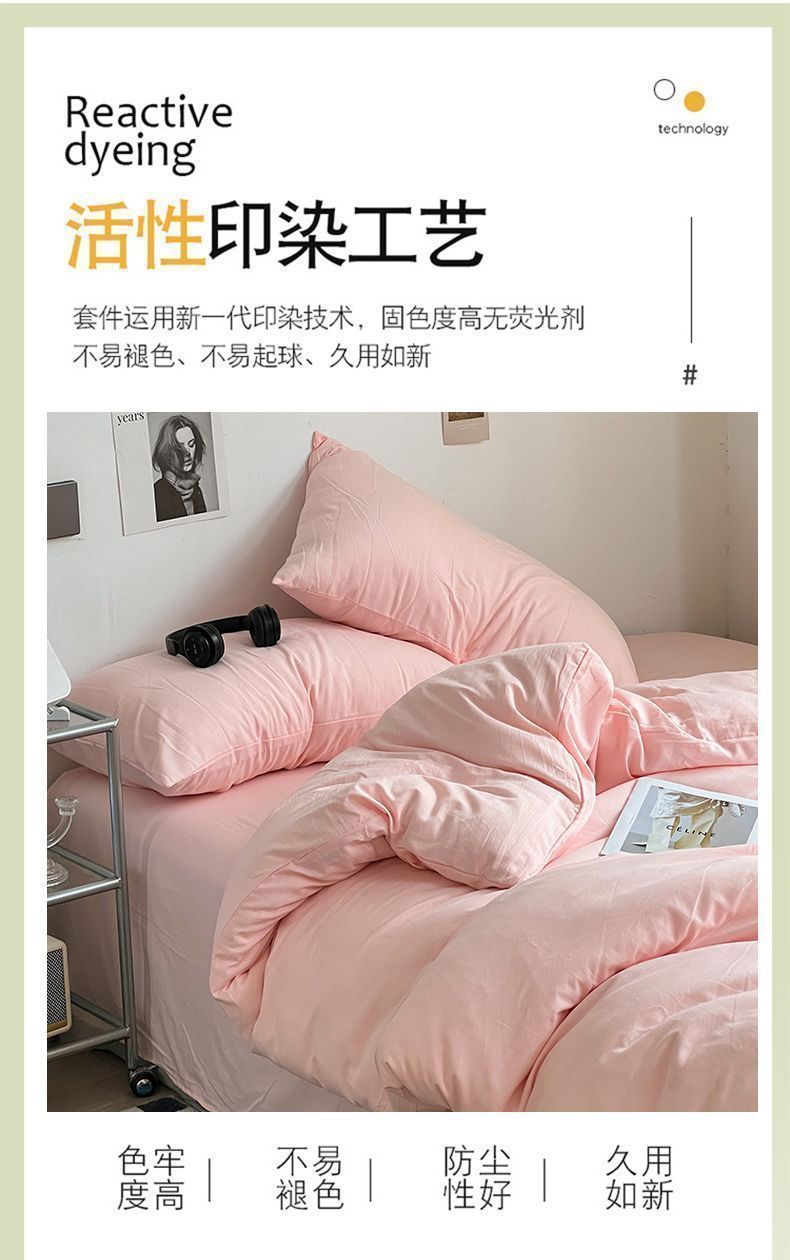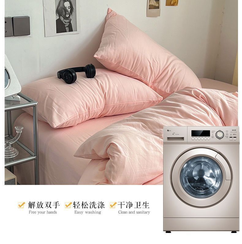 ins风新款素色床品四件套水洗棉裸睡纯色被套床单三件套床上塘鑫