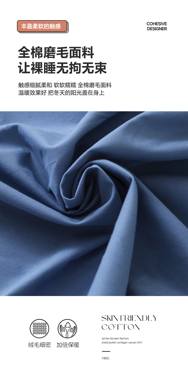 100全棉磨毛四件套纯棉床单被套轻奢秋冬床笠1.8m床上用品三件套