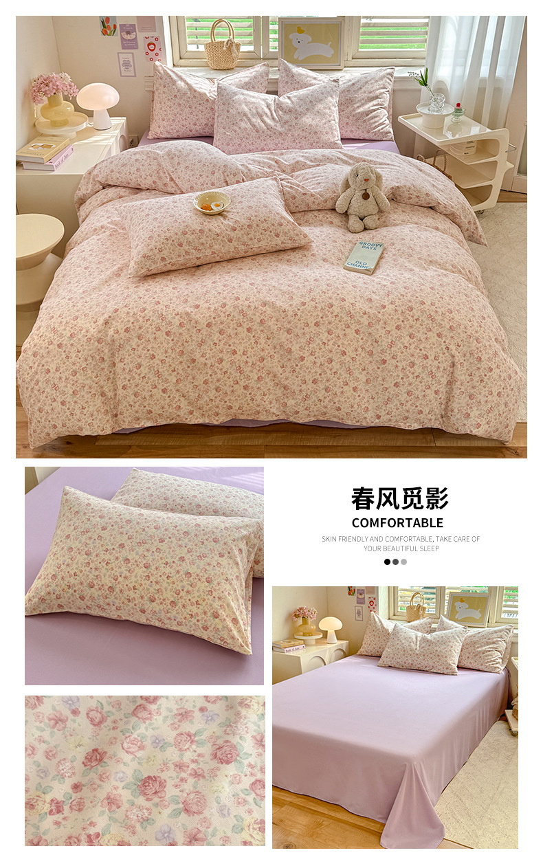 四件套床上用品床单被套水洗棉床笠被罩学生宿舍单人床三件套
