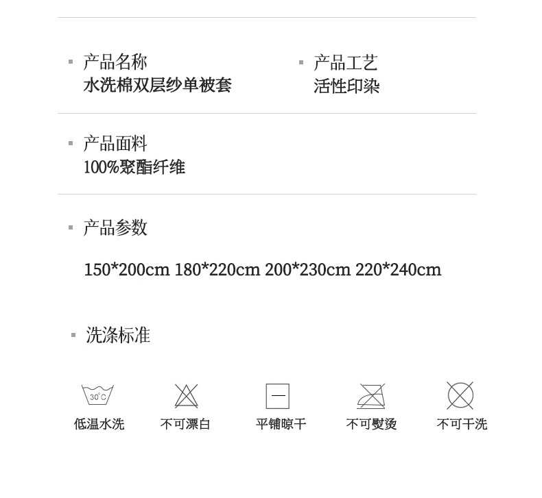 | 2.2*2.4 single duvet cover + pillowcase pair(2.2*2.4单被套 +枕套一对) | USD $12.2 | 500 set available |