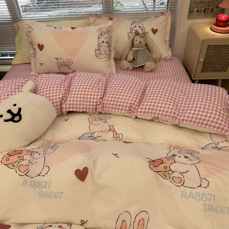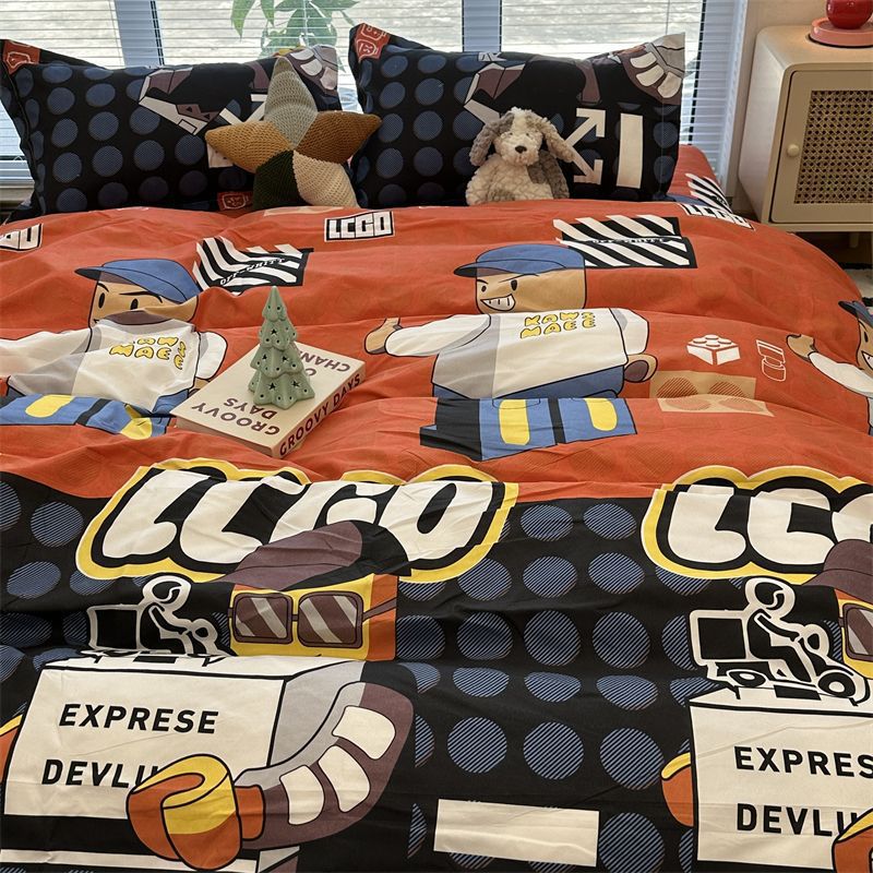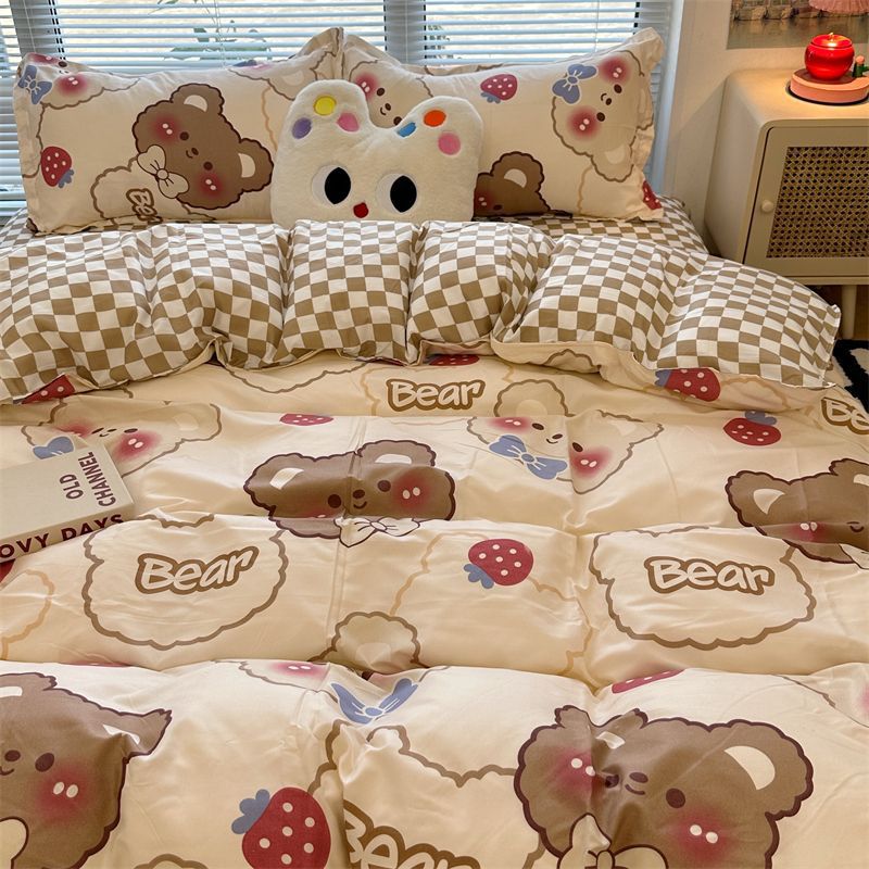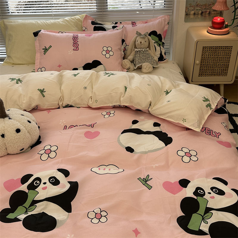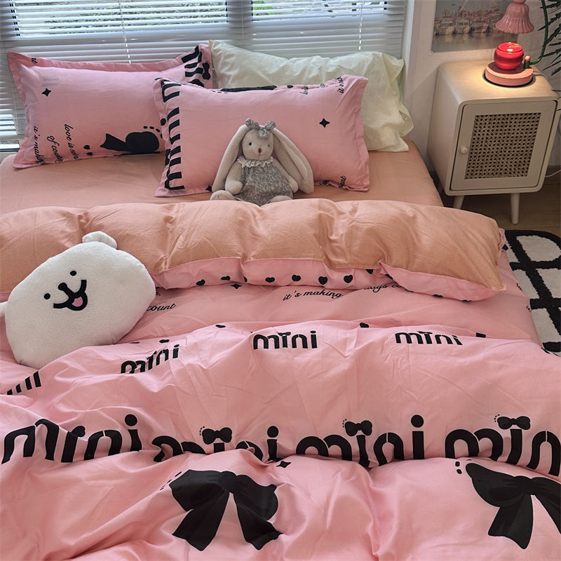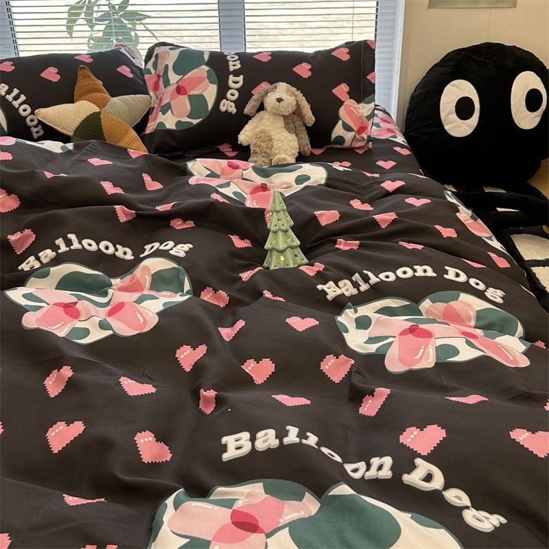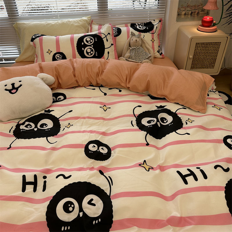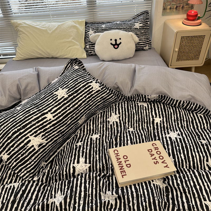 K15时尚潮流水墨画水洗棉四件套单双人被套床单学生宿舍被单三件