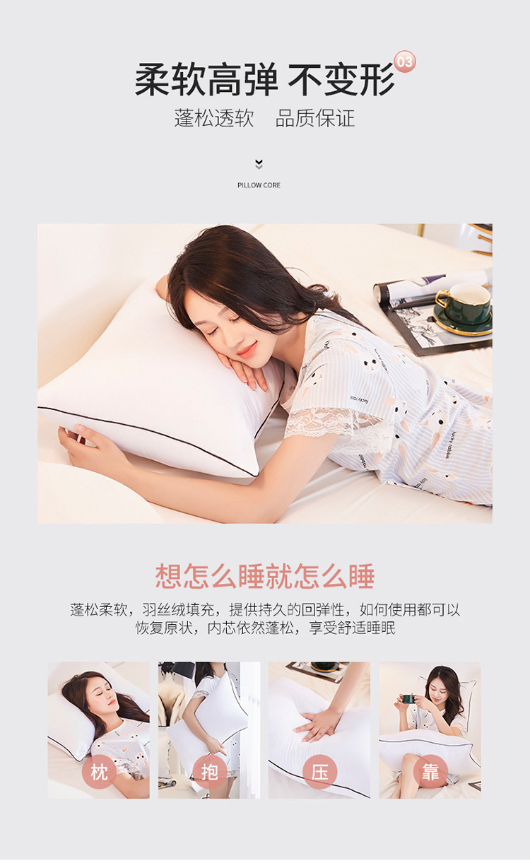 厂家直销批发民宿酒店枕头护颈羽丝枕单人学生枕芯家用不塌陷枕头