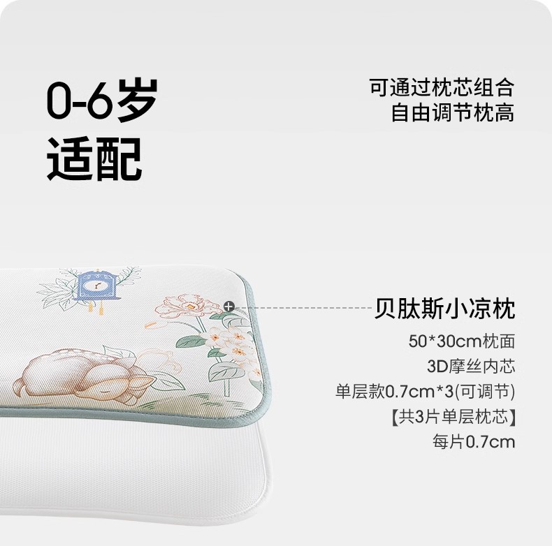 贝肽斯婴儿枕头夏季透气宝宝冰丝凉枕新生0到6个月以上儿童云片枕