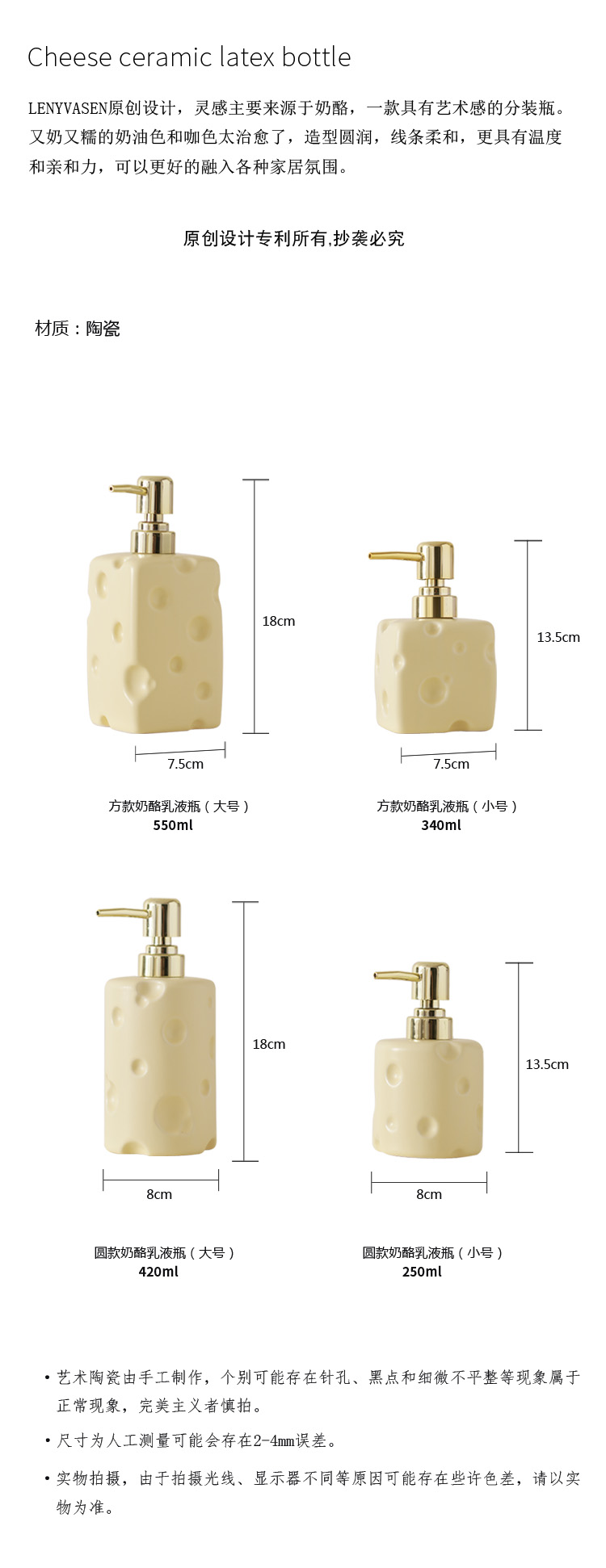 奶酪陶瓷乳液瓶分装瓶子洗发水洗手液大容量按压空