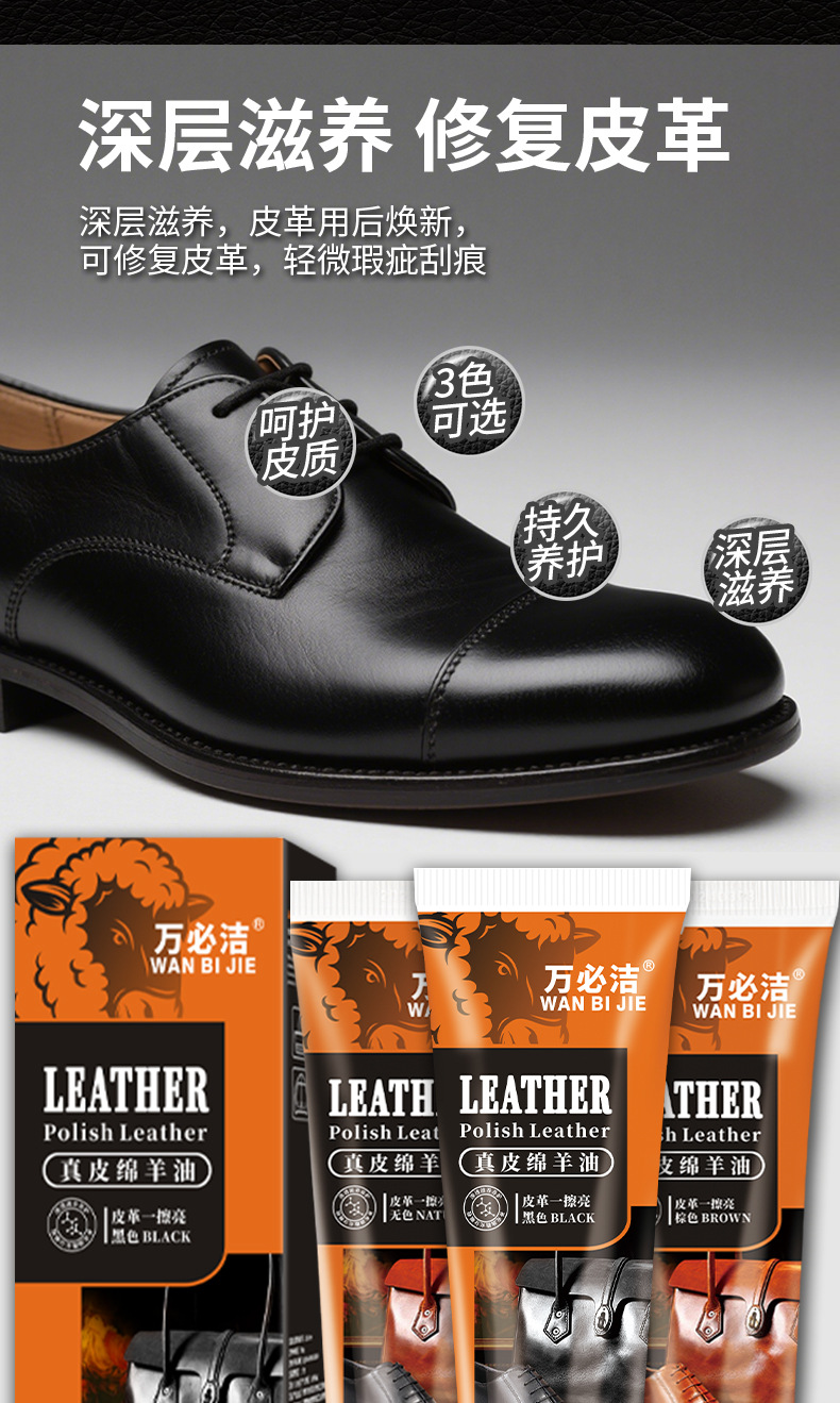 万必洁真皮绵羊油滋养膏皮革保养皮鞋一擦亮黑无棕色鞋油厂家批发
