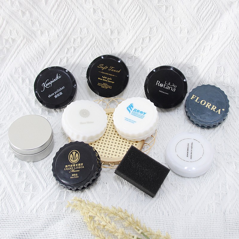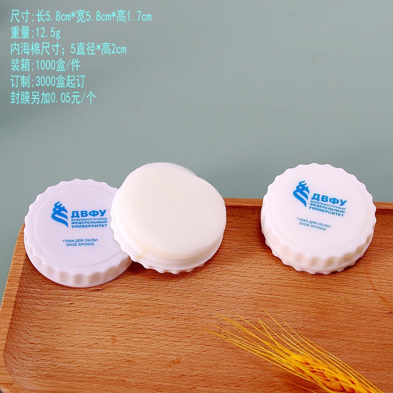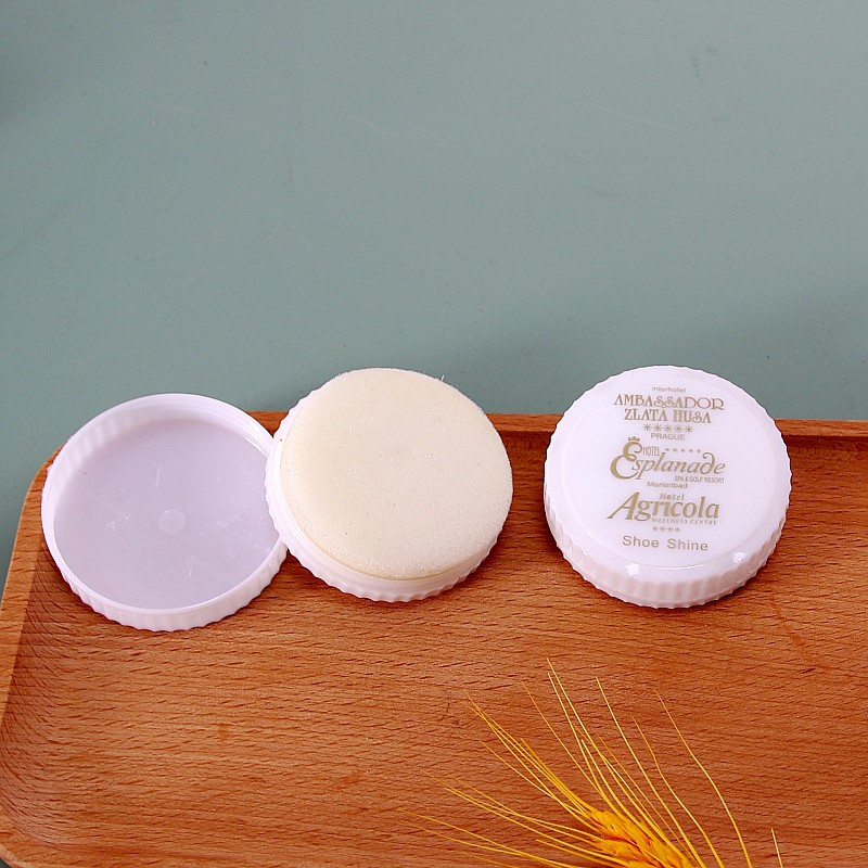 麦秸秆圆形擦鞋器一次性出口酒店宾馆海绵塑料鞋油盒腰型圆型擦鞋