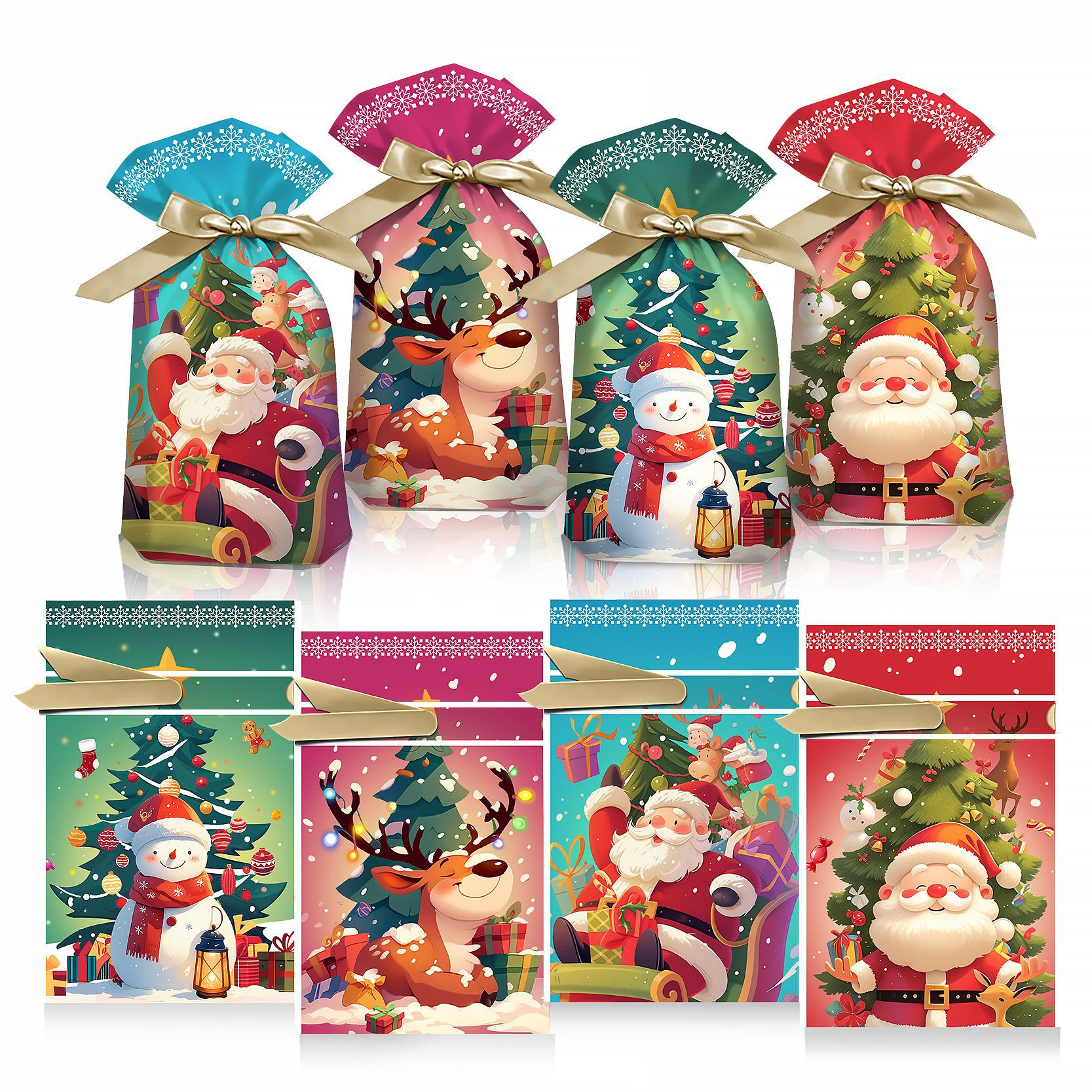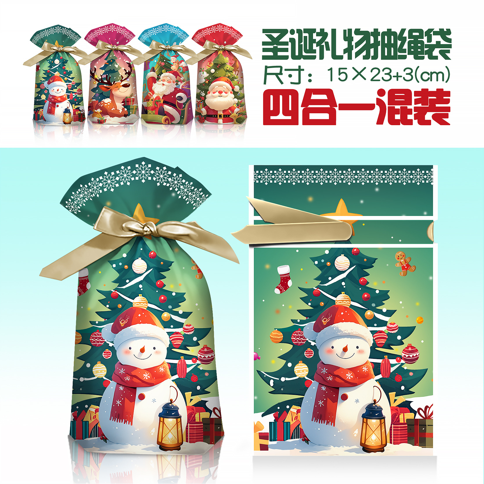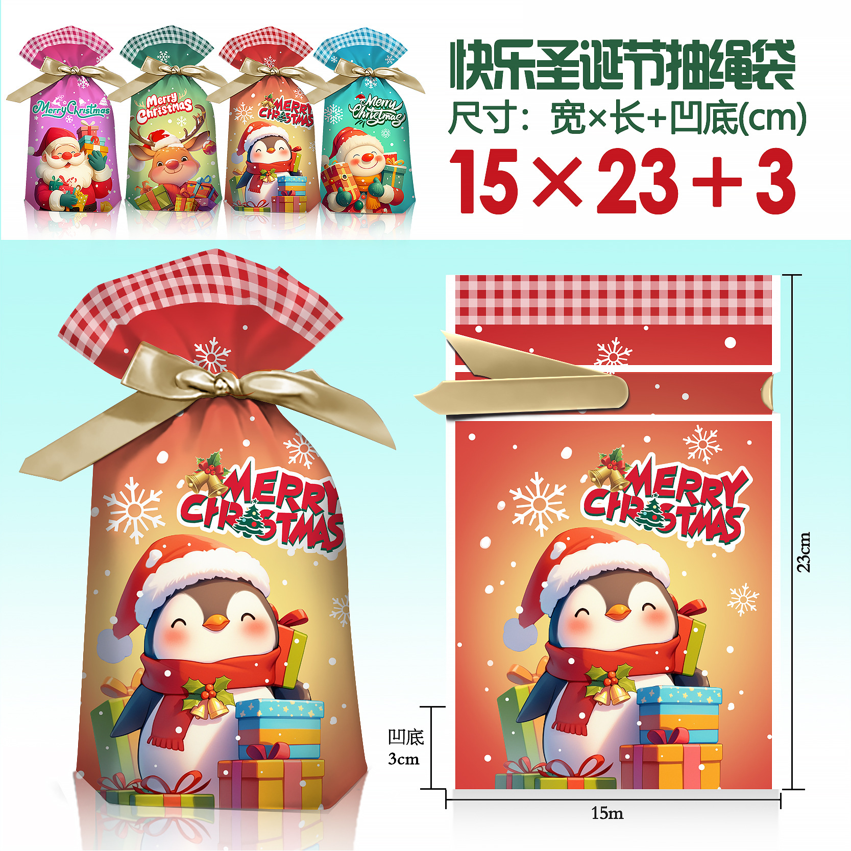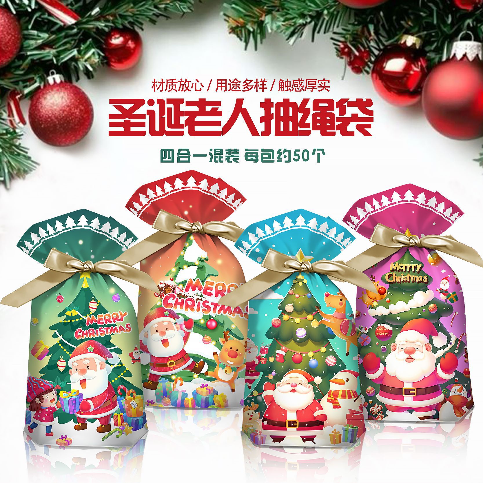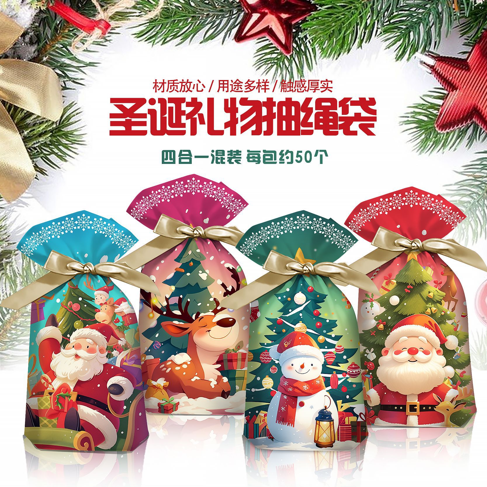 2025新款圣诞节糖果袋丝带束口抽绳袋烘焙饼干零食礼品包装袋50个