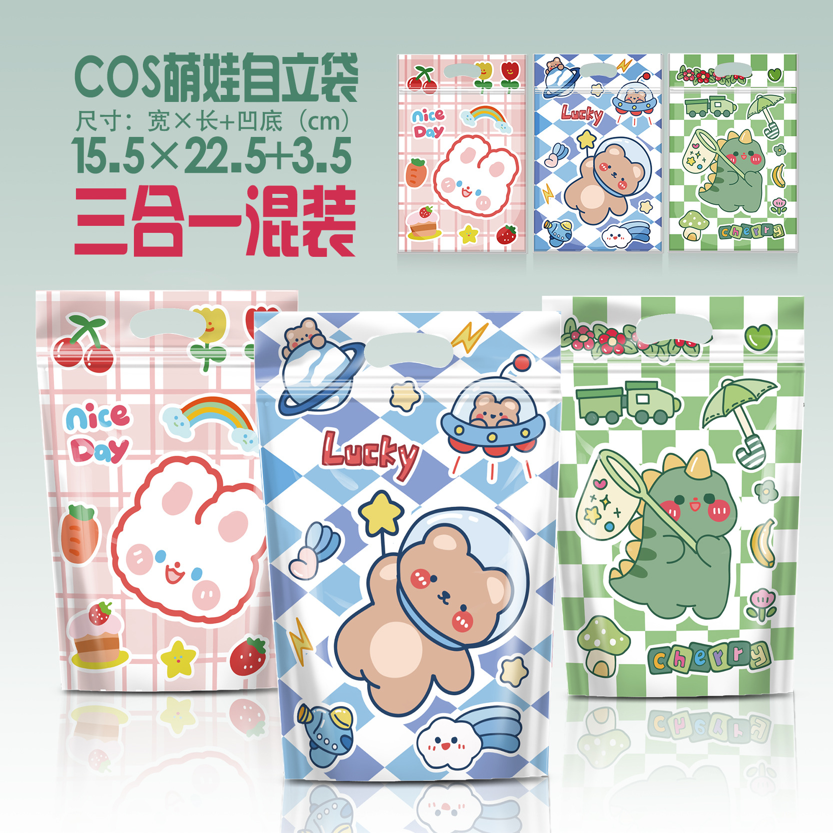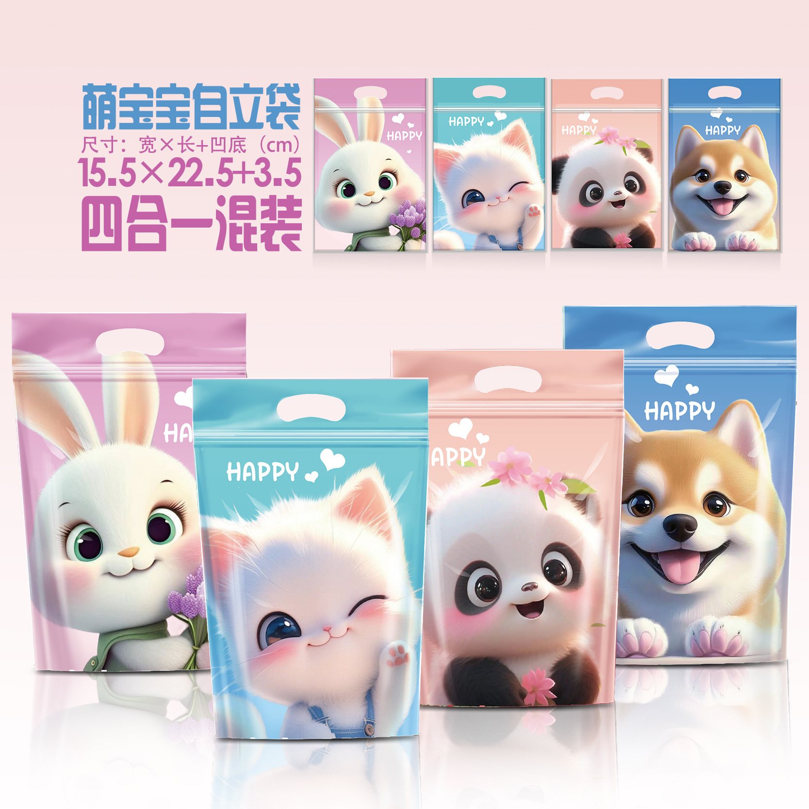 雪花酥包装袋卡通自封袋饼干食品自立袋糖果袋拉链封口密封袋批发