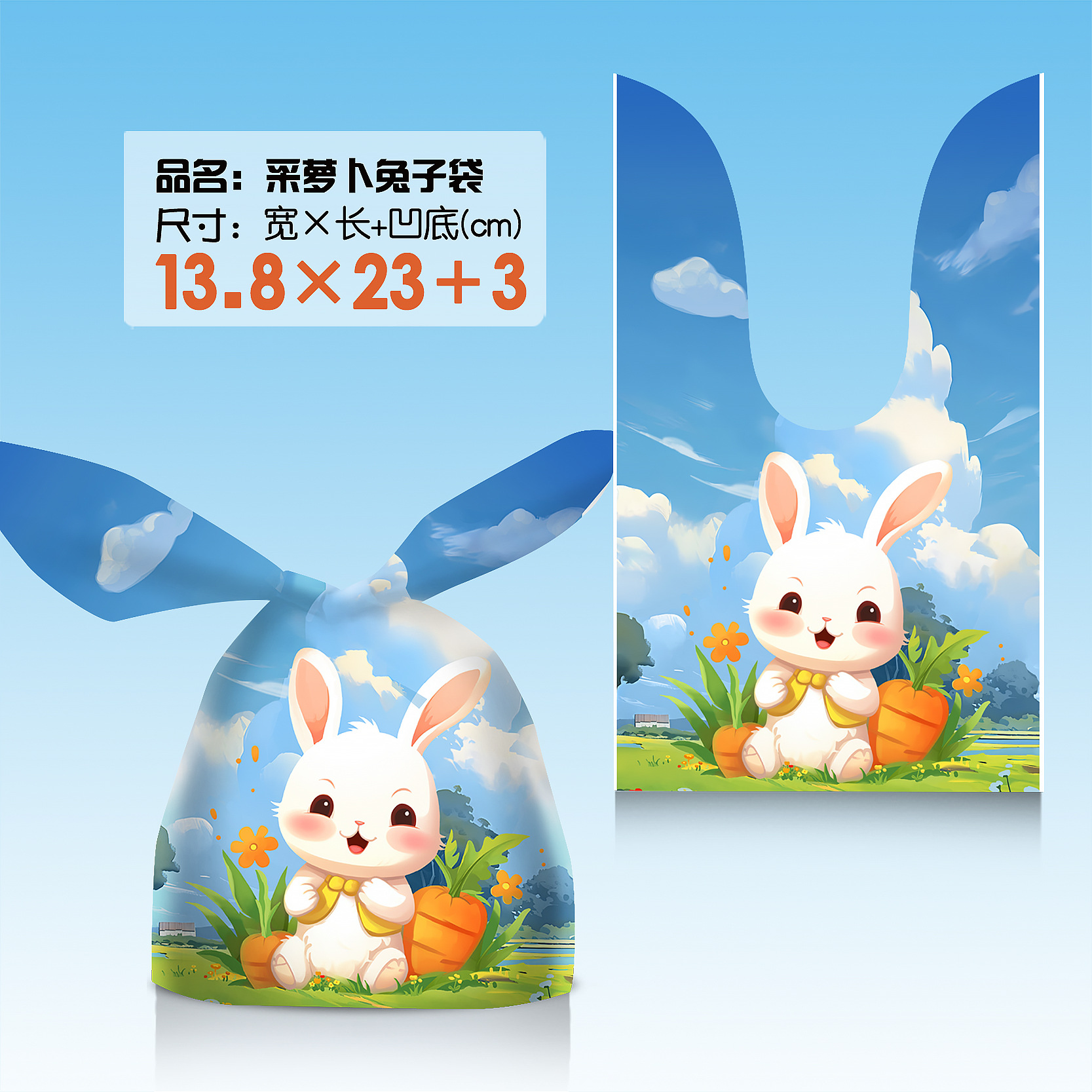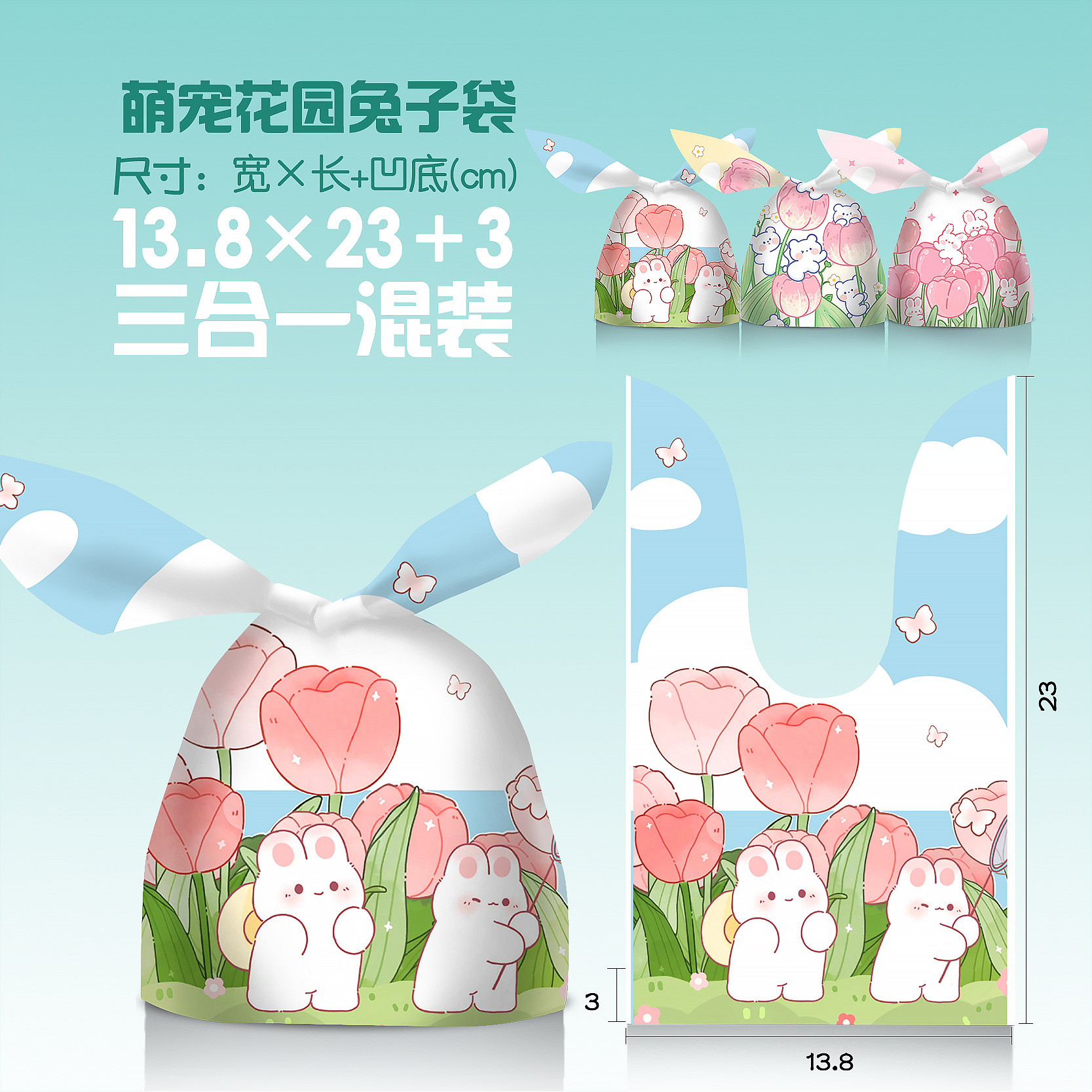 卡通兔耳朵糖果袋 雪花酥饼干零食包装袋节日庆祝礼品袋厂家批发