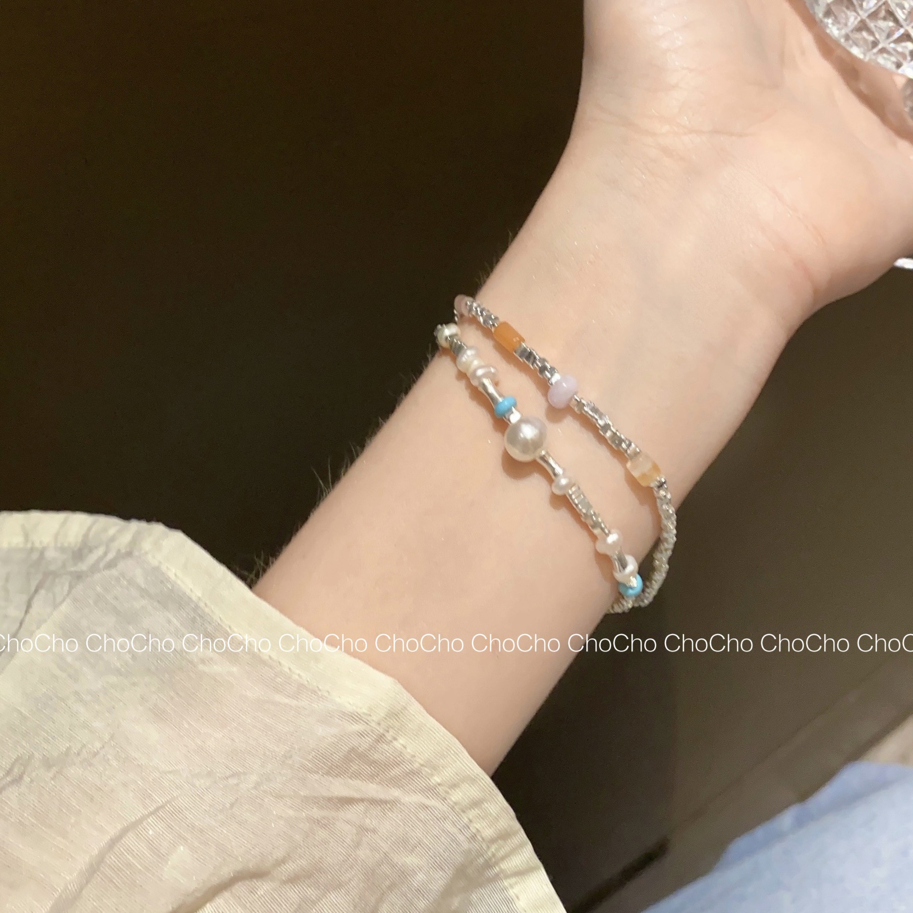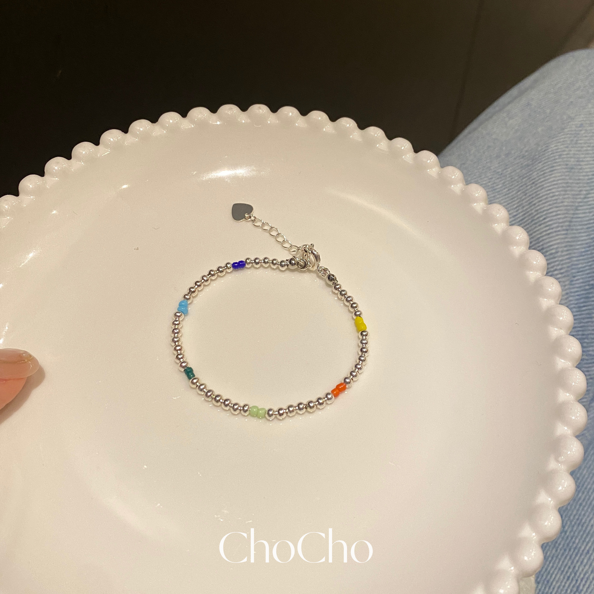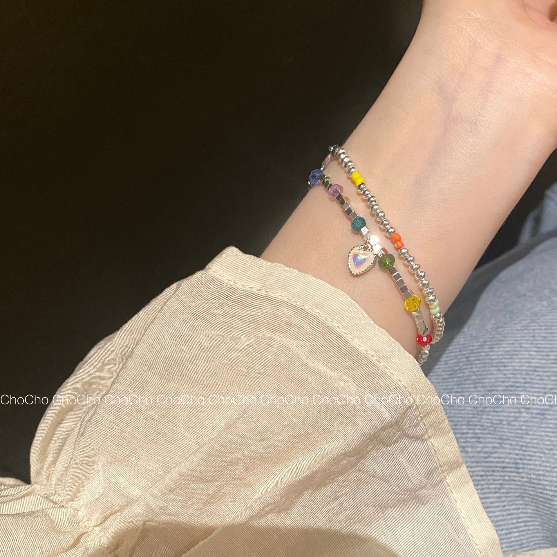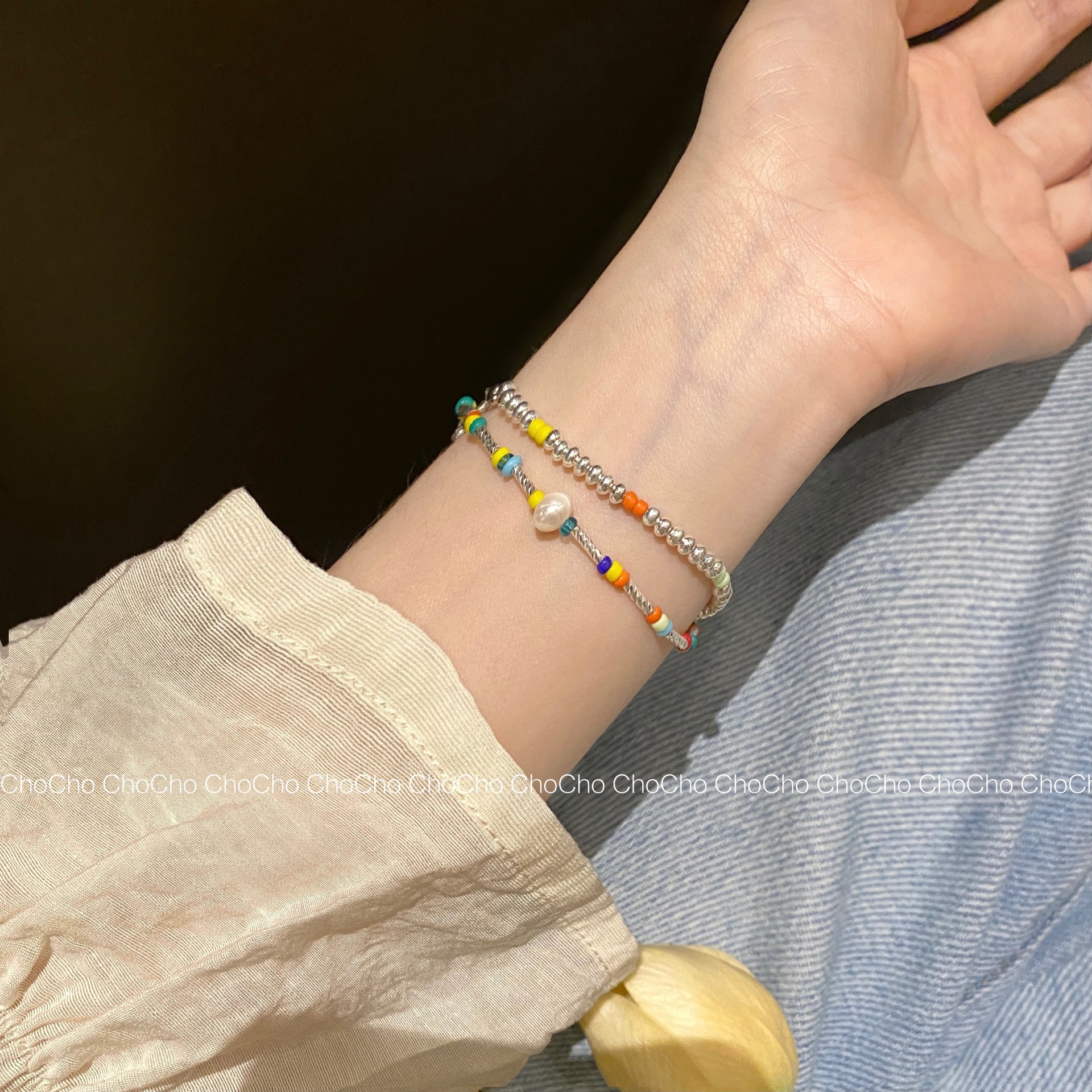 多巴胺女孩彩色碎银串珠手链女款小众设计感夏季时尚百搭手饰手链