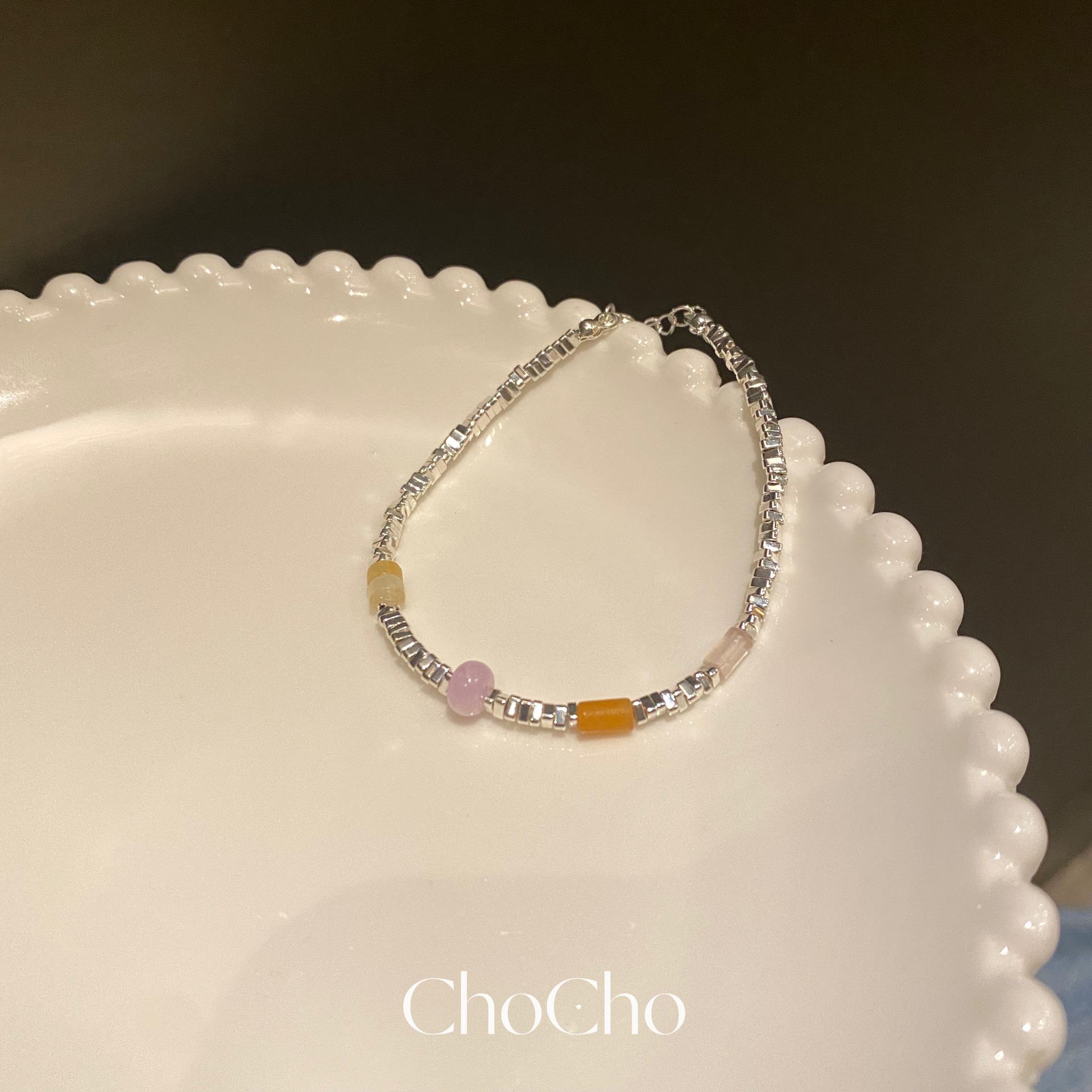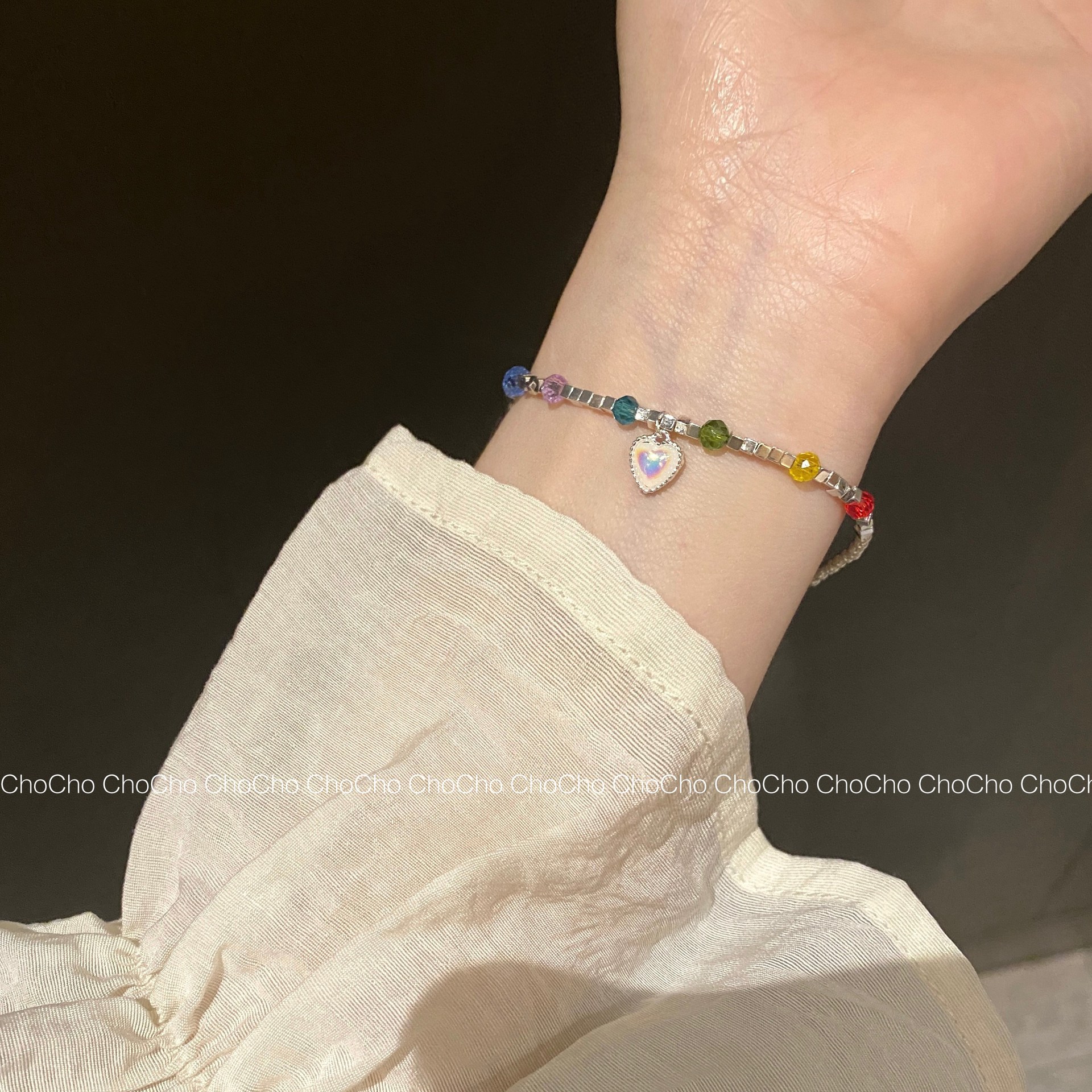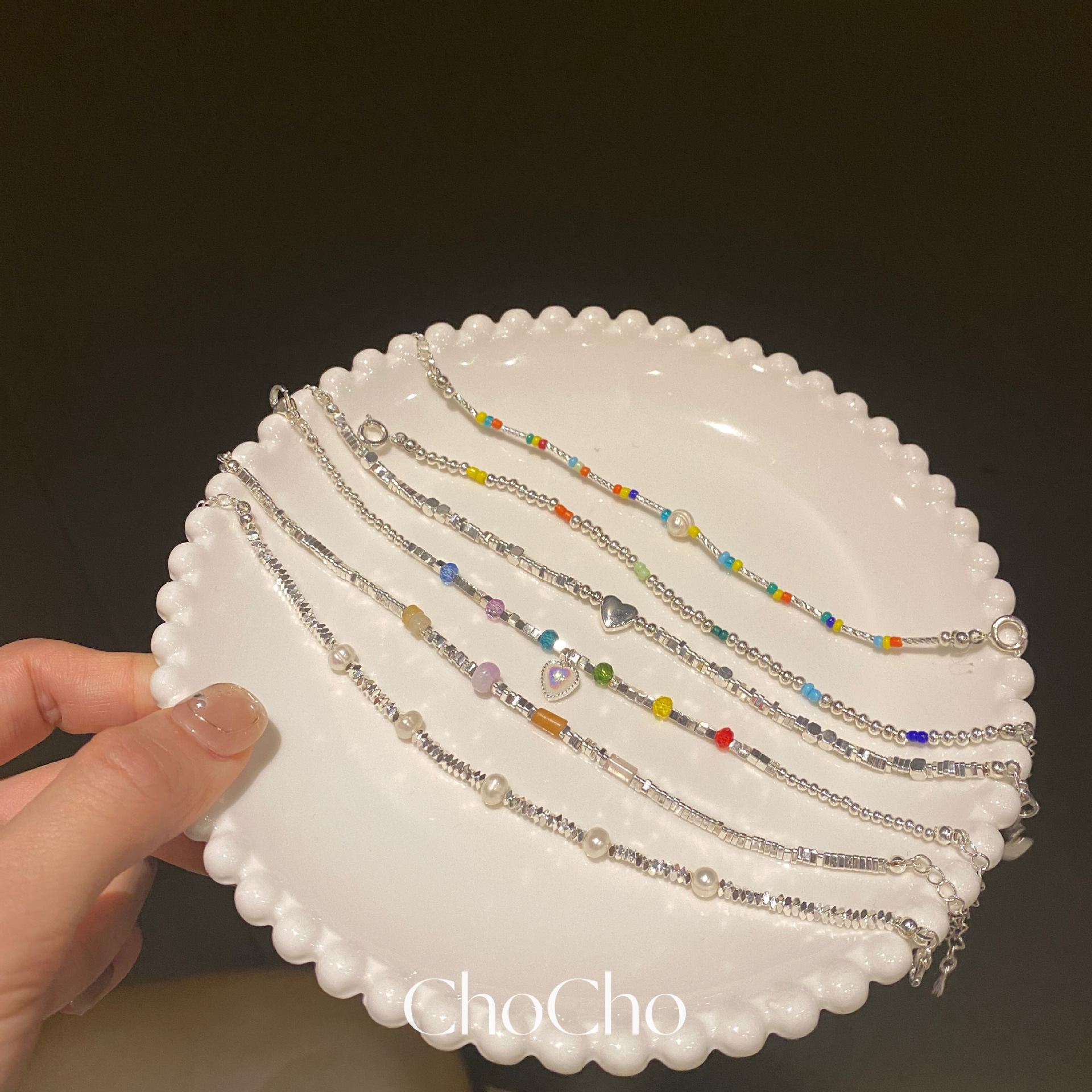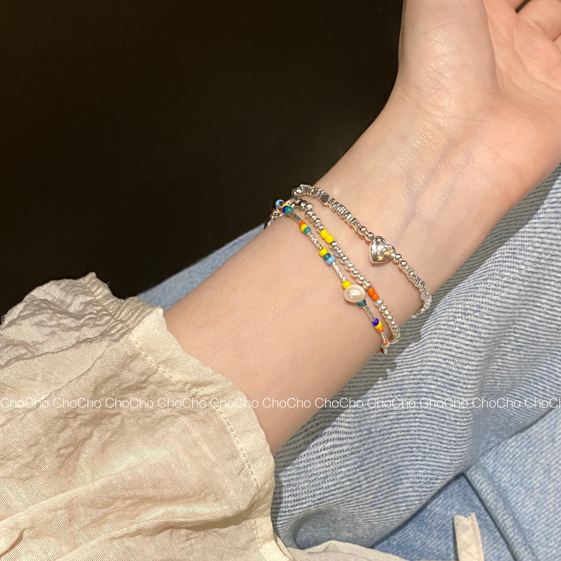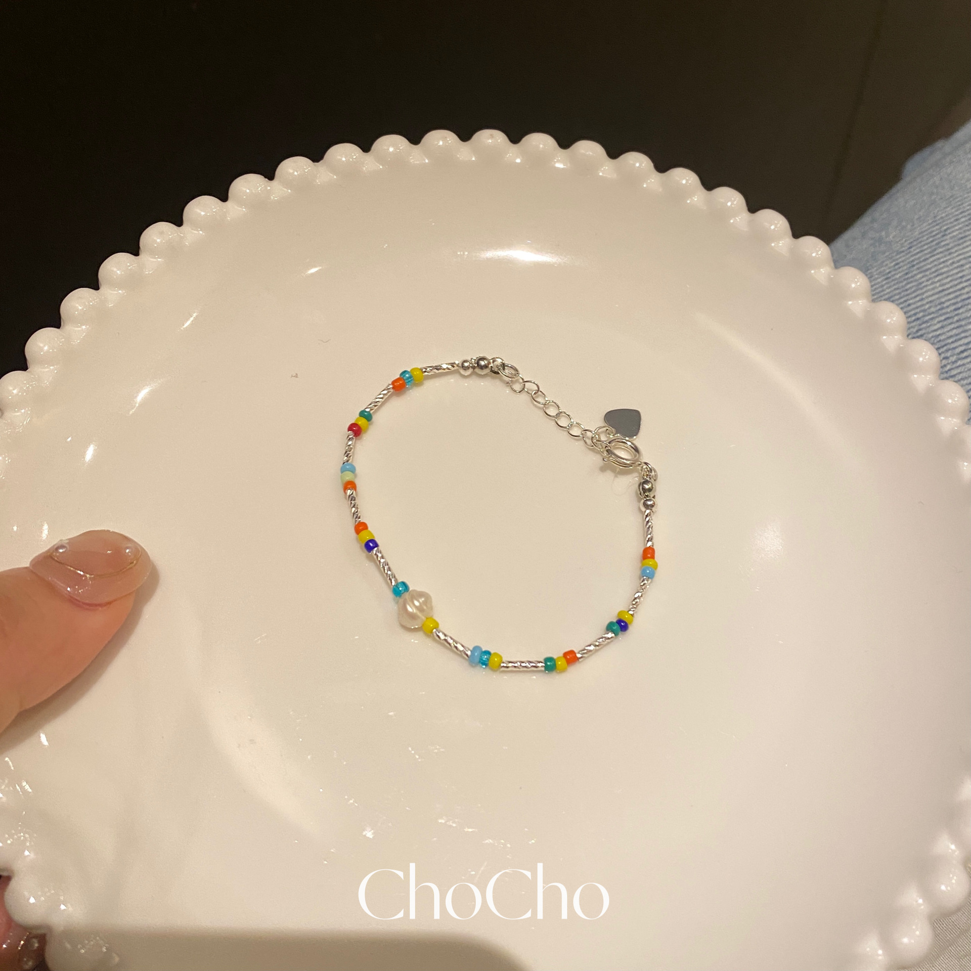 多巴胺女孩彩色碎银串珠手链女款小众设计感夏季时尚百搭手饰手链