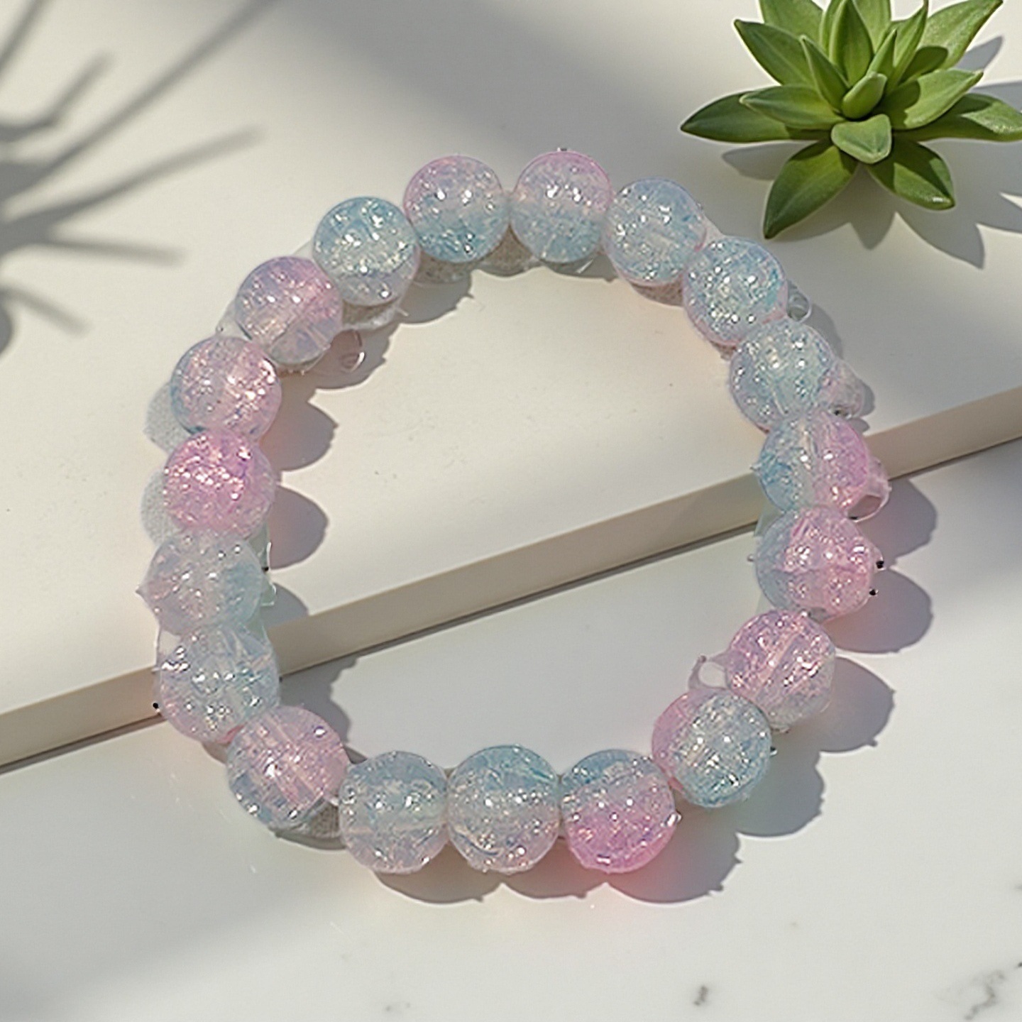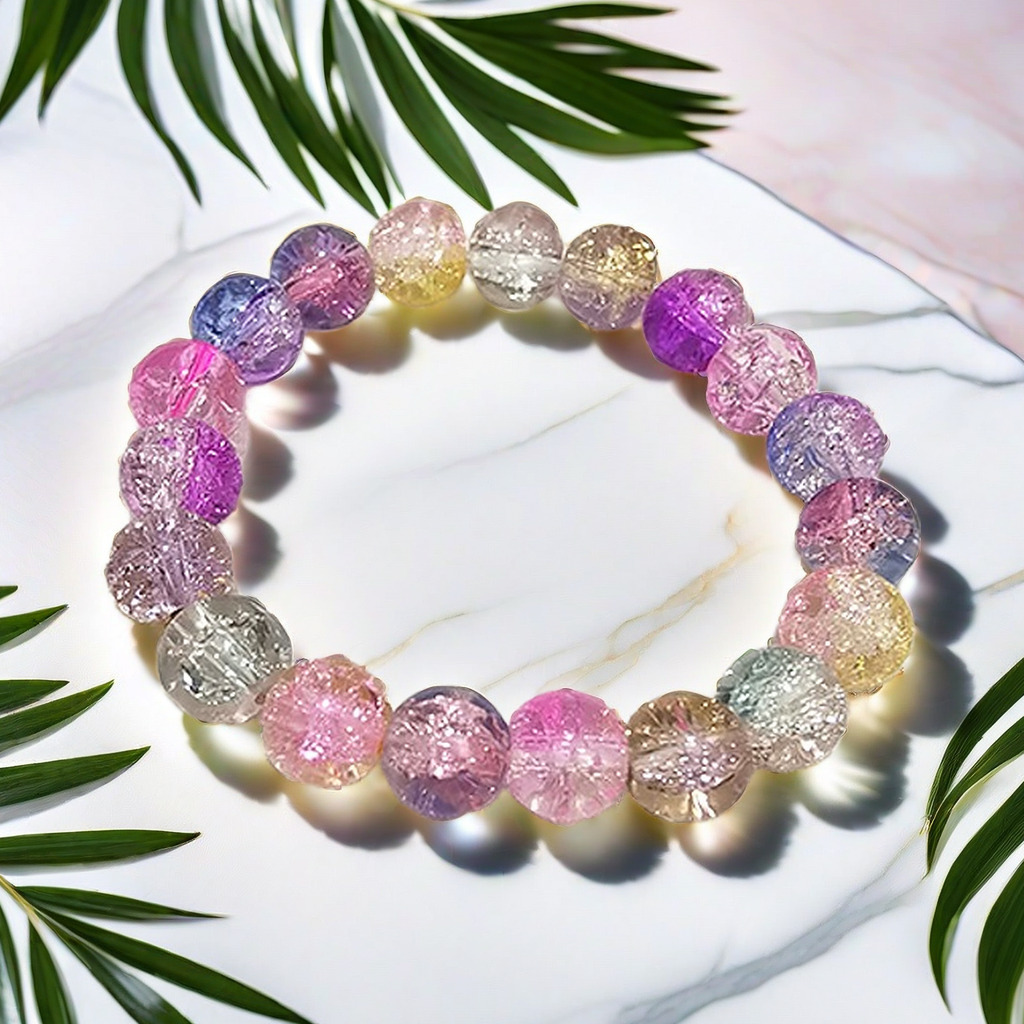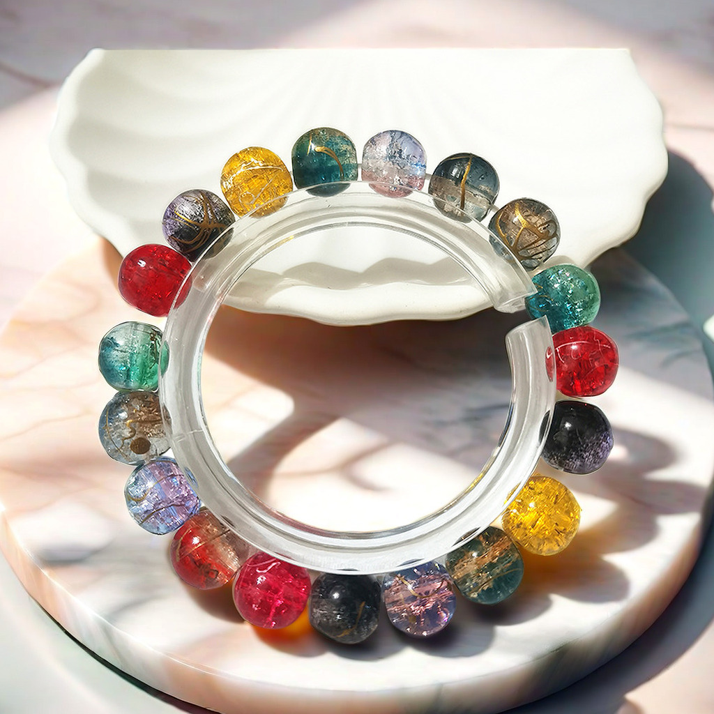 夏日特惠冰裂纹双色碎花珠琉璃手链女轻奢绕指柔串珠学生盘玩手串