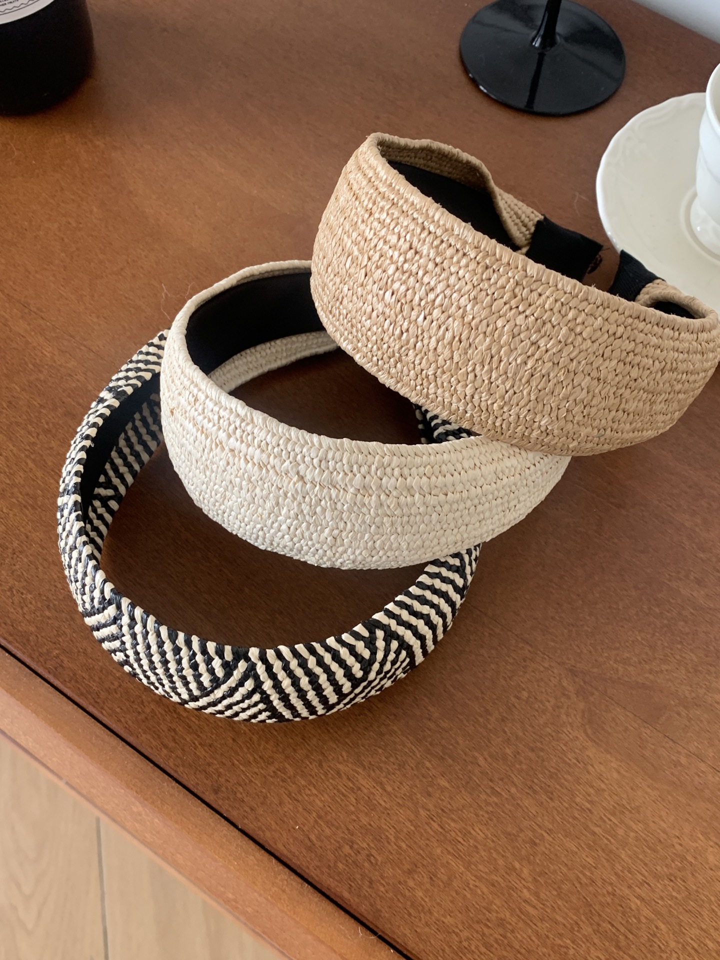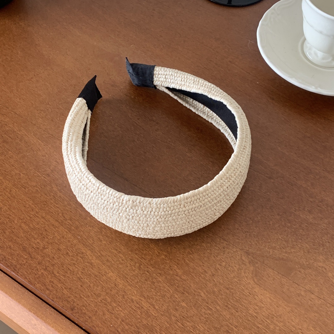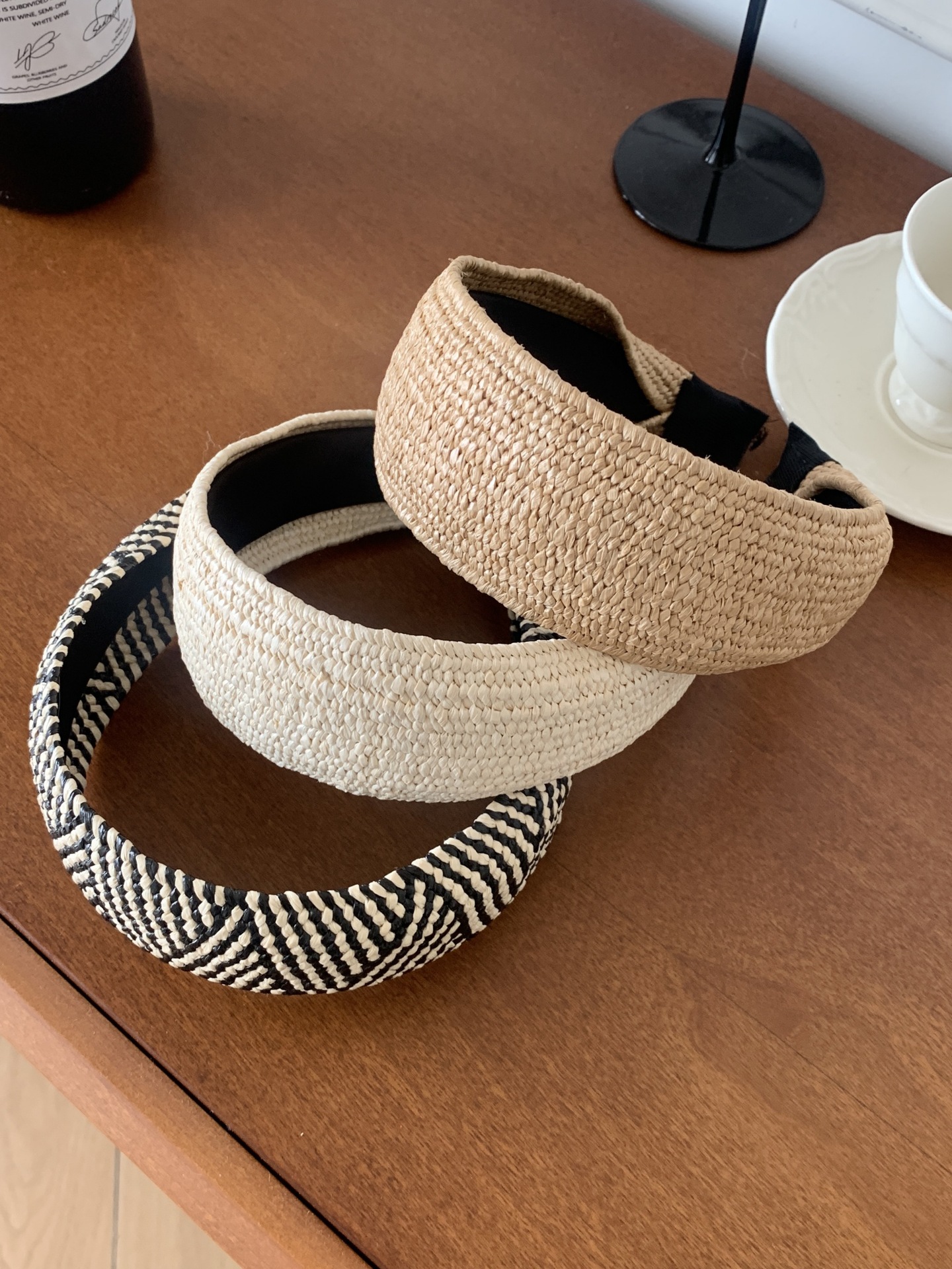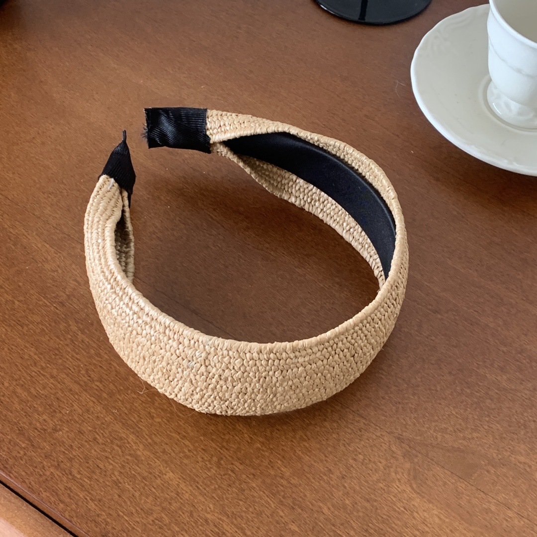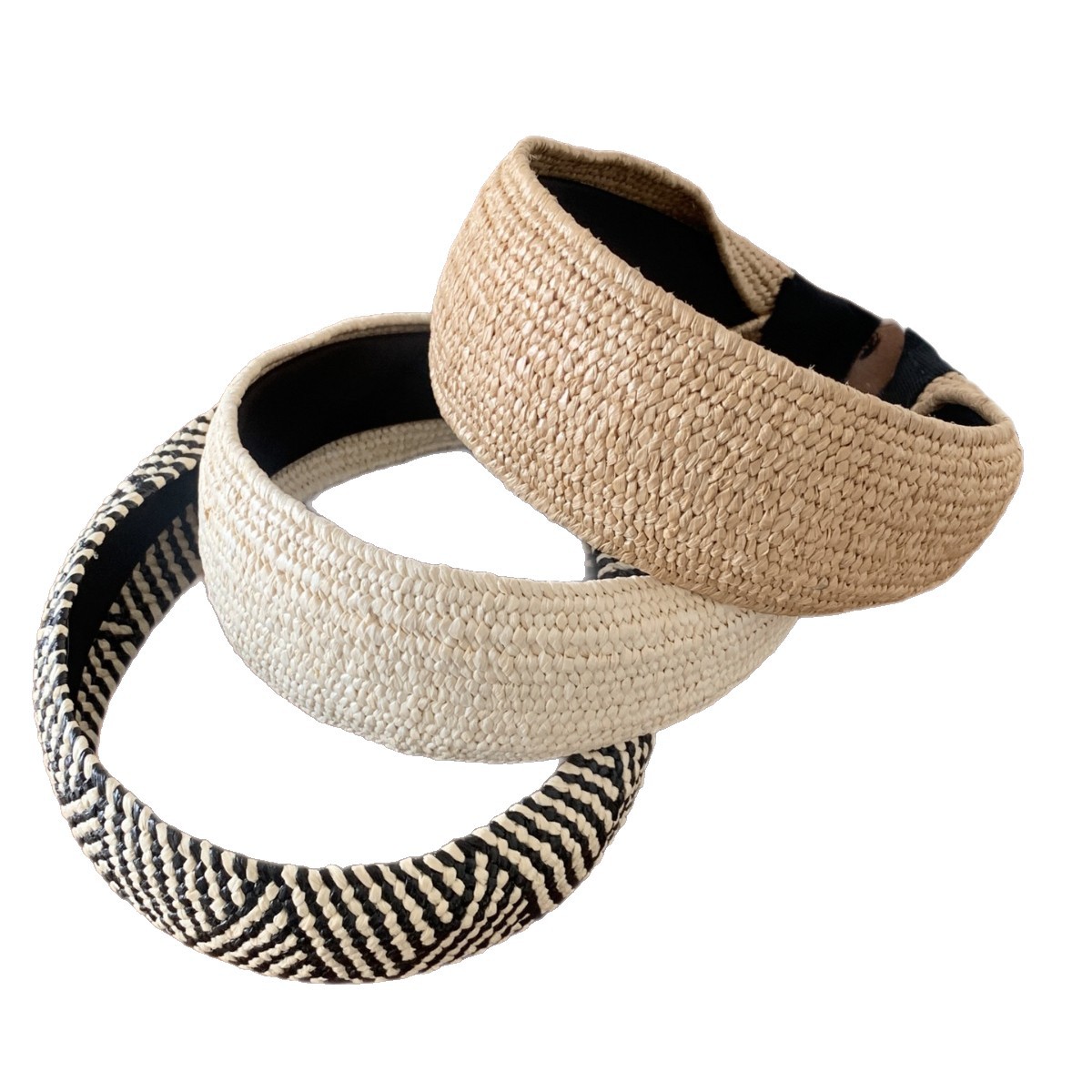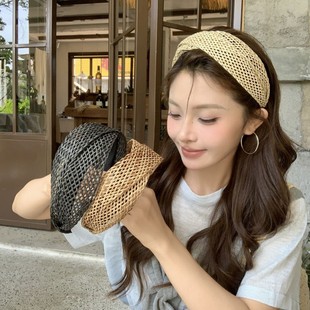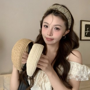 夏季百搭拉菲草编织发箍宽边时尚度假风藤艺光板外出头箍网红发饰