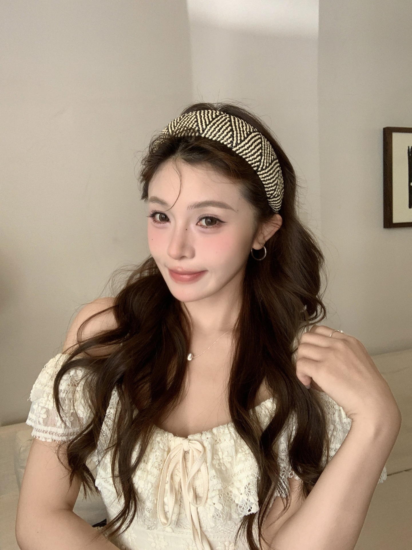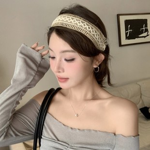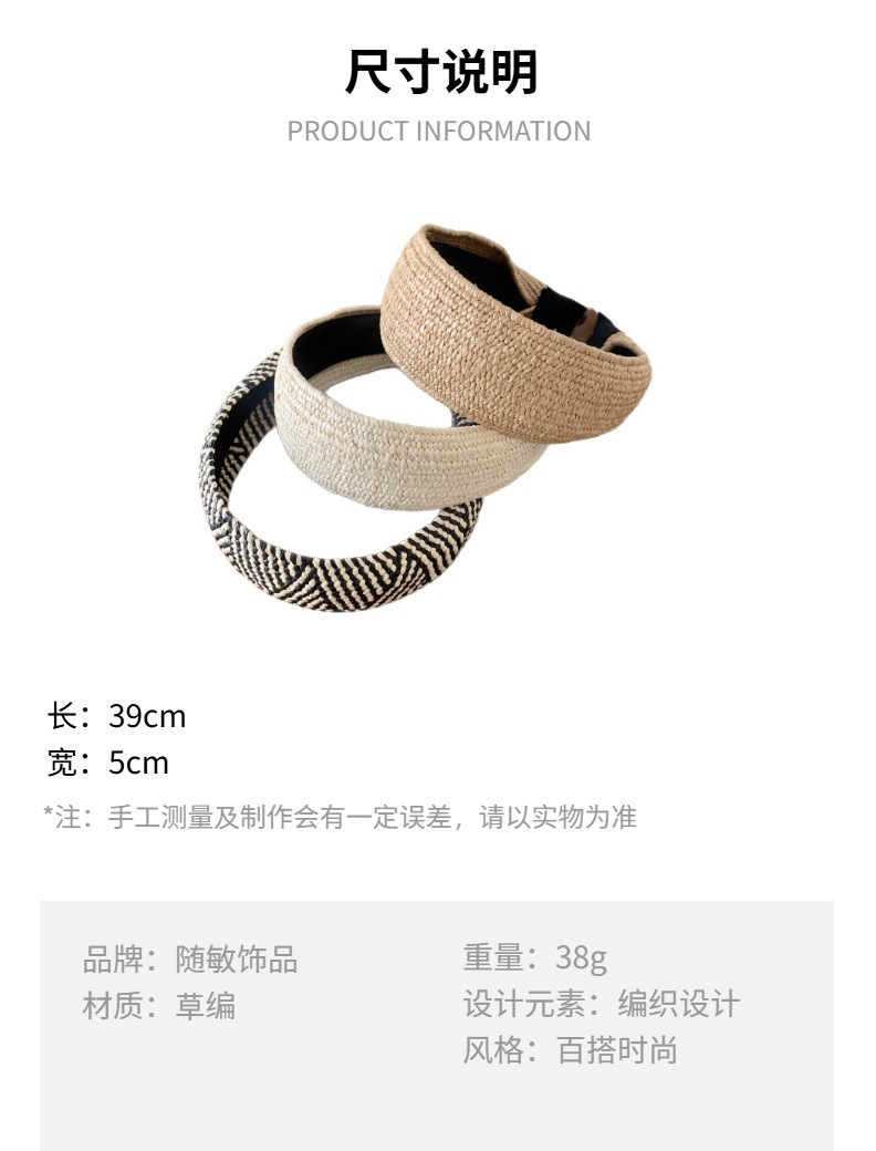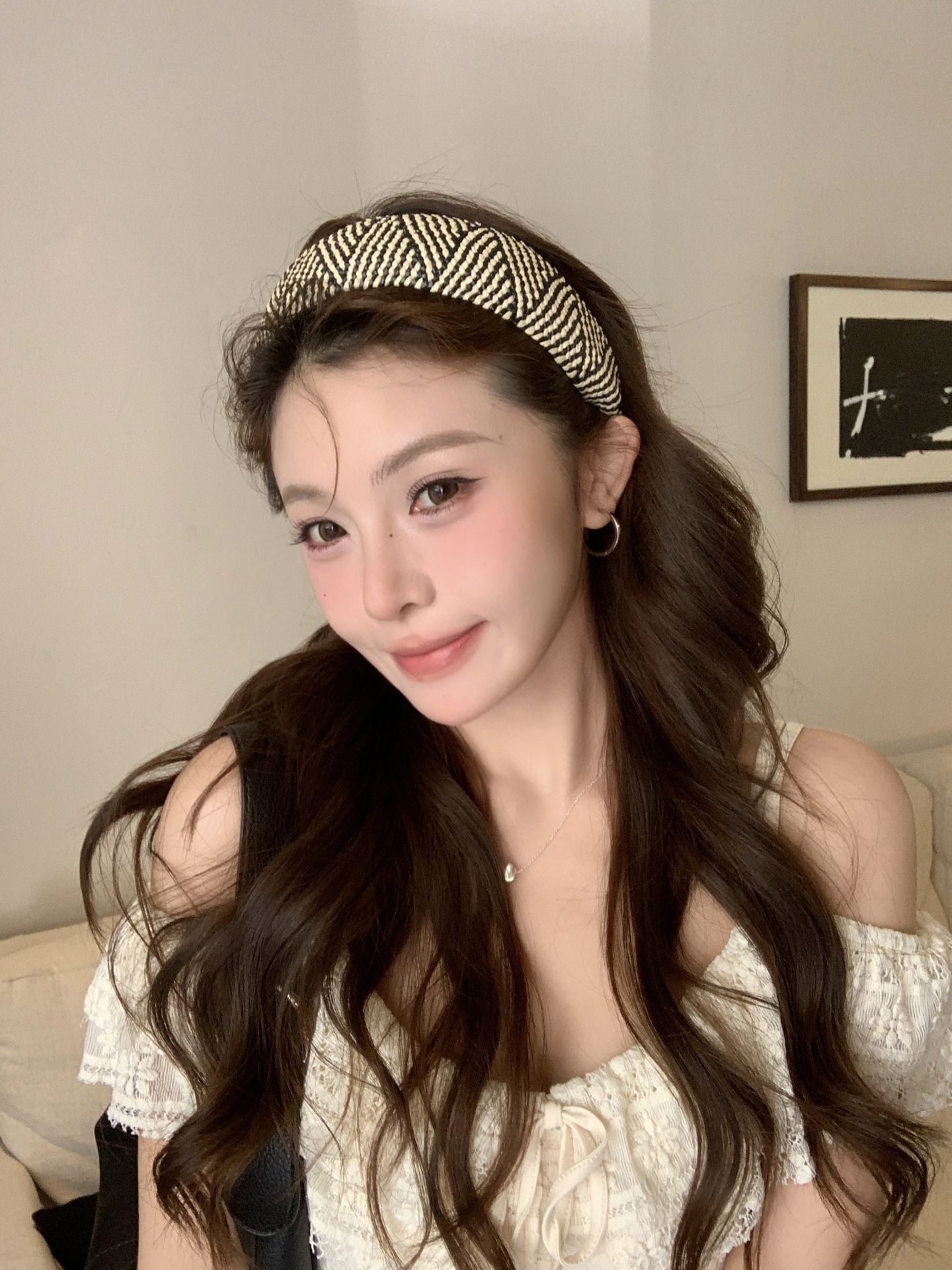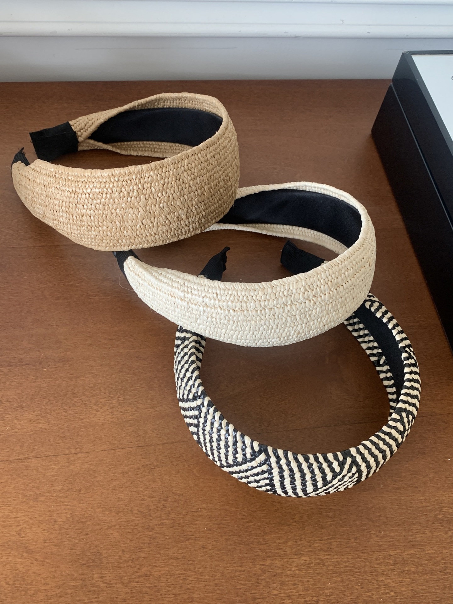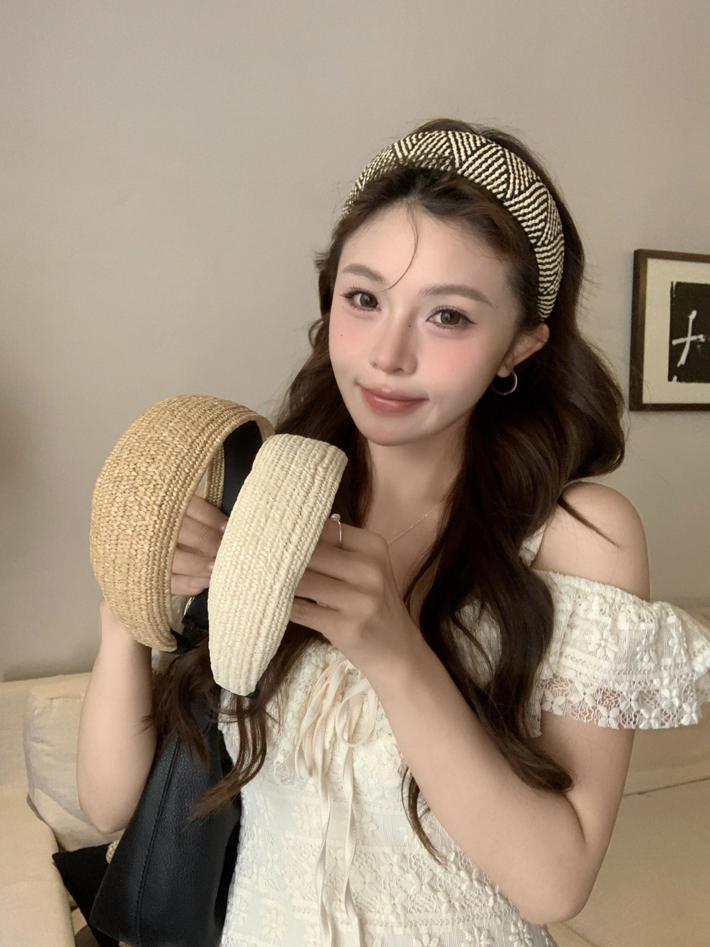 夏季百搭拉菲草编织发箍宽边时尚度假风藤艺光板外出头箍网红发饰