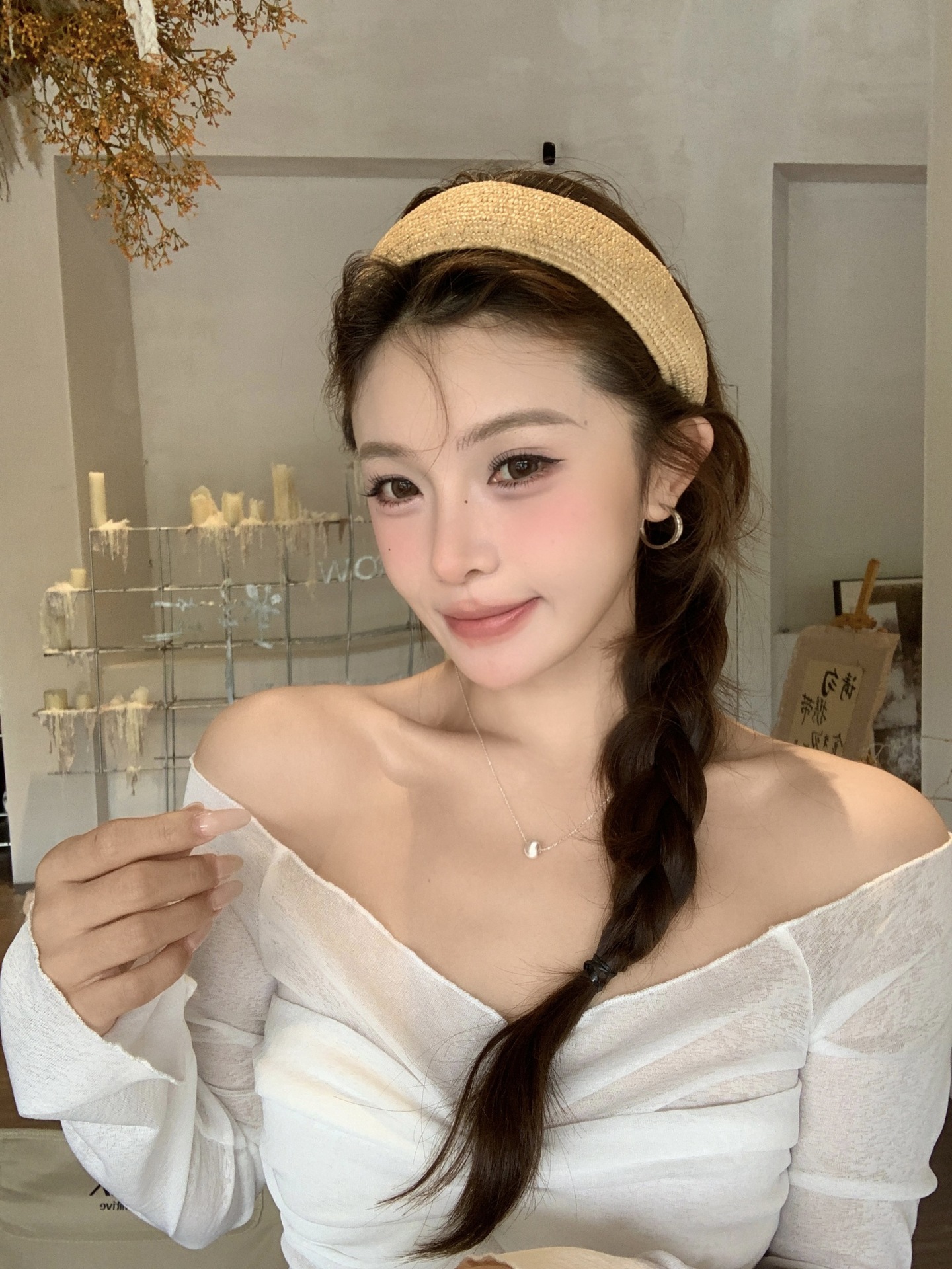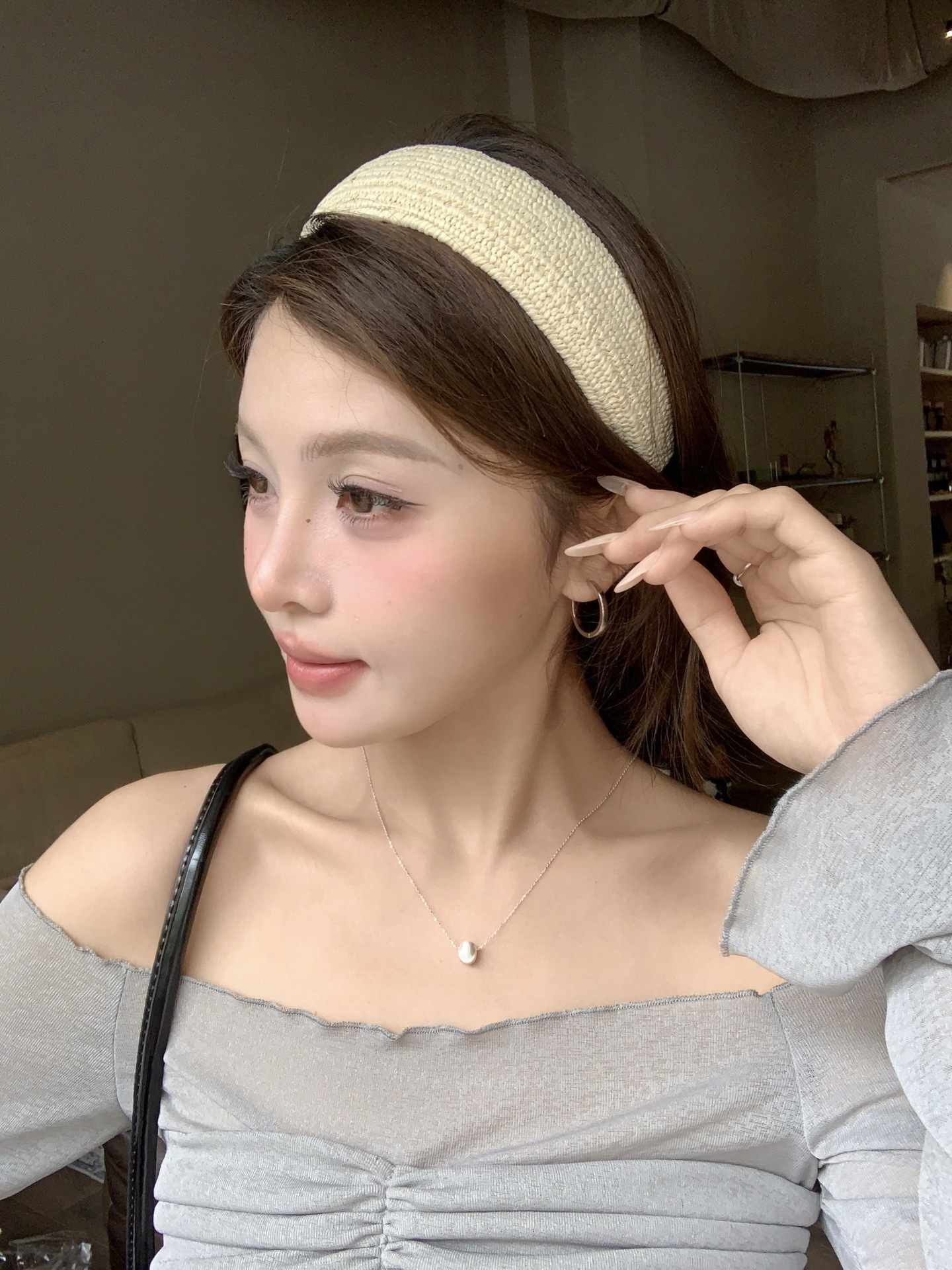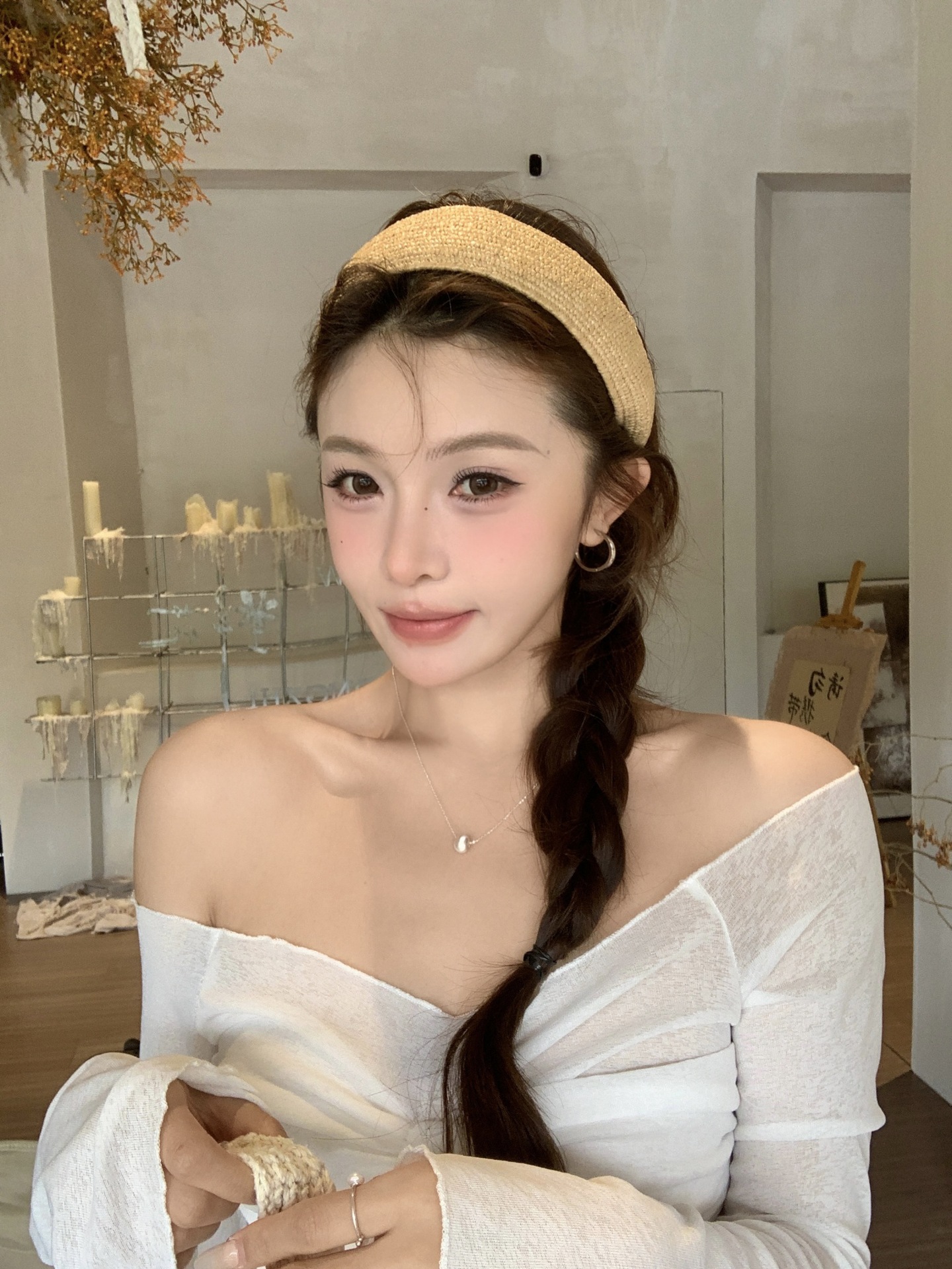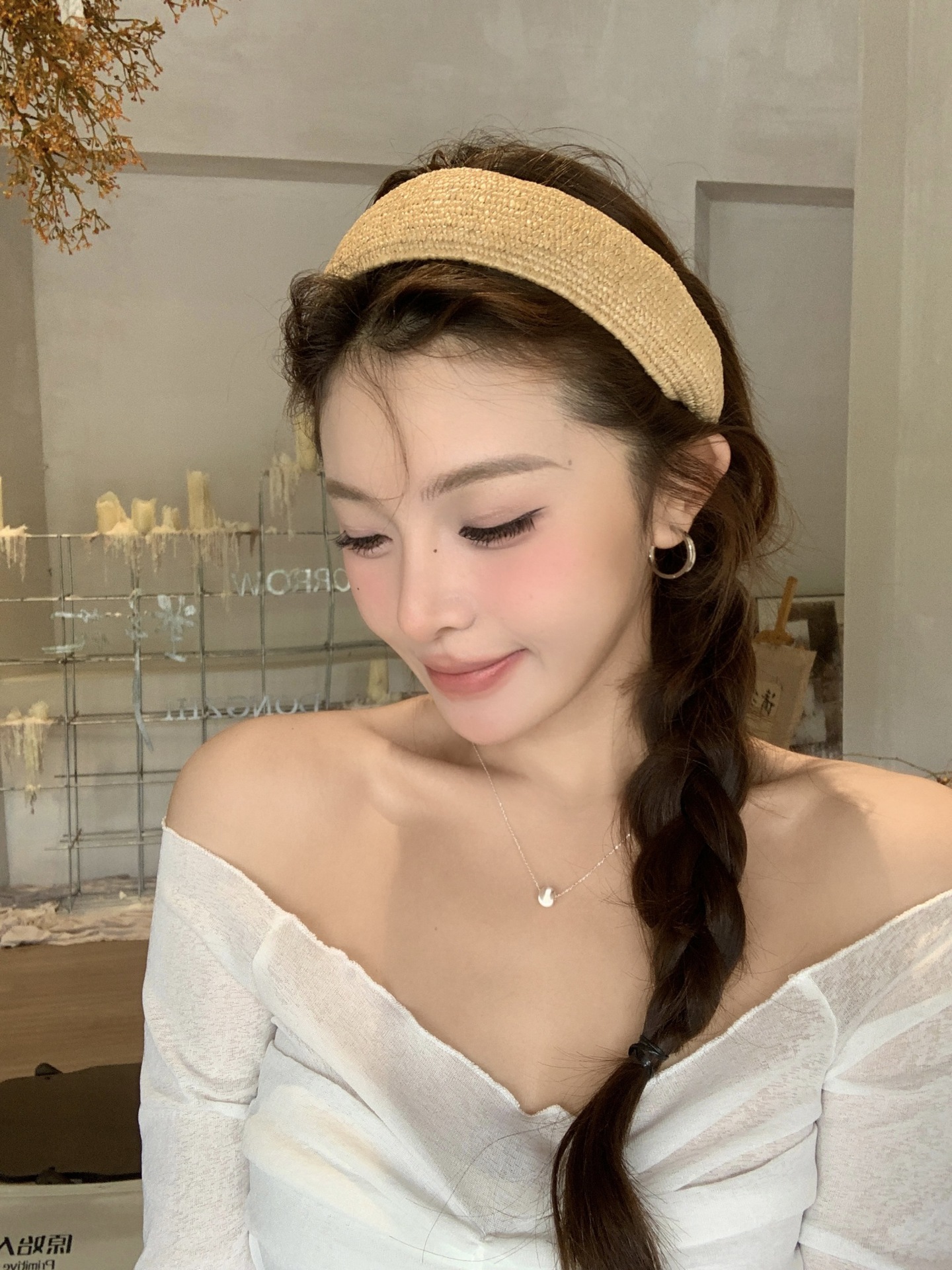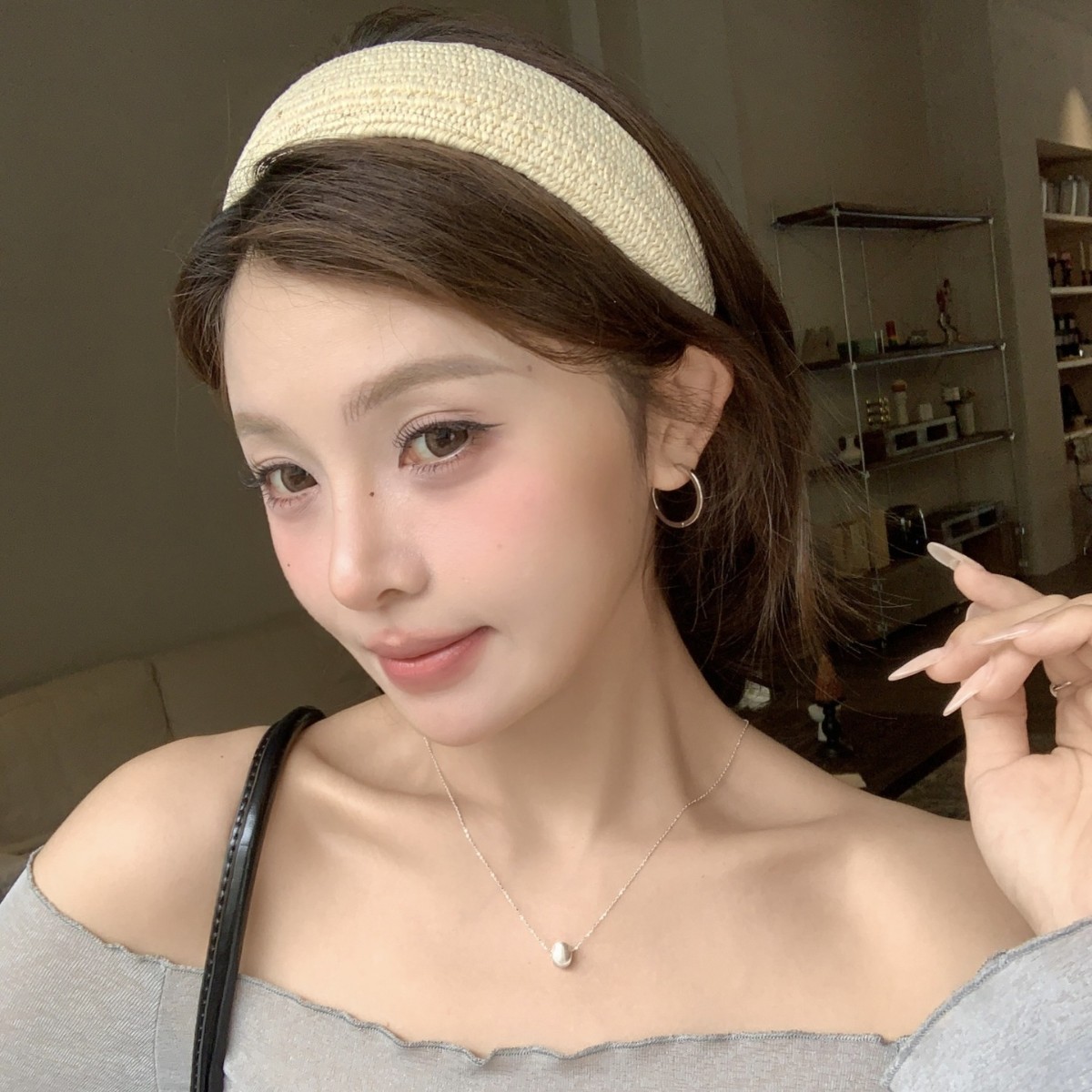 夏季百搭拉菲草编织发箍宽边时尚度假风藤艺光板外出头箍网红发饰