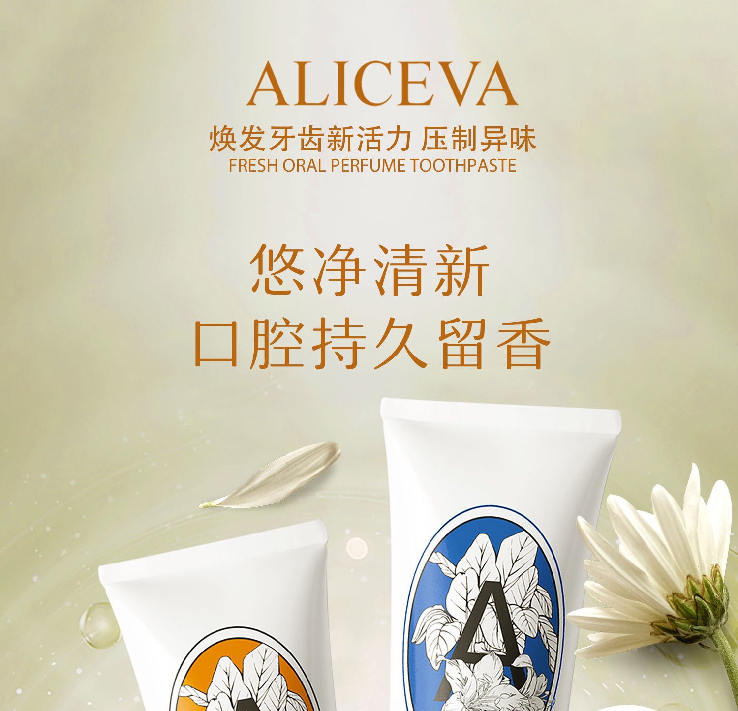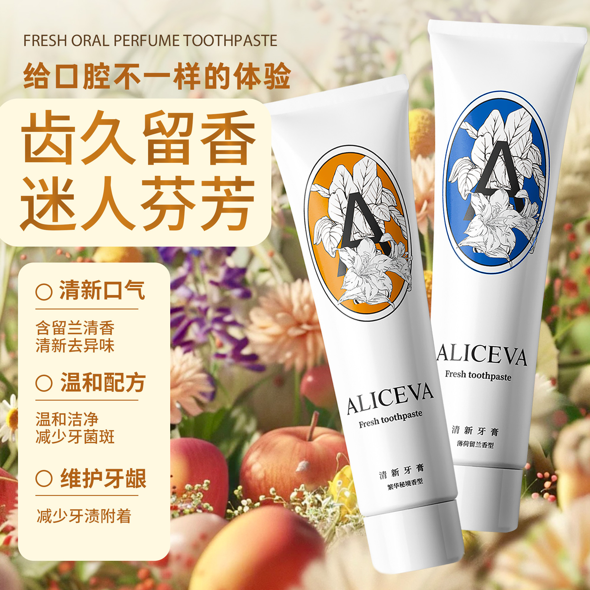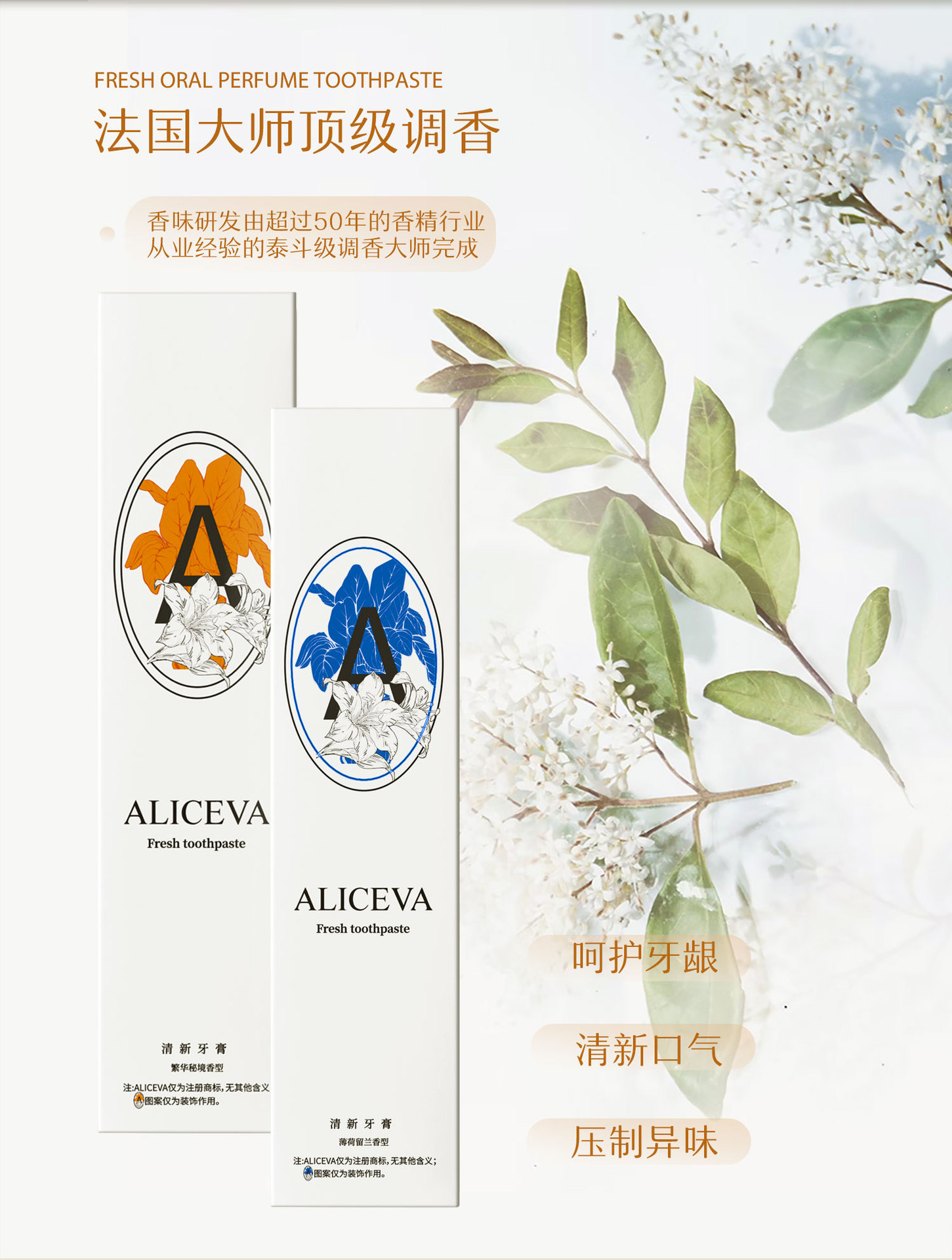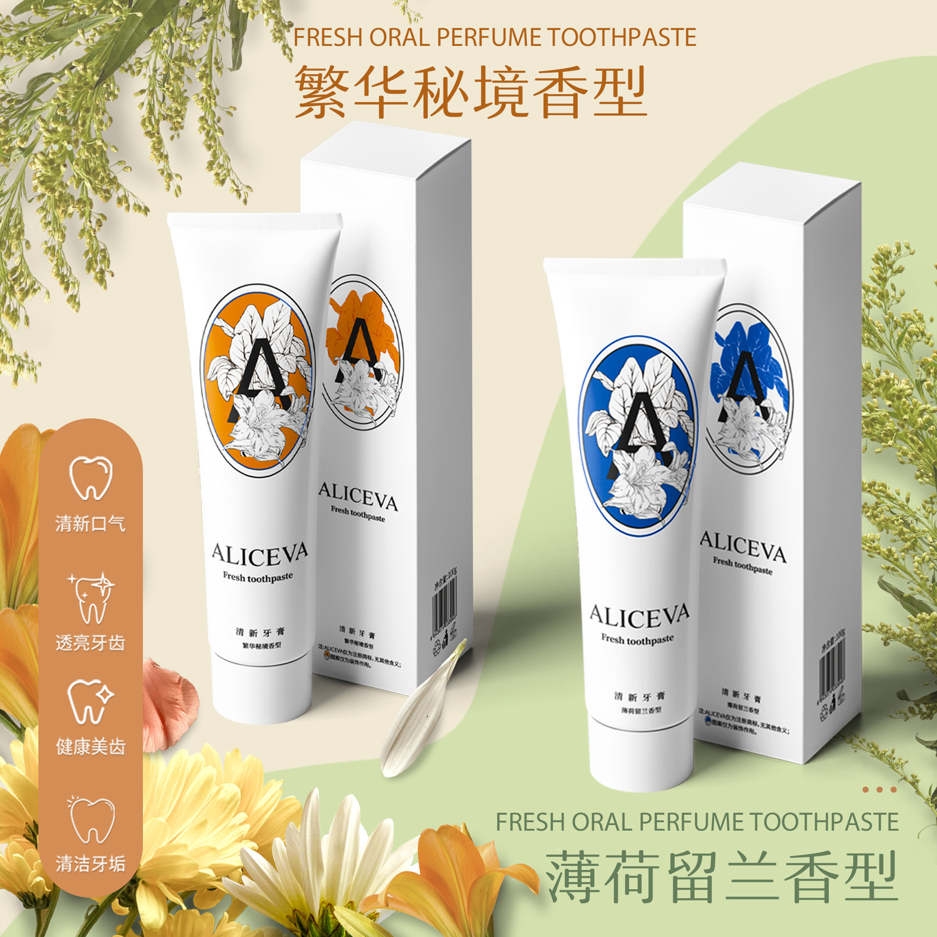ALICEVA香水牙膏祛口臭清新口气牙膏呵护牙龈亮白牙齿现货厂家代